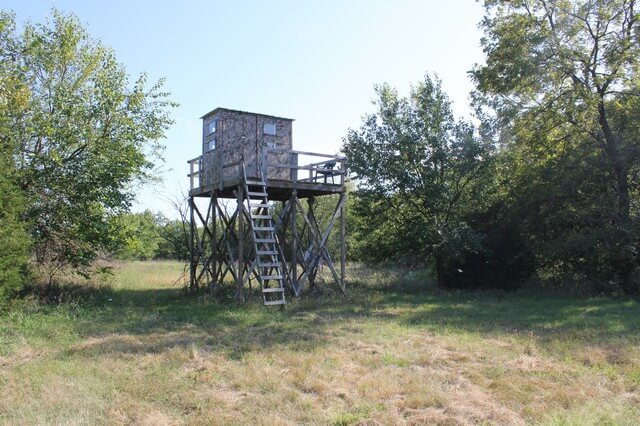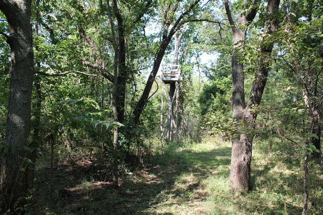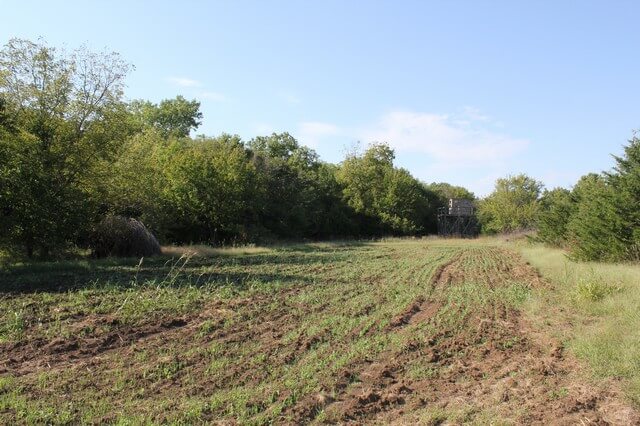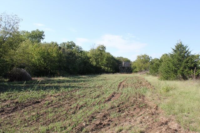 PROPERTY DESCRIPTION: 101.3+- acres of rolling terrain, heavy timber, tillable, and 2 ponds located in Greenwood County, Kansas. Plum Creek meanders through the middle of the property making it a natural trafficway for Kansas Whitetail Deer, turkeys, and many other species of wildlife. Approximately 50% of the property is cover with mature timber that includes walnut, sycamore, locust, hedge, hackberry, and brush. The property is selling with 2 deer blinds and 4 tree stands. There are several food plots and the property will include equipment to maintain them! That equipment consists of a Farmall H tractor, Krause 10′ disc, JD 494 4 row planter, 2 bottom plow, and an Allison Chalmers 6′ rotary mower with twin blades. The perimeter of the property is completely fenced. The access is excellent with blacktop roads leading to the property from all four directions. There are paths mowed through the property allowing excellent visibility!
