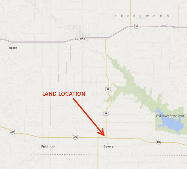 LAND LOCATION: Less than 1 hour east of Wichita, Ks on HWY 400. The property is located at the northwest corner of the interesection of HWY 400 and HWY 99 near Severy, Ks.