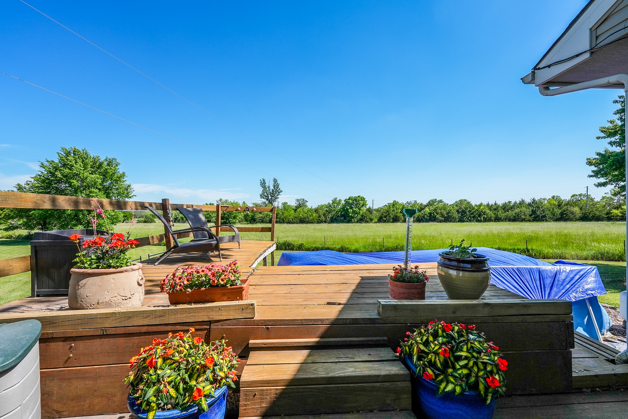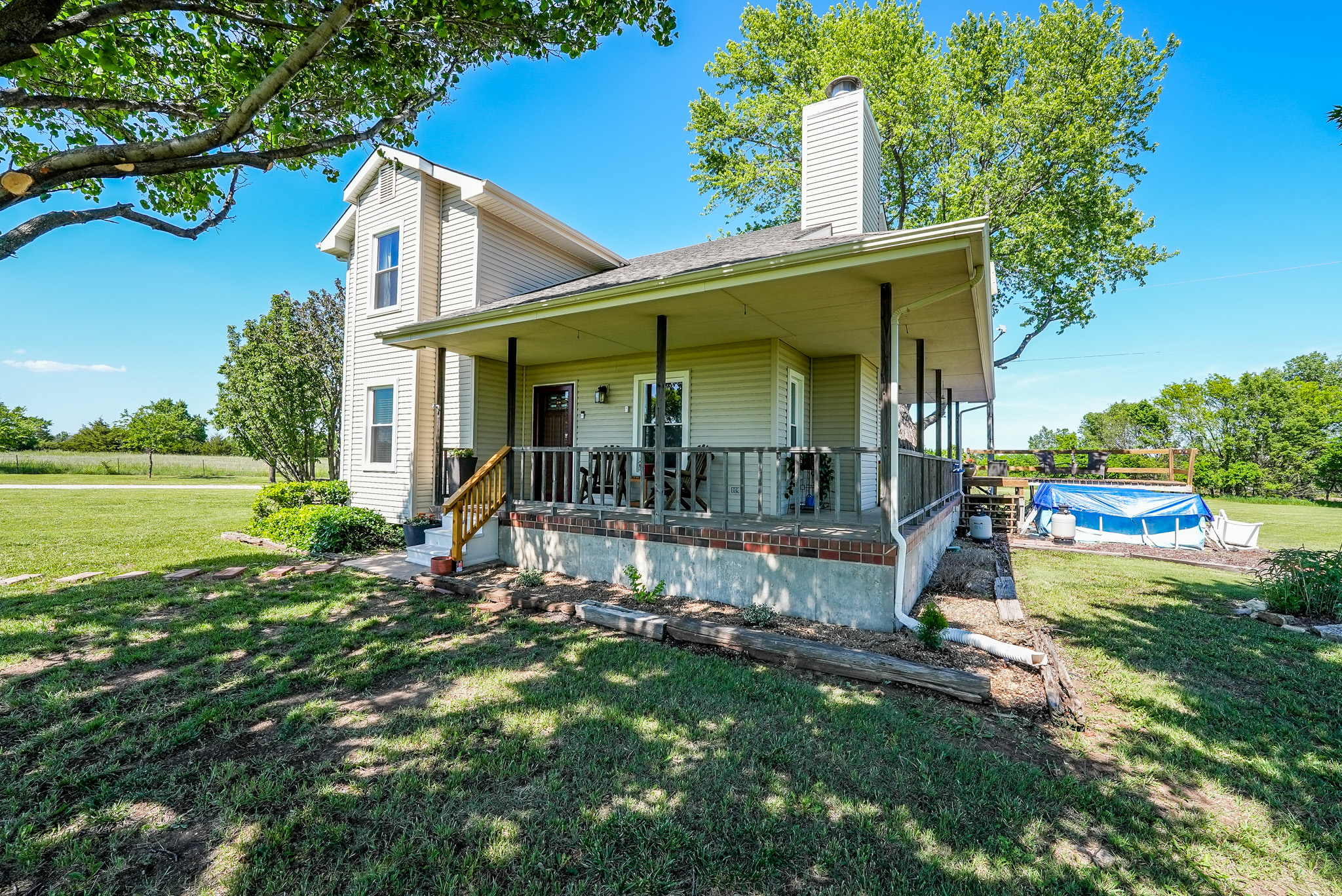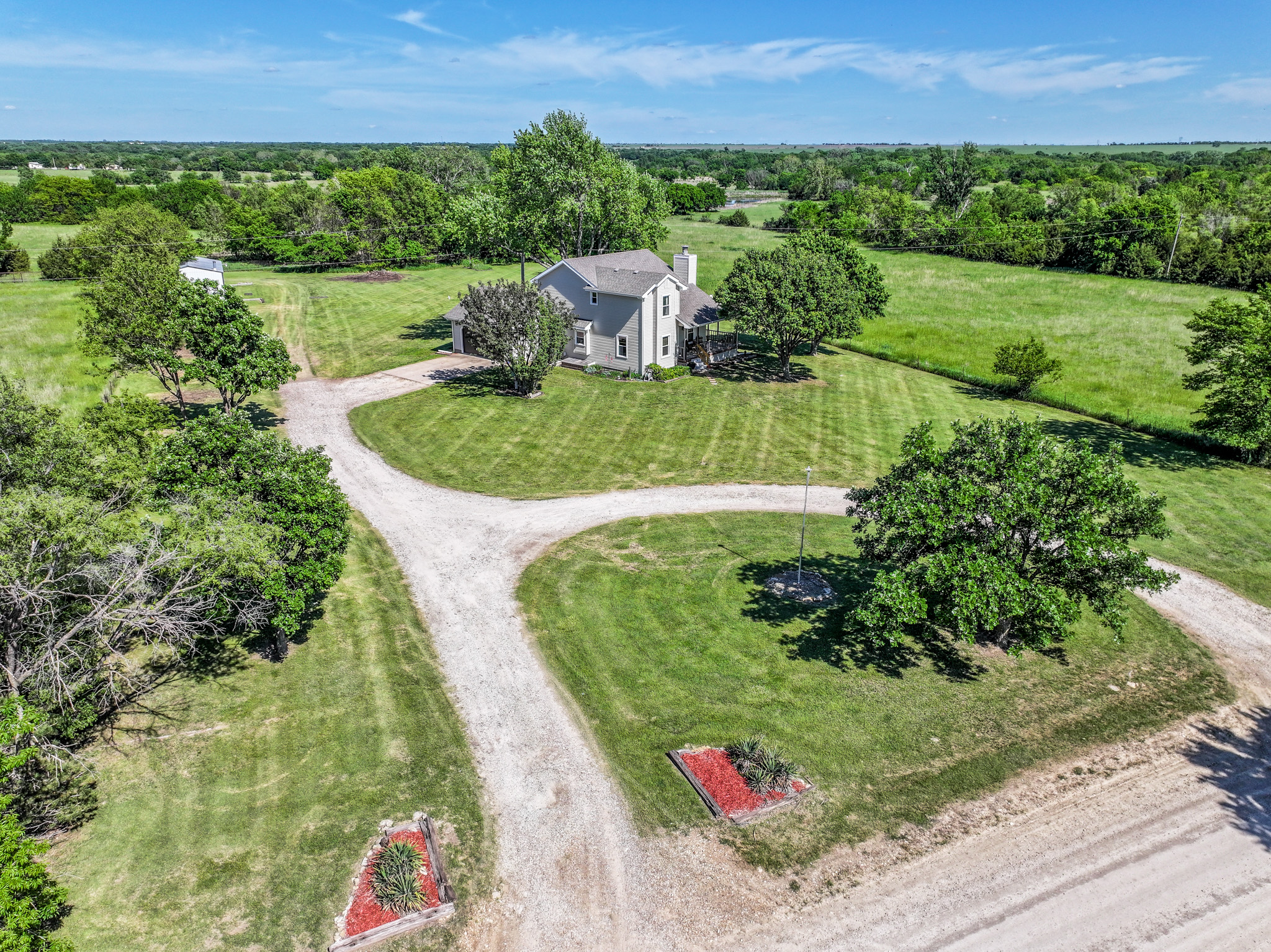 PROPERTY DESCRIPTION: Custom built home and building on 20 acres in a scenic area of Butler County, Kansas between Augusta and Leon just 1/8 mile from pavement. Bulit in 1987, this 2-story home has 3 bedrooms and 2 ½ bathrooms and is serviced by rural water. The kitchen and each of the bathrooms have granite countertops. The cabinets are custom oak throughout. The great room has a vaulted ceiling and wood burning fireplace. The basement is partially finished and has an egress window. Enjoy the spacious deck and a wraparound porch, with views in all directions. The land consists of native bluestem pasture with a riparian waterway leading into a small pond. A metal barn located just east of the house has two parking stalls and a shop/tack room. Wildlife is abundant, with Kansas whitetail deer, turkeys, and quail frequently observed on the property! Take a look at this opportunity to live in rural Butler County, Kansas!