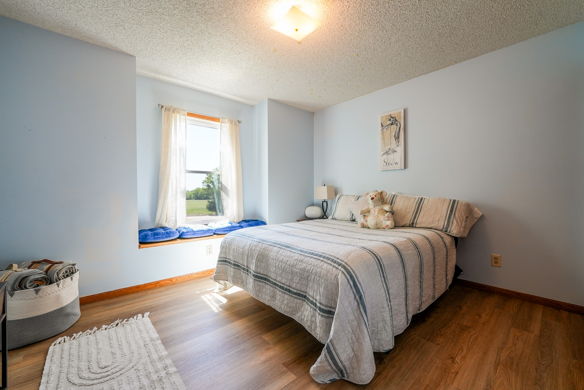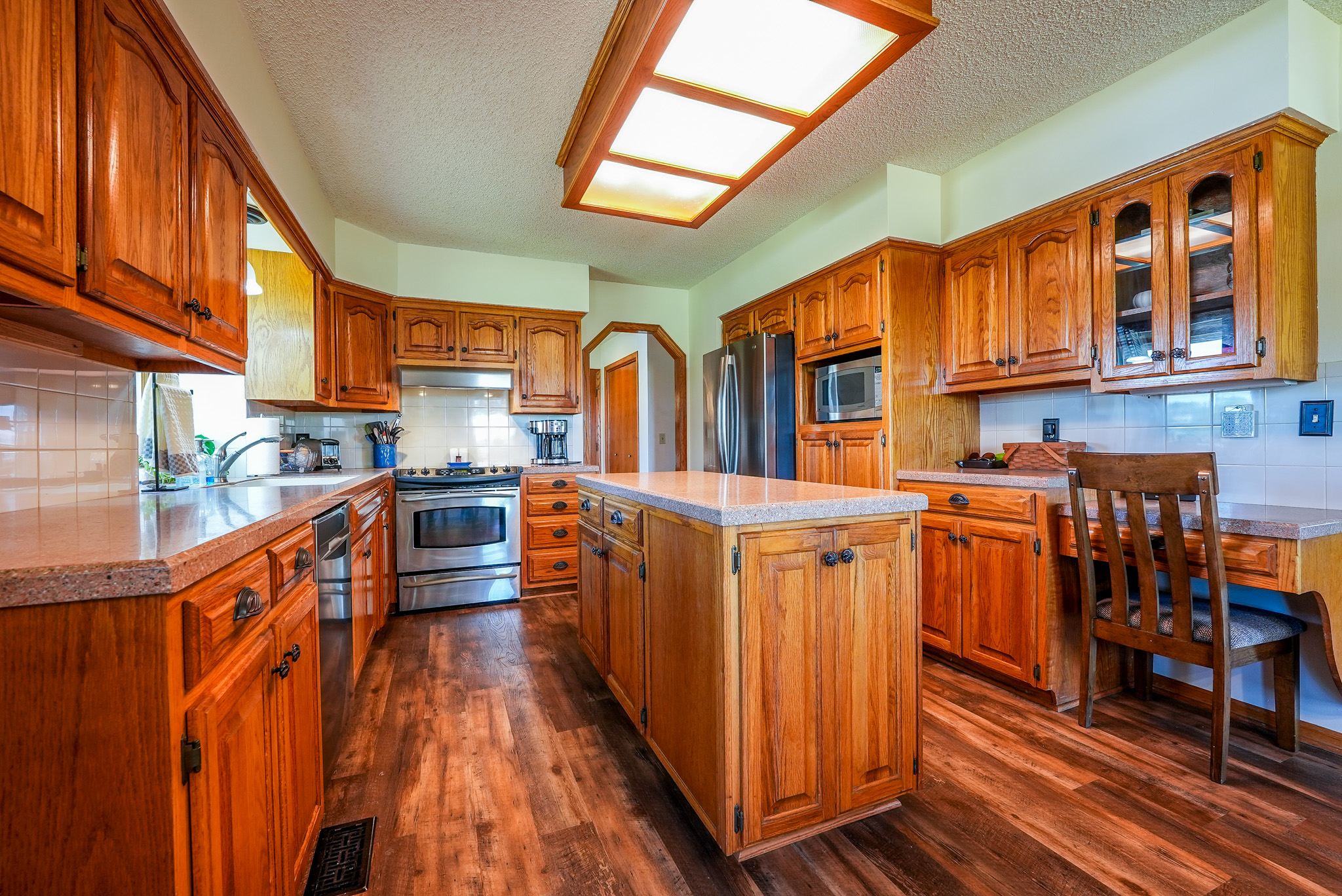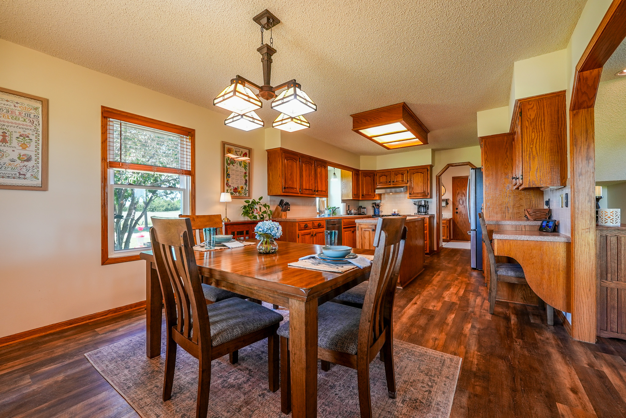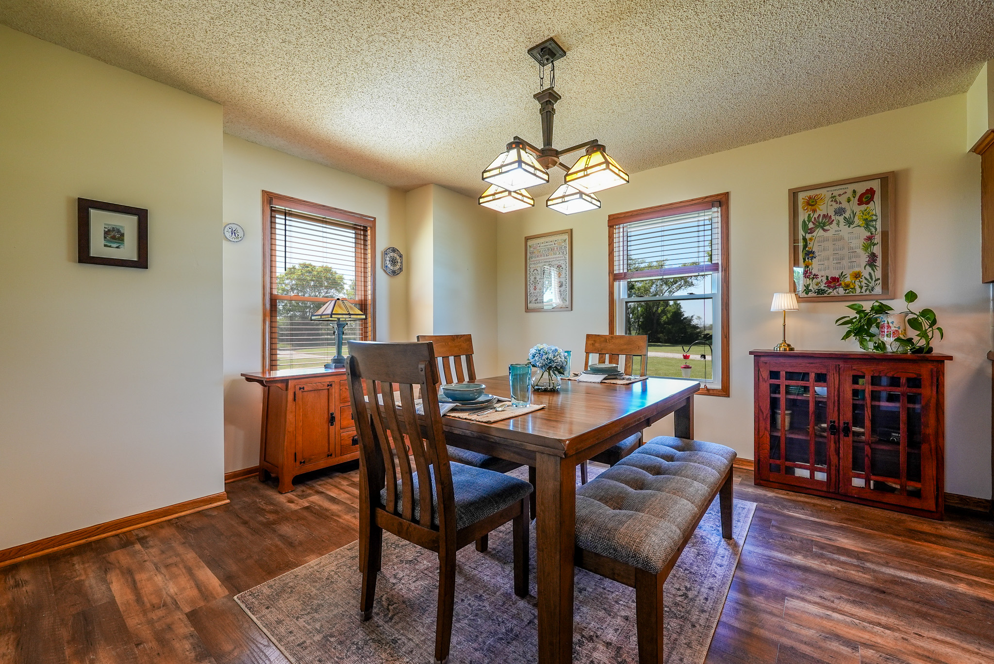 PROPERTY DESCRIPTION: Custom built home and building on 20 acres in a scenic area of Butler County, Kansas between Augusta and Leon just 1/8 mile from pavement. Bulit in 1987, this 2-story home has 3 bedrooms and 2 ½ bathrooms and is serviced by rural water. The kitchen and each of the bathrooms have granite countertops. The cabinets are custom oak throughout. The great room has a vaulted ceiling and wood burning fireplace. The basement is partially finished and has an egress window. Enjoy the spacious deck and a wraparound porch, with views in all directions. The land consists of native bluestem pasture with a riparian waterway leading into a small pond. A metal barn located just east of the house has two parking stalls and a shop/tack room. Wildlife is abundant, with Kansas whitetail deer, turkeys, and quail frequently observed on the property! Take a look at this opportunity to live in rural Butler County, Kansas!