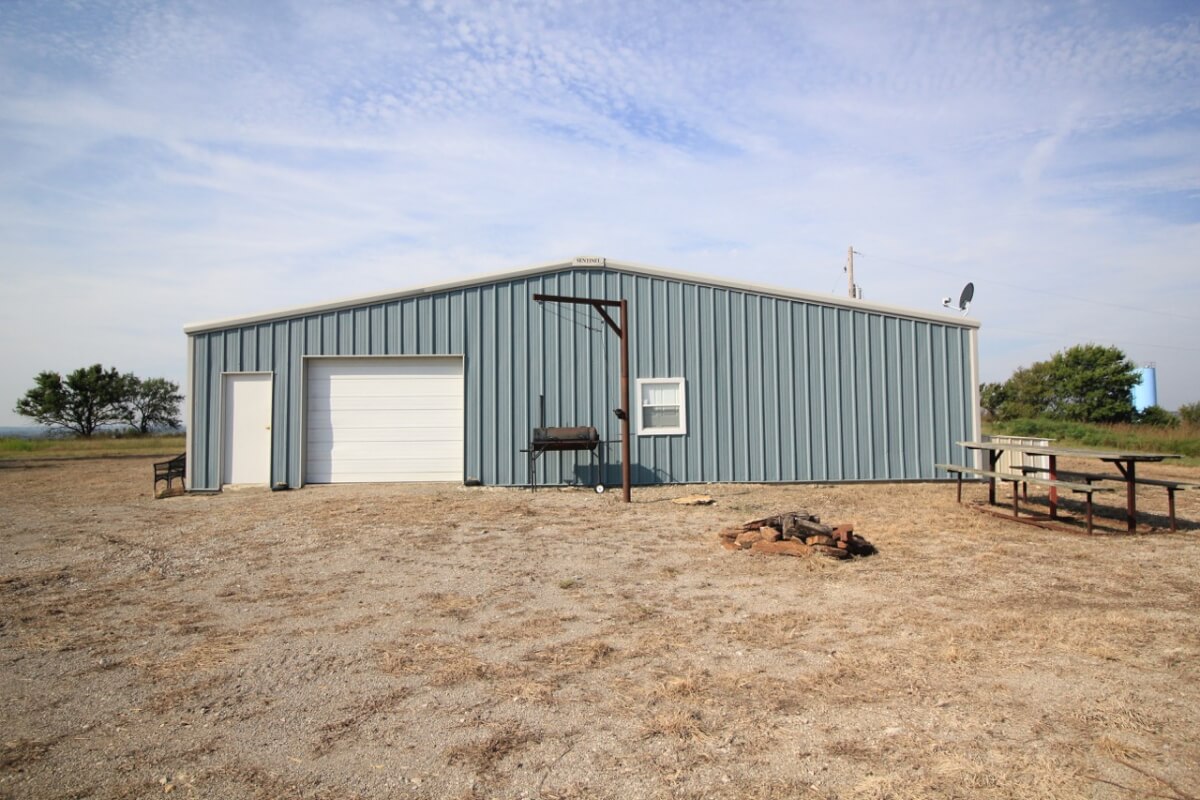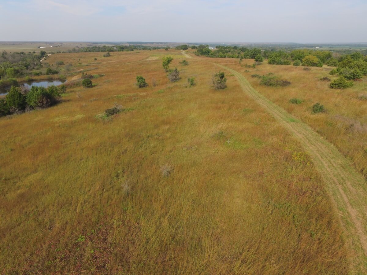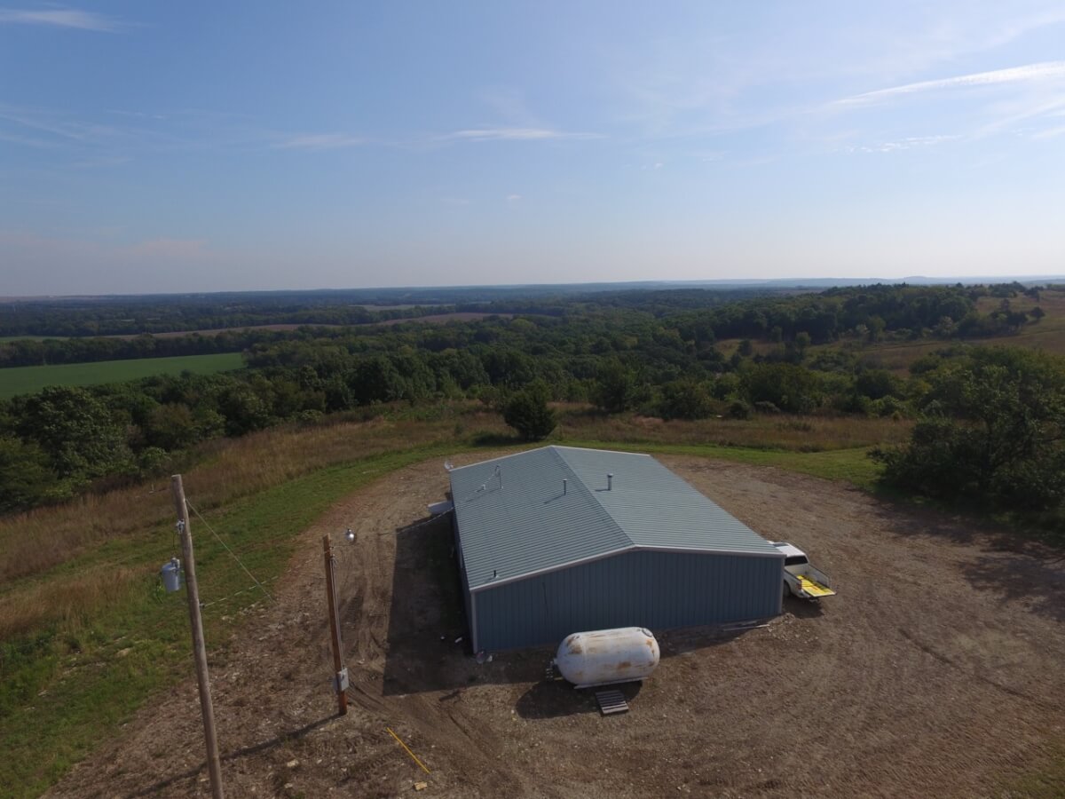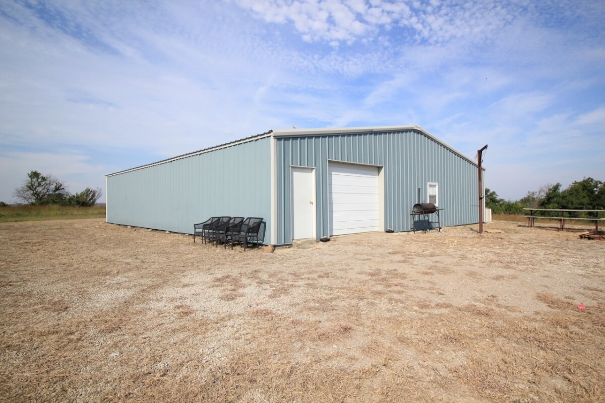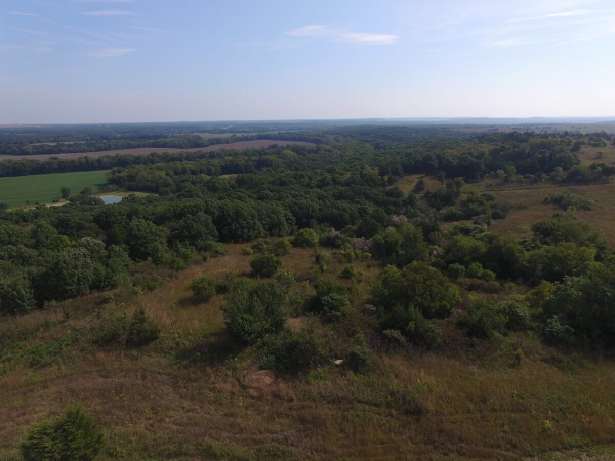 PROPERTY DESCRIPTION: 105+- acres located near Fall River in Greenwood County and Elk County, Kansas. It all starts with the perfect hunting lodge! This 2 bedroom 1 bath red steel frame 50′ x 60′ metal building is equipped with rural water, a 3000 gallon propane tank, wood heat, central heat and is fully insulated. The finished living area also includes a nice open kitchen/living room area with eating bar, and a formal eating area. Perfectly set up for a weekend getaway or lodge. The metal building also has plenty of room for parking and storage. You won’t find a more scenic setting! The view is breathtaking. If hunting and recreation are your desire, you will love this property. Extremely large elevation changes with thick heavy timber are present on the north half of the property. The south half features three ponds, scattered timber, and 8’+ tall native Bluestem Grasses perfect for wildlife bedding areas. While the property is very quiet and secluded, access is excellent with less than 1/2 mile of gravel road. Greenwood County and Elk County are well known for their trophy Kansas Whitetail Deer. Local features include Flint Oak, known as “America’s Premier Hunting Resort.” You can learn more about Flint Oak by visiting their website.