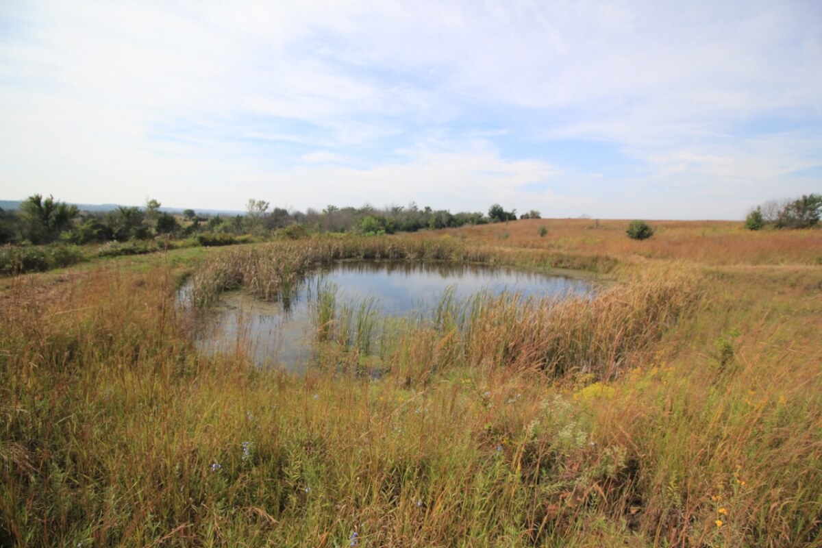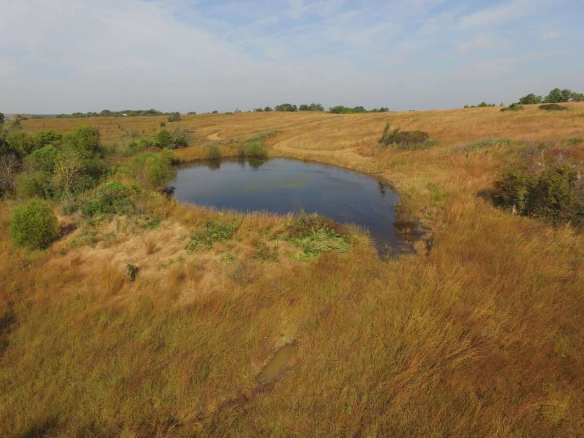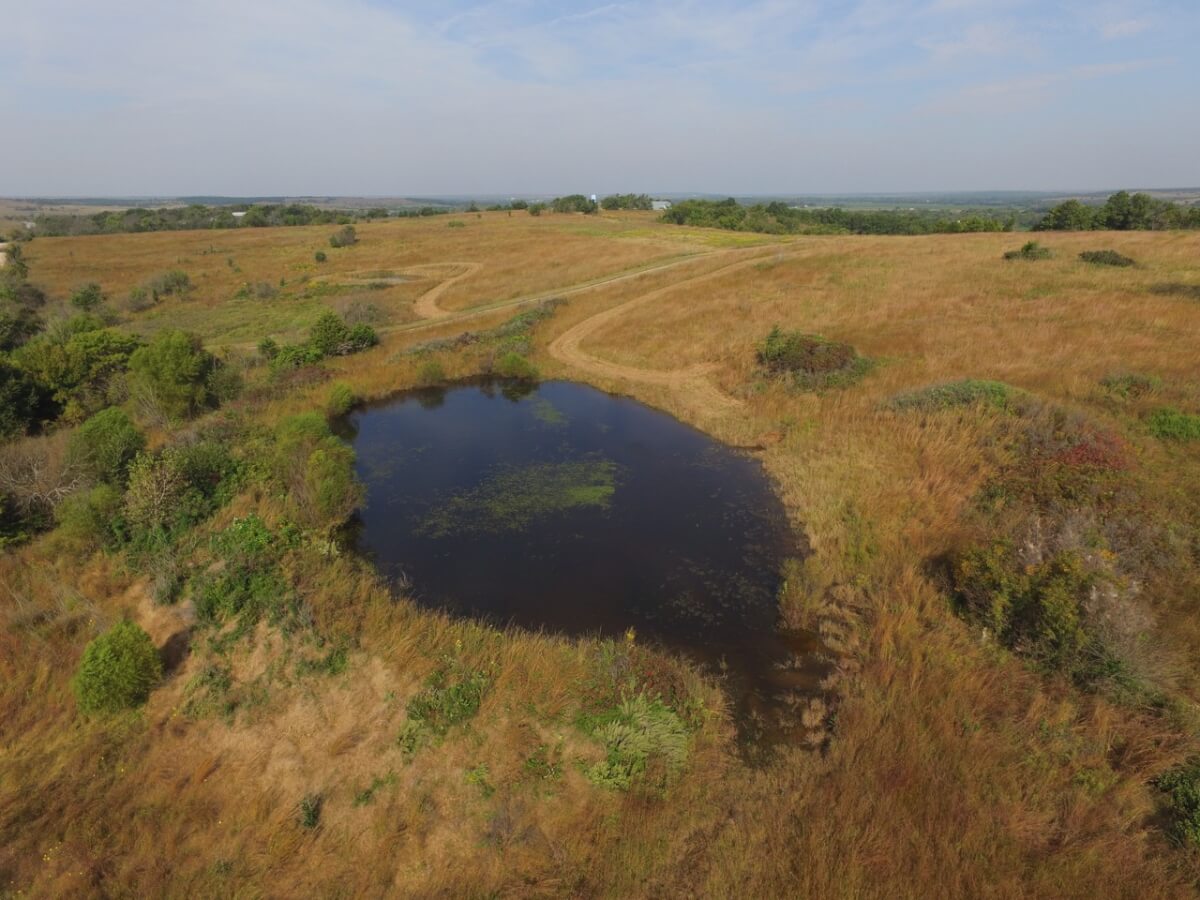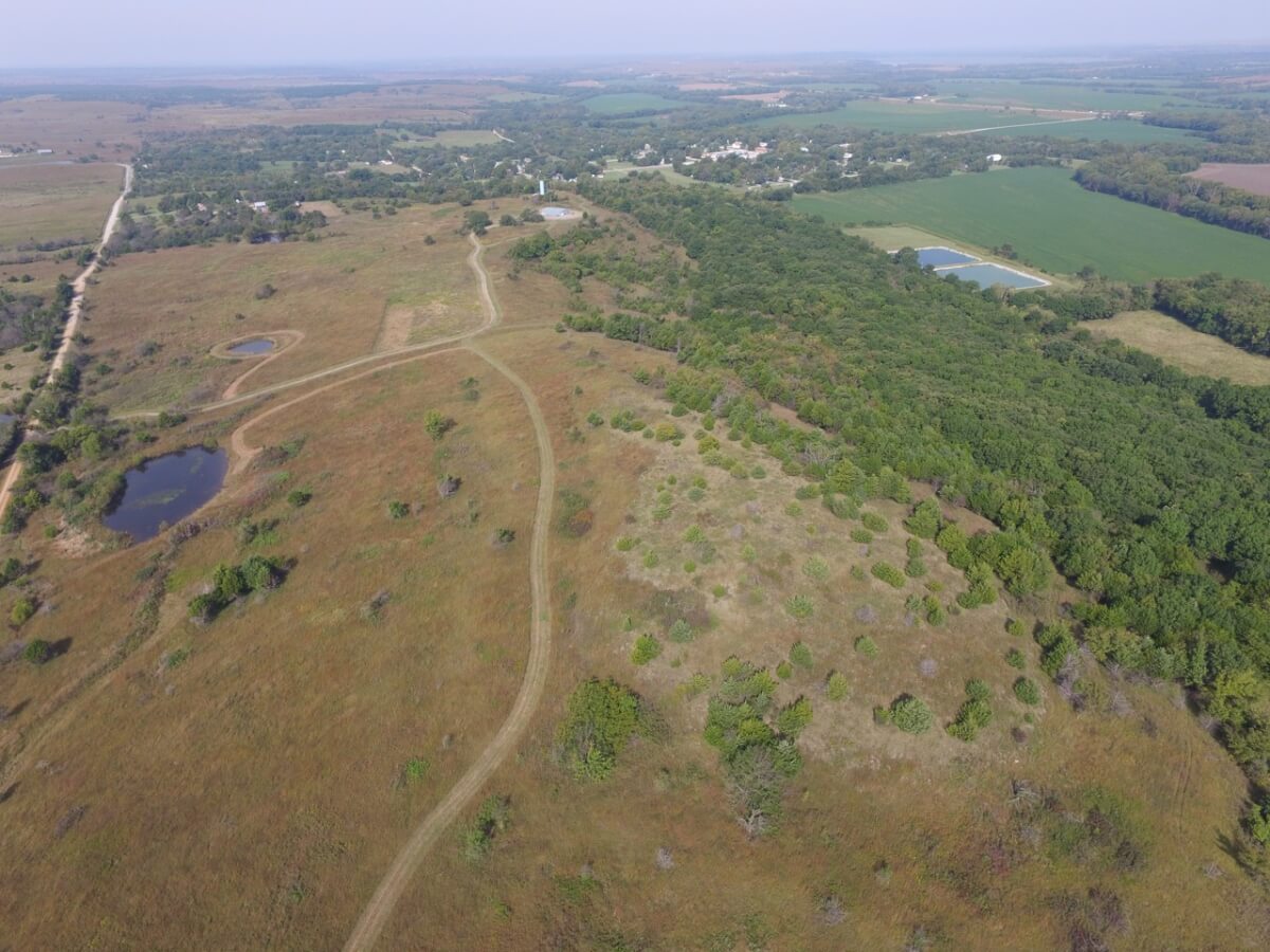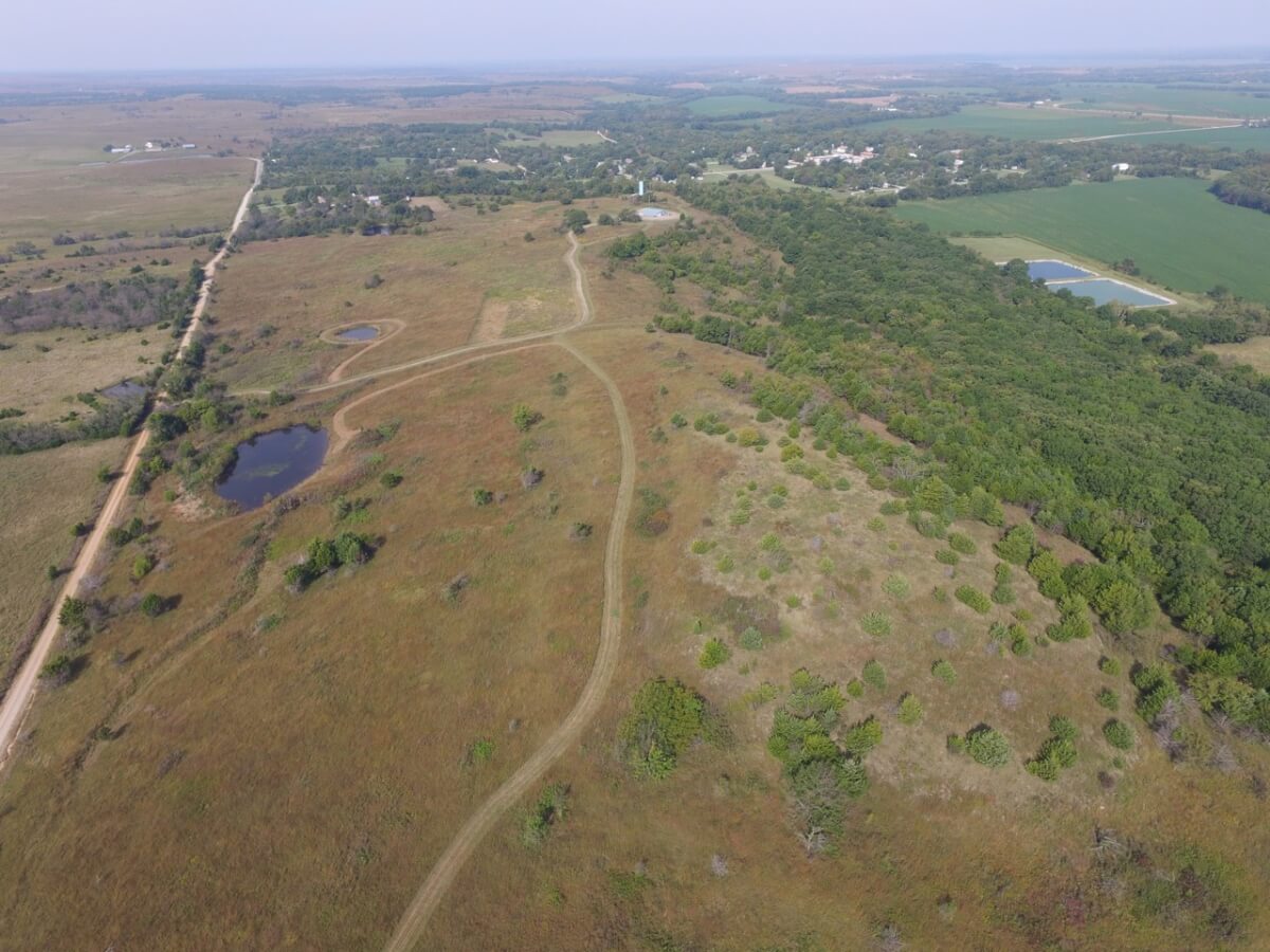 PROPERTY DESCRIPTION: 105+- acres located near Fall River in Greenwood County and Elk County, Kansas. It all starts with the perfect hunting lodge! This 2 bedroom 1 bath red steel frame 50′ x 60′ metal building is equipped with rural water, a 3000 gallon propane tank, wood heat, central heat and is fully insulated. The finished living area also includes a nice open kitchen/living room area with eating bar, and a formal eating area. Perfectly set up for a weekend getaway or lodge. The metal building also has plenty of room for parking and storage. You won’t find a more scenic setting! The view is breathtaking. If hunting and recreation are your desire, you will love this property. Extremely large elevation changes with thick heavy timber are present on the north half of the property. The south half features three ponds, scattered timber, and 8’+ tall native Bluestem Grasses perfect for wildlife bedding areas. While the property is very quiet and secluded, access is excellent with less than 1/2 mile of gravel road. Greenwood County and Elk County are well known for their trophy Kansas Whitetail Deer. Local features include Flint Oak, known as “America’s Premier Hunting Resort.” You can learn more about Flint Oak by visiting their website.