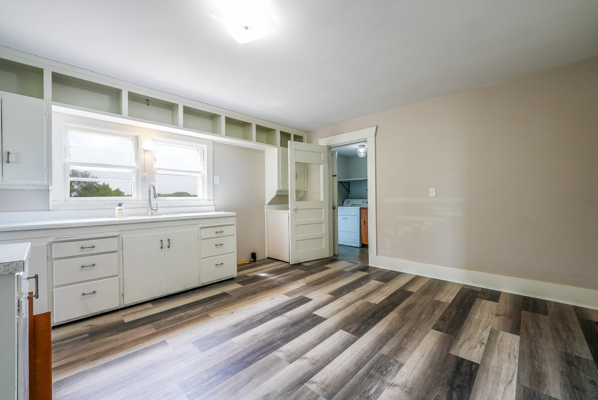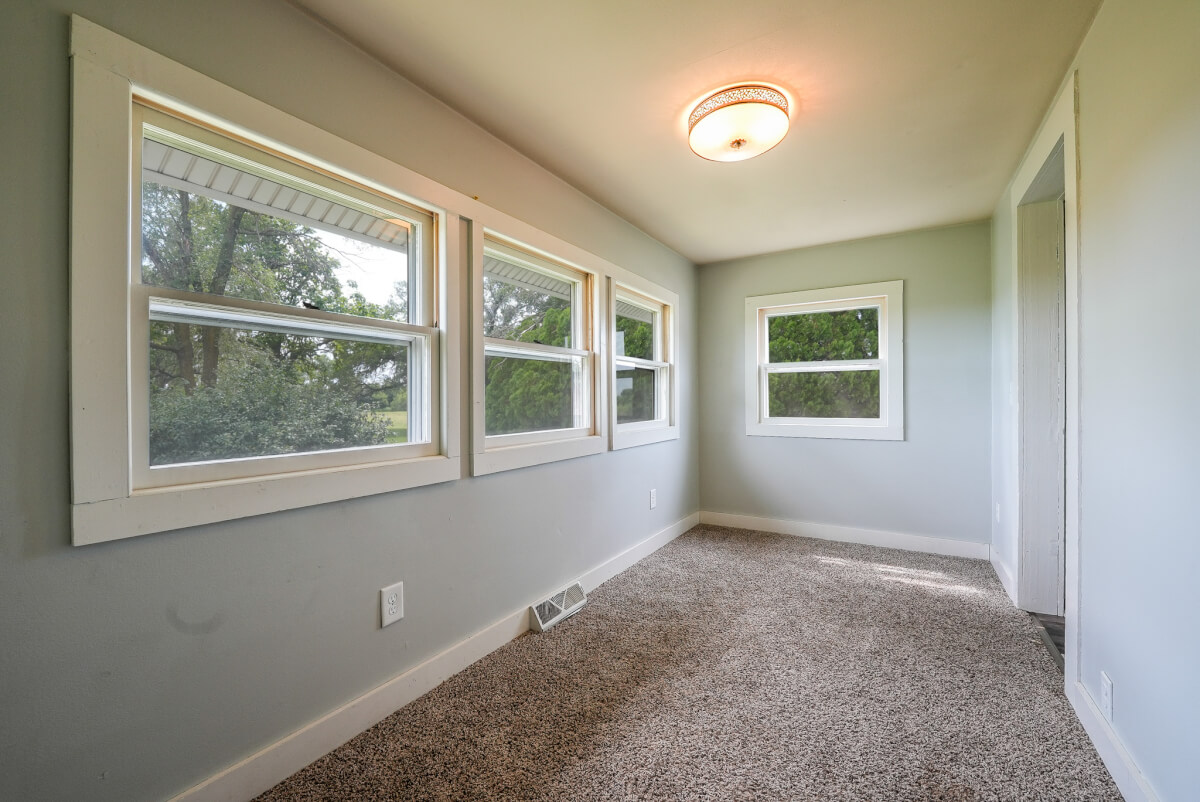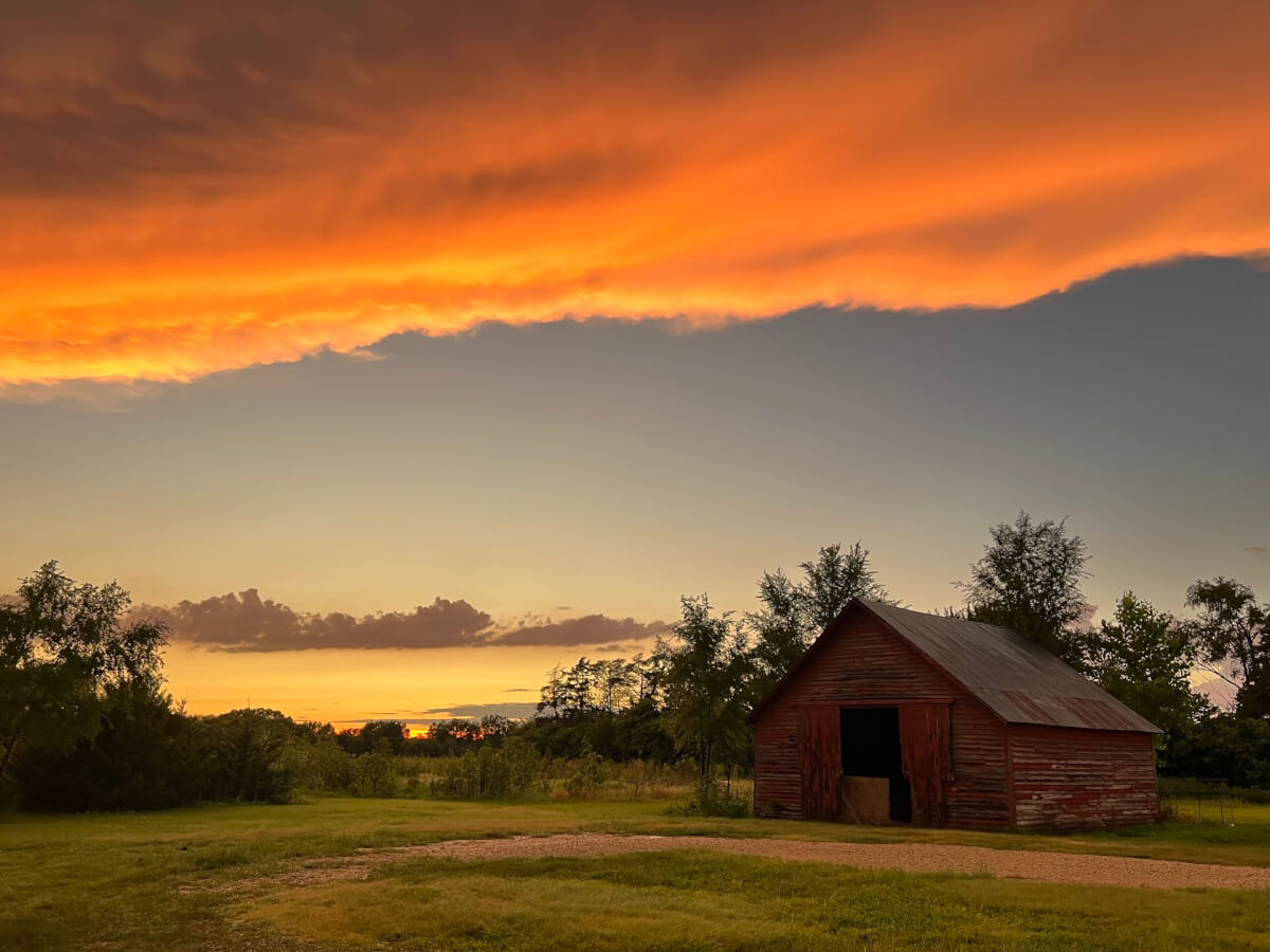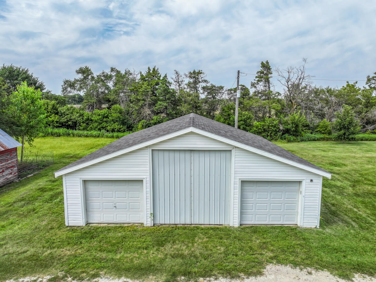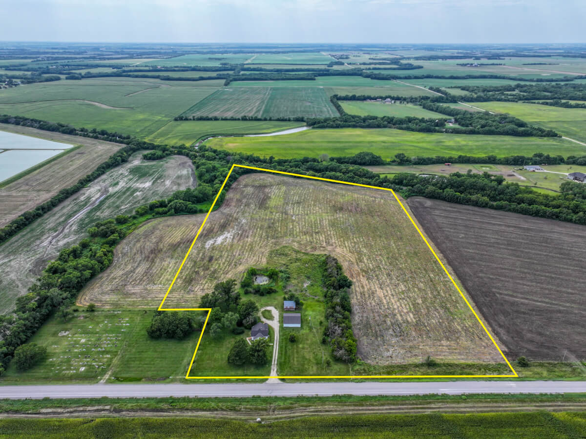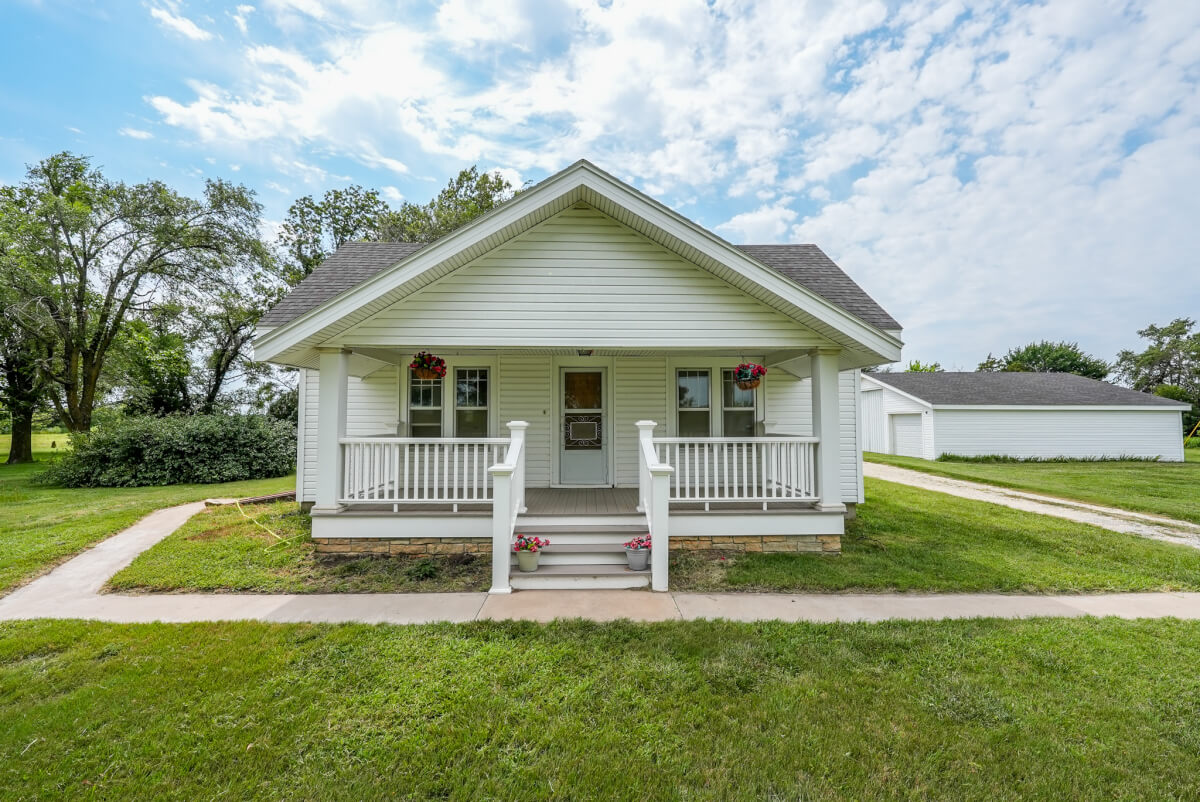 PROPERTY DESCRIPTION: Farm house and buildings on 20+- acres just north of Whitewater in Butler County, Kansas. The house could be used as a 2 or 3 bedroom. There are 2 full bathrooms, one on the main level, and the other is upstairs servicing the master bedroom. Total finished living area is 1,703 square feet. Many upgrades have been added over the years, including a modern foundation and electrical. The house sits on a full unfinished basement. Buildings include a 36′ x 36′ detached garage with a concrete floor and a 24′ x 24′ red barn. Approximately 15.6 acres of the land is tillable farm ground. Several nice trees are present on the property, including several large mature quality trees in the immediate yard, a good shelter belt of trees to the north of the house, and a highly productive pear tree! Utilities on the property include a water well, lagoon, and propane. Here is a great opportunity to live in rural Butler County, Kansas near Whitewater with blacktop access, great views, and country living!