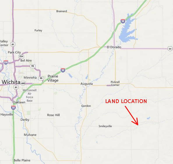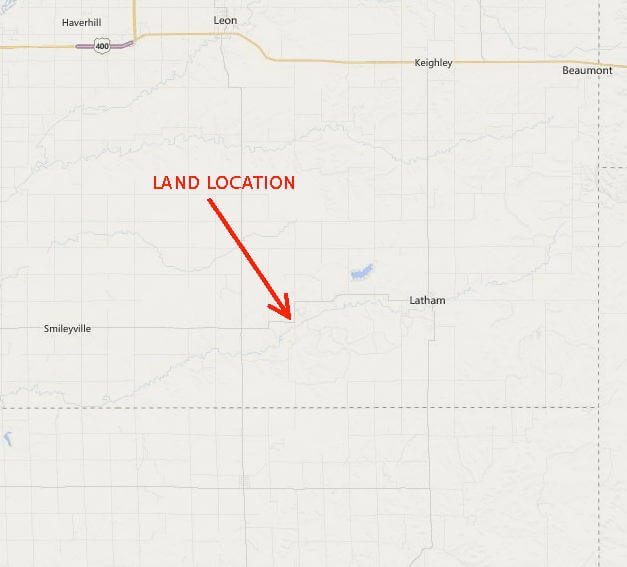 LAND LOCATION:  From Douglass, Ks approximately 14 miles east on SW 210th St blacktop OR From Latham, Ks approximately 5 miles west on SW 200th St. blacktop.