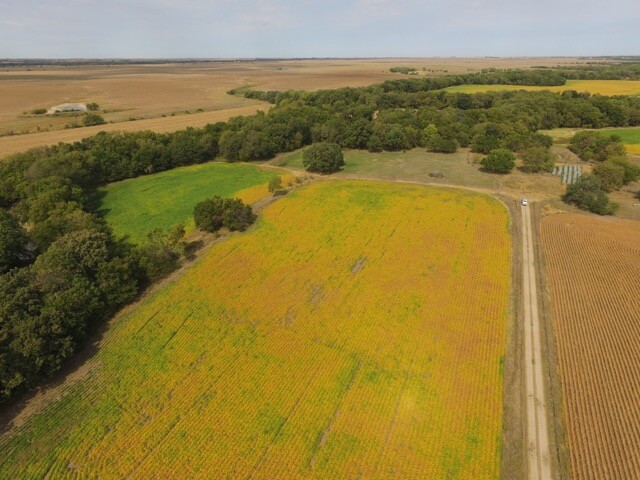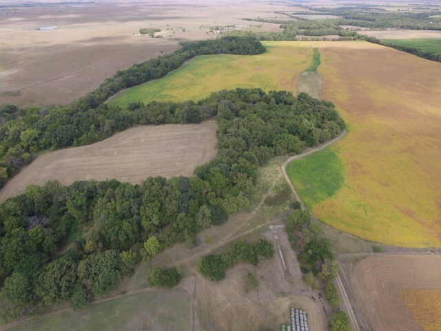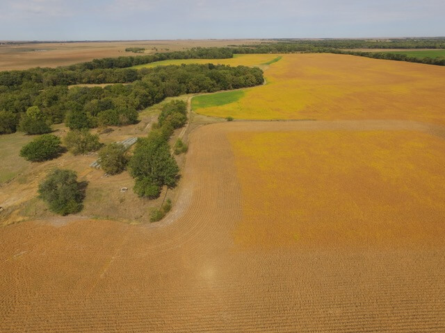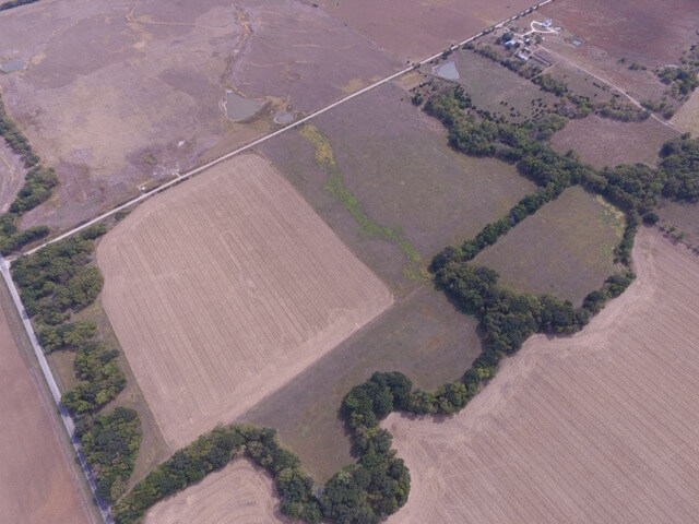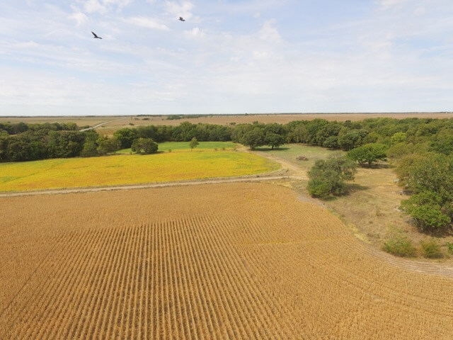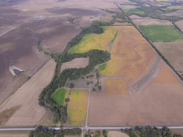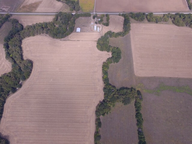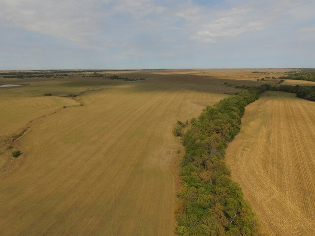 PROPERTY DESCRIPTION:  320+- acres of excellent Walnut River tillable bottom ground, native Flint Hills pasture, and improvements.  The tillable ground consists of approximately 176 acres used for a combination of row crop and brome grass.  The row crop has most recently been a rotation of soybeans and corn.  The brome grass has been mowed for hay, along with approximately 78 acres of native Flint Hills pasture.  The Walnut River runs for 1/2 mile through the center of the property.  The fishing in this portion of the Walnut River is excellent, as you will frequently catch Largemouth Bass, Crappie, and Channel Catfish.  In the spring it isn’t uncommon to catch Striped Bass, White Bass, or Walleye during their spawn.  Heavy timber lines the Walnut River and includes Oak, Sycamore, Walnut, Ash, Hackberry, and Elm trees, among others.  Abundant wildlife is present on the property and includes Kansas Whitetail Deer, Kansas Wild Turkey, and Quail.