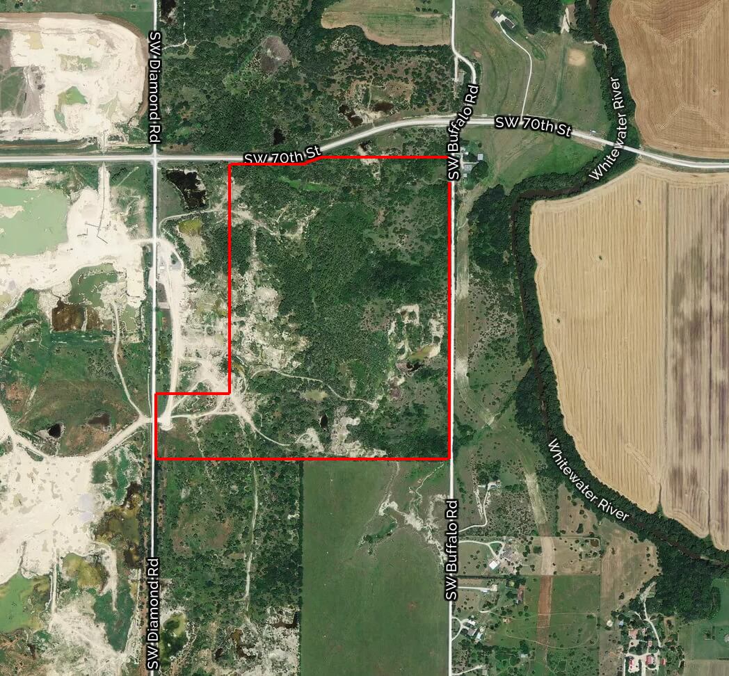 PROPERT DESCRIPTION: Excellent tract of land for hunting, recreation, or a future home building site. This old rock quarry land is rough and rugged with many large elevation changes and abundant character. There are several places that hold water, and with some improvements there could be some nice ponds/lakes on the property. Because this property was once a rock quarry, there is an abundance of gravel and rock that could be utilized personally or commercially. Location is excellent, just minutes from Wichita and Andover, and less than 1/2 mile from blacktop.