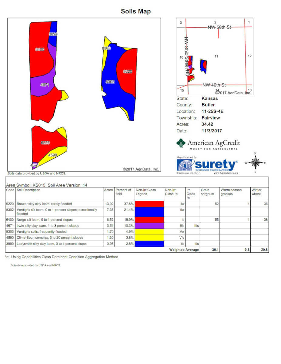LAND LOCATION: From HWY 254 between Towanda & El Dorado, North on HWY 196 to NW 30th, West 2 Miles to Ohio Street Rd, North 1 Mile to the property.