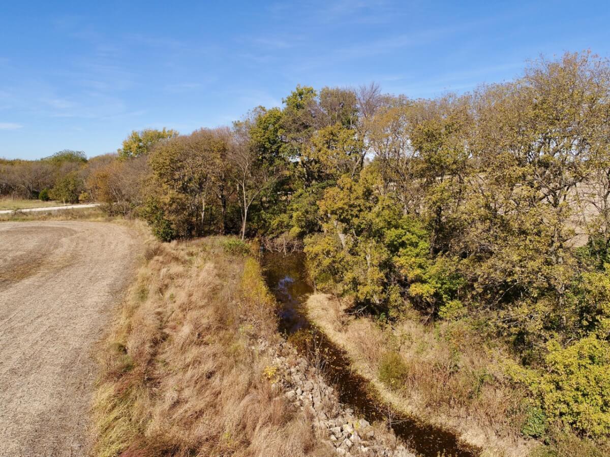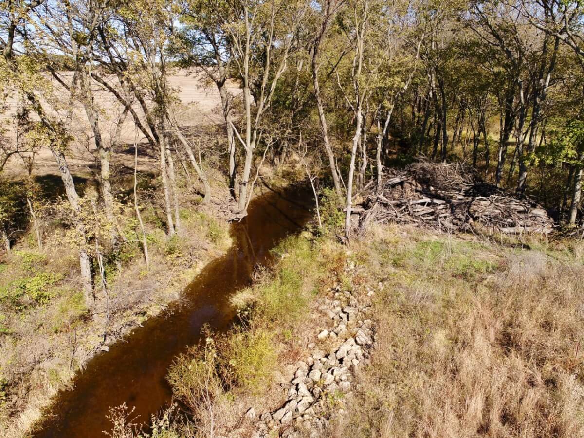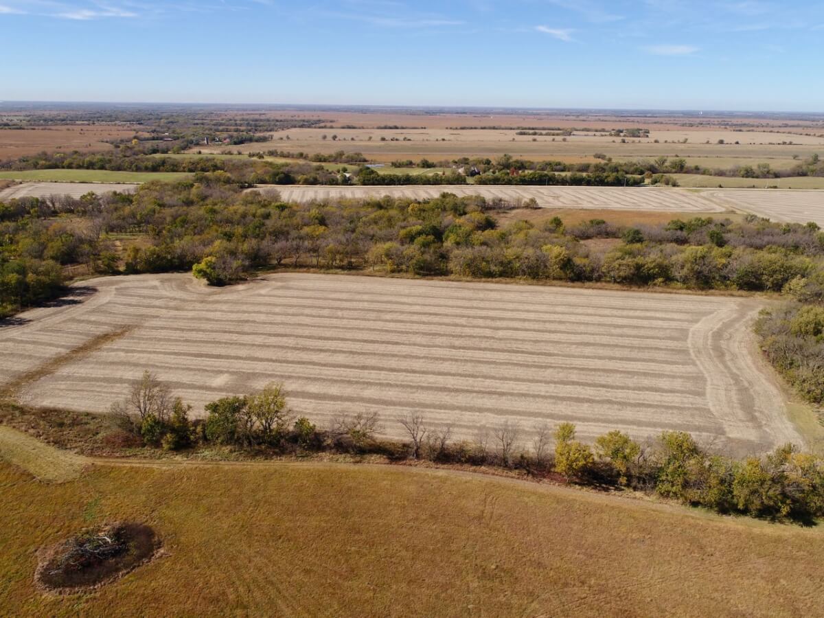 PROPERTY DESCRIPTION: 140+- acres with a balance of tillable, native hay meadow, 5 stocked ponds, timber, and over 1/2 mile of Rock Creek.  There is also another creek that joins Rock Creek near the center of the property.  On the north portion of the property, there is a water well rated at 20 gallons per minute.  100’s of mature native Walnut trees and 1000’s of young native Walnut trees are present along the creeks.  In addition to the many other native trees, there are 7 varieties and 1000+ Oak trees, 250 Pecan trees, 50 Chestnut trees, 250+ Apple trees, Native & American Plums and Native River Grapes.  Two timber stand improvements have been performed with the Kansas Forest Service in 2007 and 2017.  Other conservation projects have included waterways, terracing, and stream bank stabilization.  The 34+- acres of tillable ground was planted to Soybeans in 2017.  Abundant wildlife includes Kansas Whitetail Deer, Turkey, and Quail.  A spring in the creek has never gone dry during the current ownership.