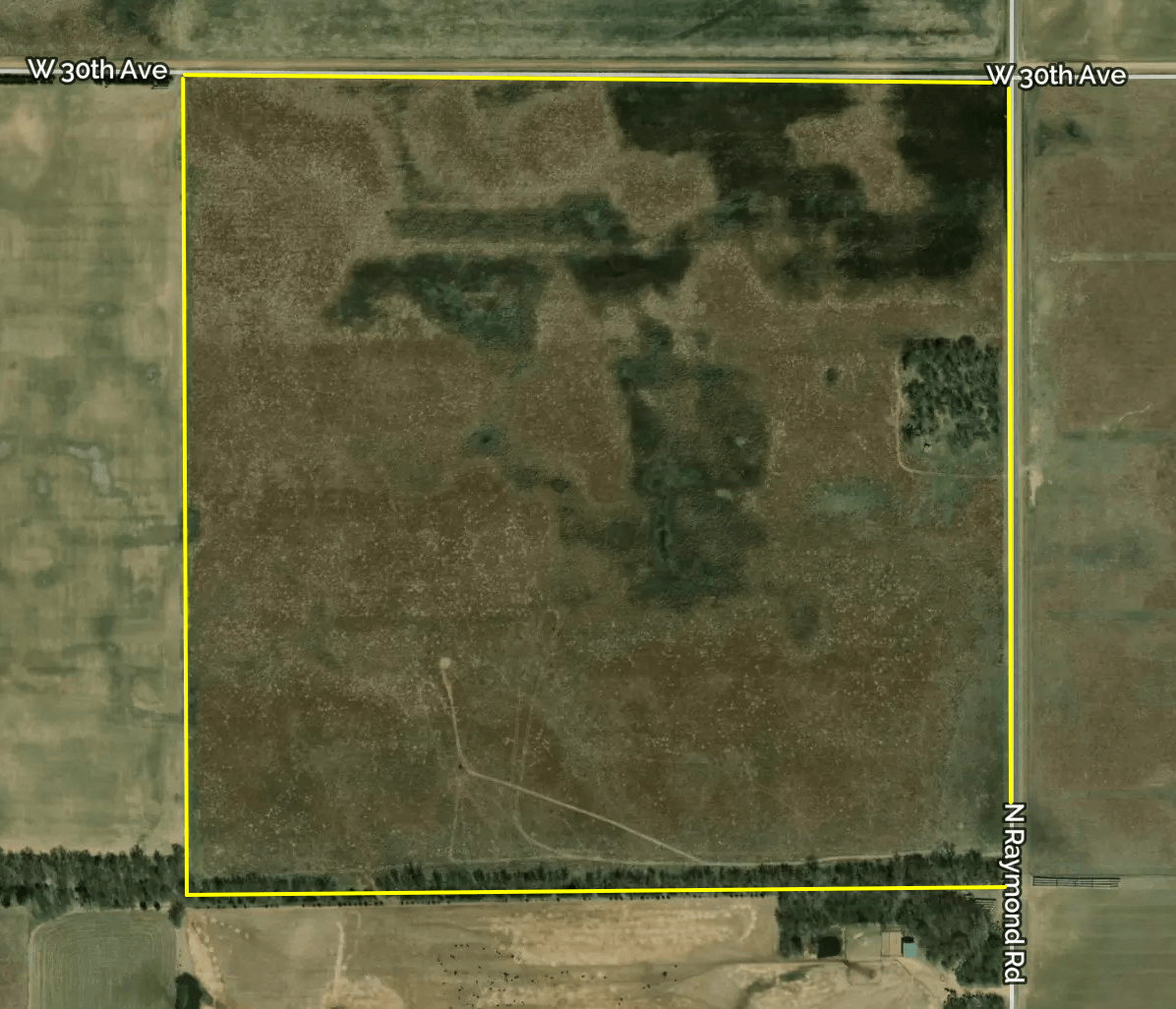 LAND LOCATION: From HWY 50 take Netherland Rd north 6 miles to 4th. Go west 3 miles to Raymond rd, then north 2 miles to property.
