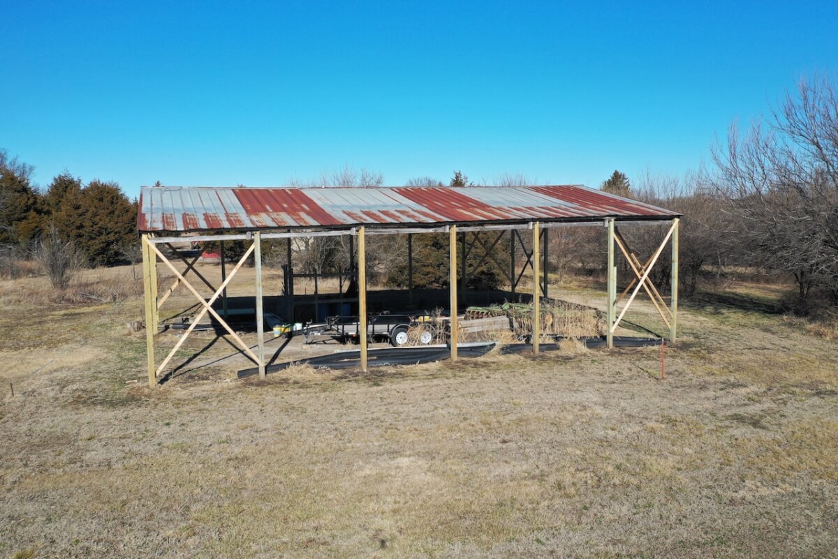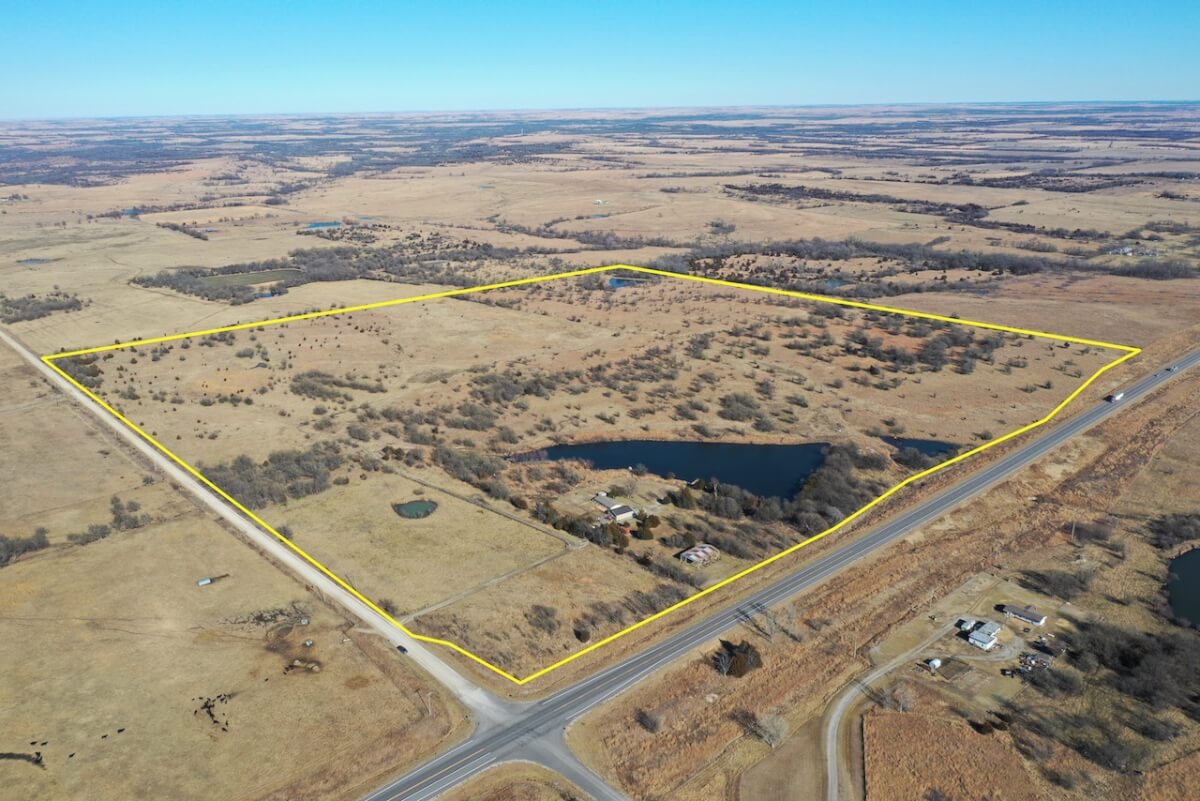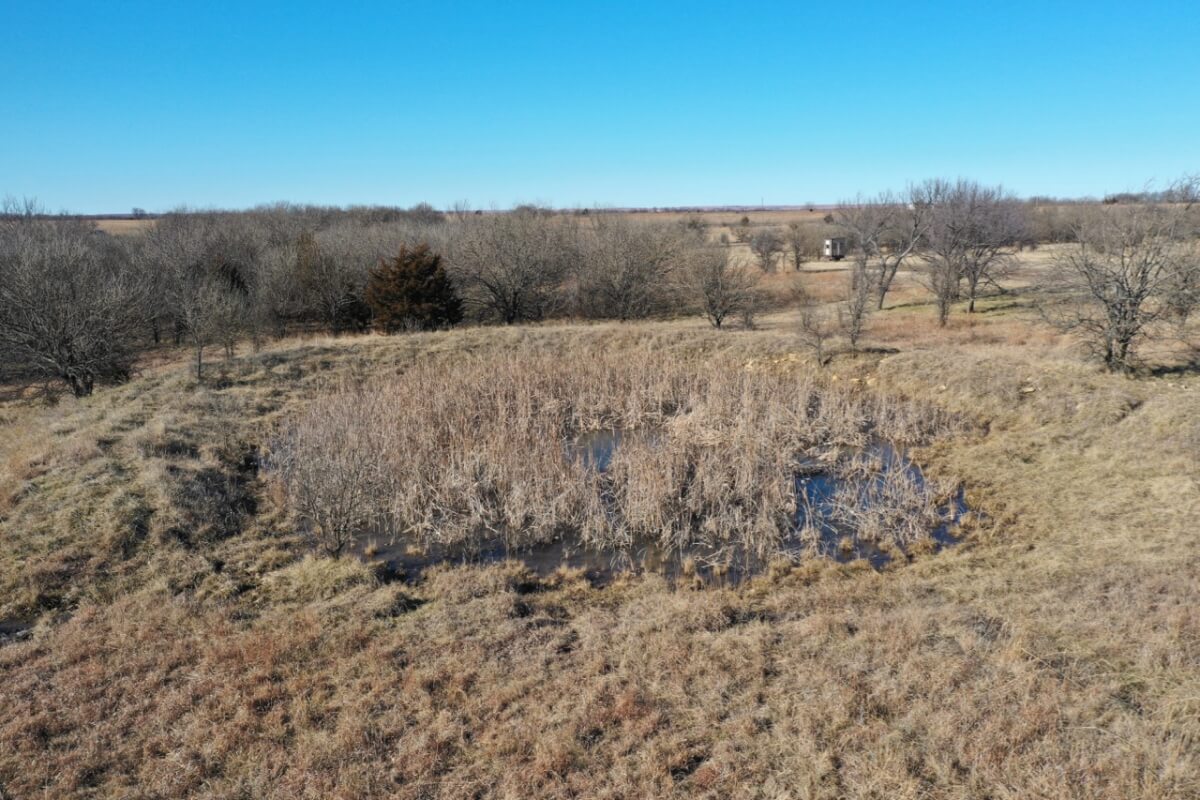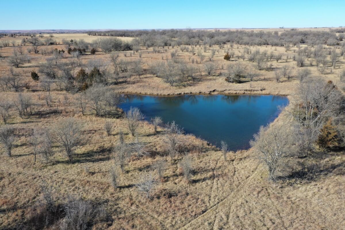 PROPERTY DESCRIPTION: 153+- acres of excellent diverse Greenwood County Kansas land with a house & garage. The land consists of a 4 Acre stocked Lake and 4 additional small ponds. According to the Seller, the lake measures 17′ deep during normal conditions. Enjoy time on the permanent dock! Scattered timber and pasture provide excellent food and cover for both livestock and wildlife. Fences range from average to new. The manufactured home on a permanent foundation has 1392 square feet of finished living area and was built in 2013. It has 3 bedrooms, 2 full bathrooms, and will include all of the appliances. Utilities include rural water, septic with laterals, an owned 500 gallon propane tank, and a Generac generator backup system. The detached garage has an oversized 2 car parking area with 2 overhead doors, plus an additional space for an office or workshop area. A 10′ x 10′ above ground concrete tornado shelter with 10″ thick walls sits to the northeast of the house. There is also a reconstructed pole barn for hay or equipment storage. What a great opportunity to have a lake front house with good livestock pasture and hunting for Kansas Whitetail Deer, Quail, Ducks, Geese, and Turkeys!