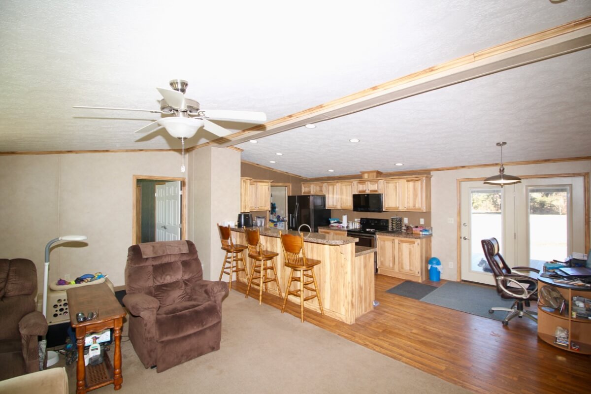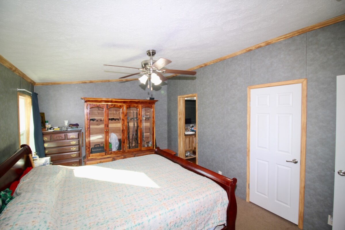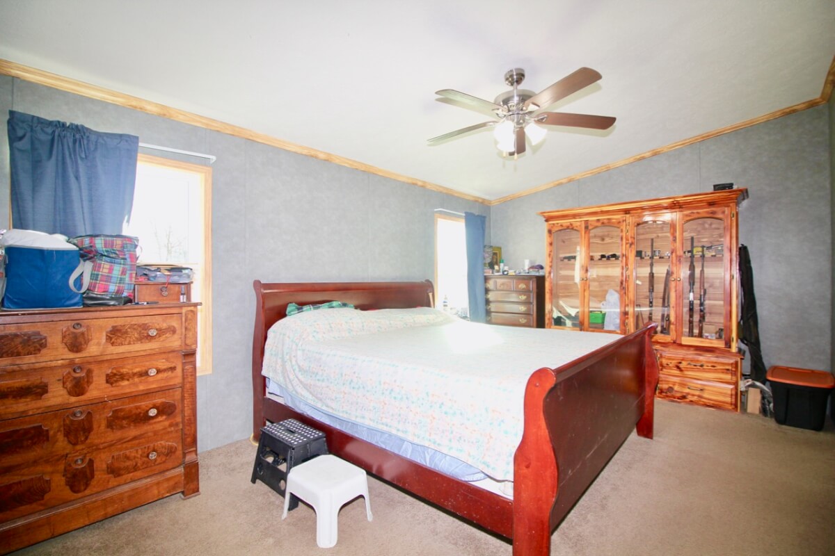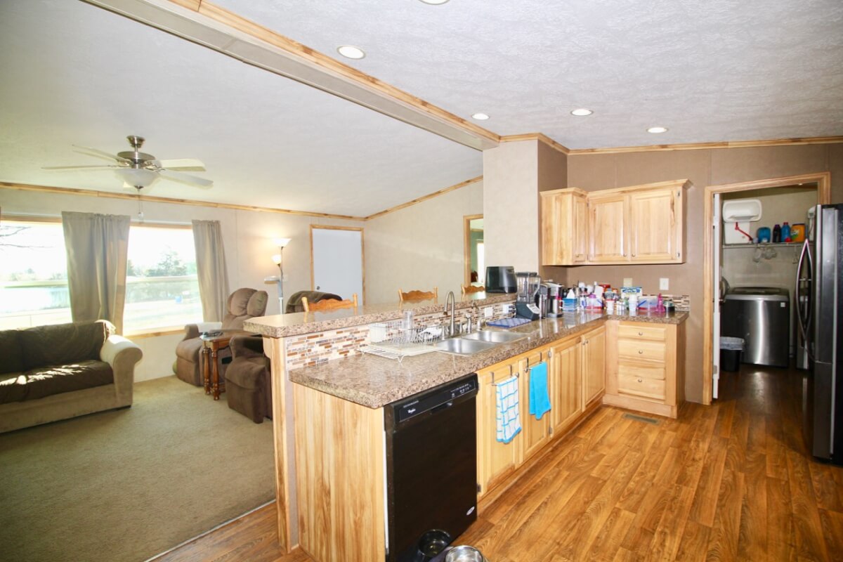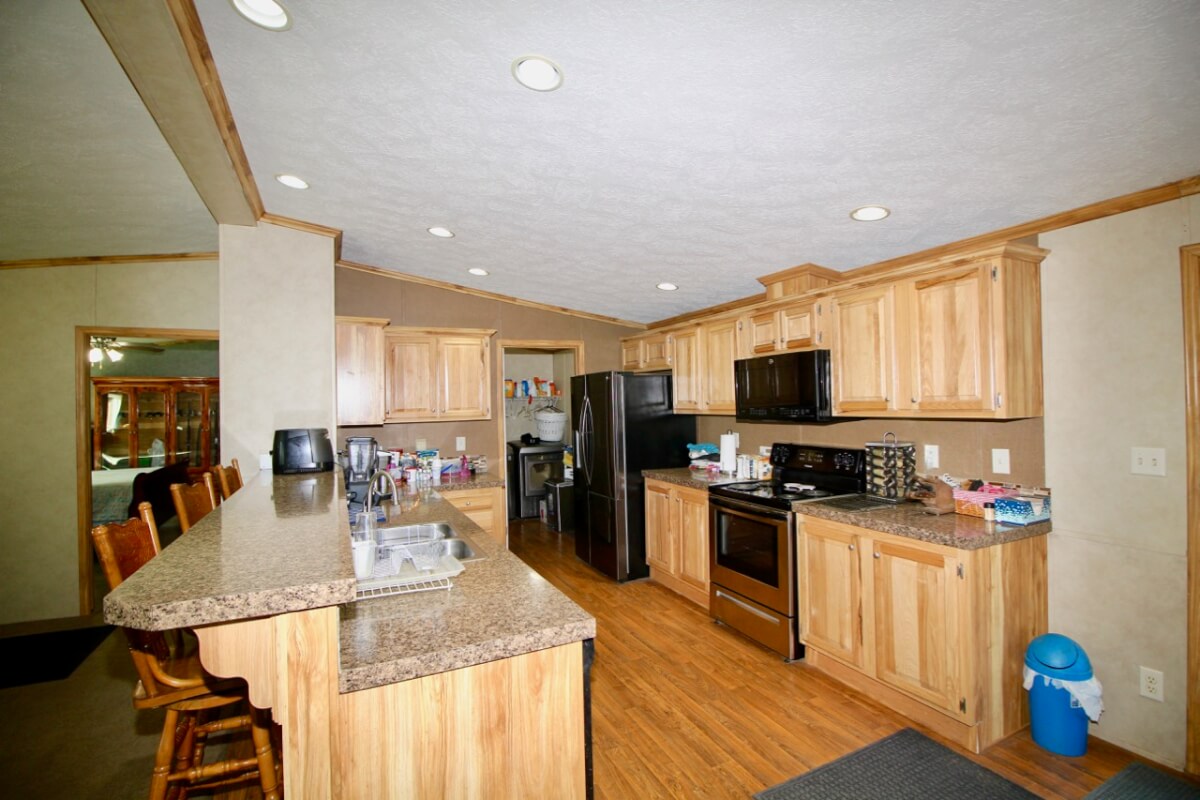 PROPERTY DESCRIPTION: 153+- acres of excellent diverse Greenwood County Kansas land with a house & garage. The land consists of a 4 Acre stocked Lake and 4 additional small ponds. According to the Seller, the lake measures 17′ deep during normal conditions. Enjoy time on the permanent dock! Scattered timber and pasture provide excellent food and cover for both livestock and wildlife. Fences range from average to new. The manufactured home on a permanent foundation has 1392 square feet of finished living area and was built in 2013. It has 3 bedrooms, 2 full bathrooms, and will include all of the appliances. Utilities include rural water, septic with laterals, an owned 500 gallon propane tank, and a Generac generator backup system. The detached garage has an oversized 2 car parking area with 2 overhead doors, plus an additional space for an office or workshop area. A 10′ x 10′ above ground concrete tornado shelter with 10″ thick walls sits to the northeast of the house. There is also a reconstructed pole barn for hay or equipment storage. What a great opportunity to have a lake front house with good livestock pasture and hunting for Kansas Whitetail Deer, Quail, Ducks, Geese, and Turkeys!
