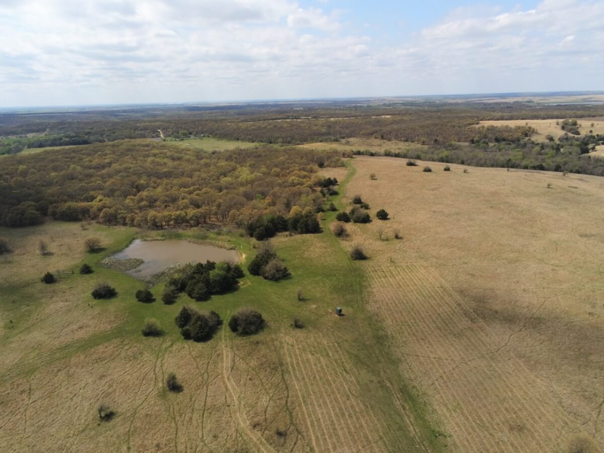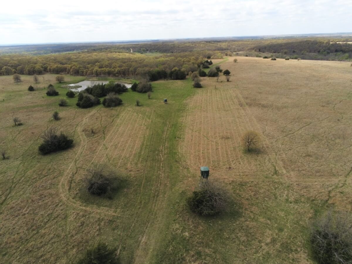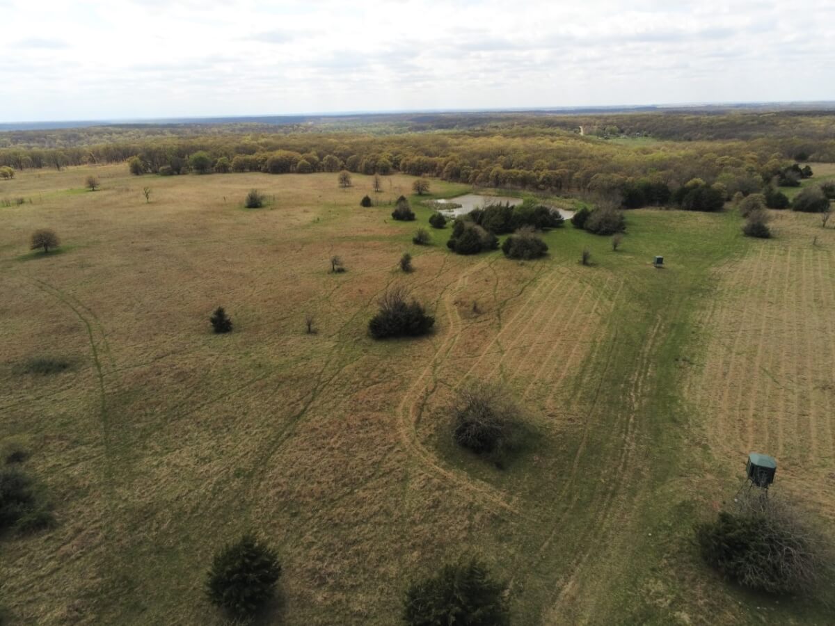 PROPERTY DESCRIPTION: High density of deer and wildlife, gorgeous rolling topography and fantastic views, this is the property you’ve been looking for. This property has several bodies of water on it which aid livestock production, wildlife and recreational purposes. It also has a very diverse topography, from great timber to beautiful grassland and a creek bottom that holds water in the driest of seasons. Property comes turnkey with food plots, new Redneck Blind and 3500lbs deer feeder.
