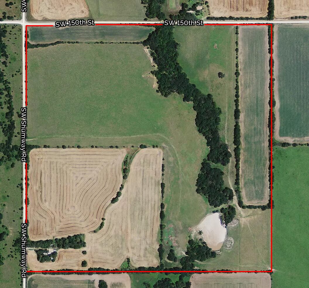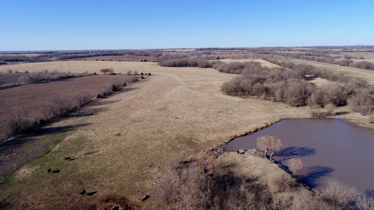 PROPERTY DESCRIPTION: 160+- acres consisting of a large pond, native pasture, tillable ground, timber, and improvements. The pond is fed water by a small creek that is currently running water. There are 93+- acres of excellent quality native pasture, perfect for livestock grazing year round but especially set up for winter pasture. The balance of the property is 64+- acres of tillable, a small portion of which is planted to Alfalfa. The balance of the tillable is worked and ready for spring planting of Soybeans or Corn. The timber, terrain, and diverse layout of this property make it especially conducive for wildlife. Deer and Turkey are abundant, and the draws, tillable fields, and hedge rows make excellent habitat for Quail. If you like waterfowl hunting, the property is ideal for that too. Improvements on the property include a single wide trailer house currently rented for $250/month. There are 2 Rural Water Meters on the property, which makes this property a great candidate for future rural residences, a barn/building with living quarters, or a cabin.