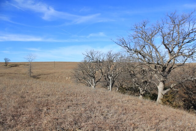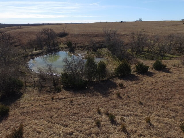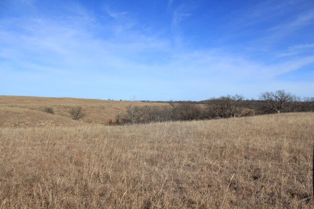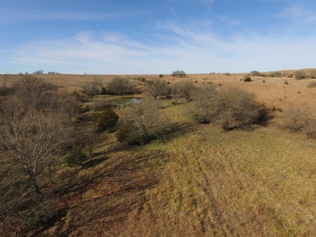 PROPERTY DESCRIPTION: 160+- acres of native Flint Hills pasture near Madison, Kansas. This tract of land includes good oil income, scenic rolling Flint Hills terrain, Oak timber lined draws with abundant wildlife, and a clear water pond. The landowners recent share of the oil income has been: 2014-$6489, 2013-$6187, 2012-$5190. The pasture has been grazed recently with a neighbor, so there is no fence on the west and a portion of the south. This tract of land offer a nice combination of agriculture, oil income, and recreation.