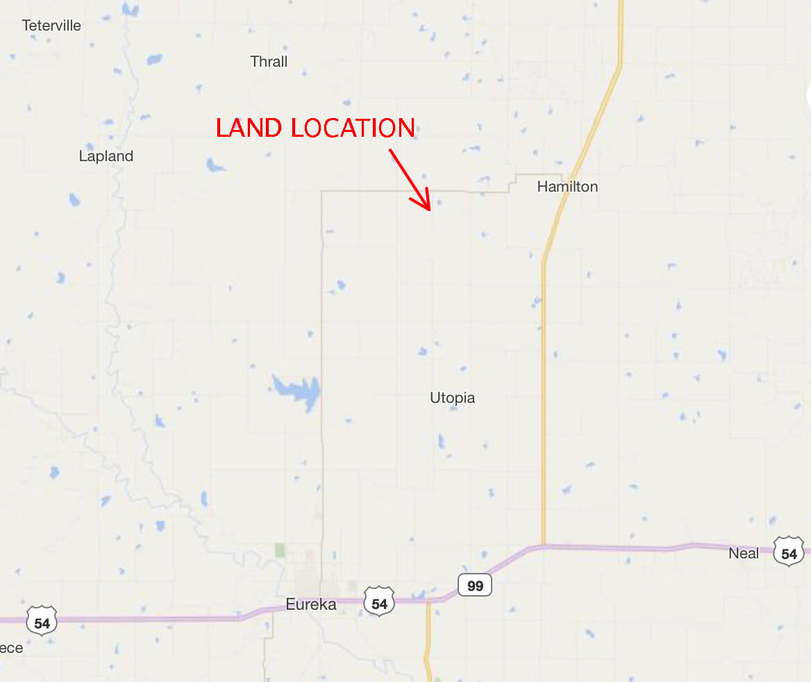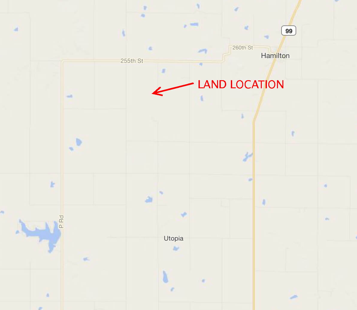 LAND LOCATION: From Eureka, north on P. Rd to 255th, East to S Rd, South 1/2 mile to the property OR from Hamilton West on 260th/255th to S Rd, South 1/2 mile to the property.