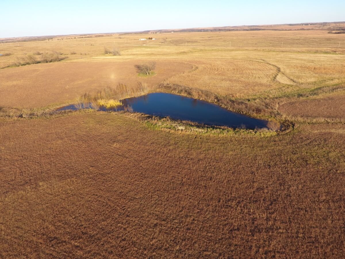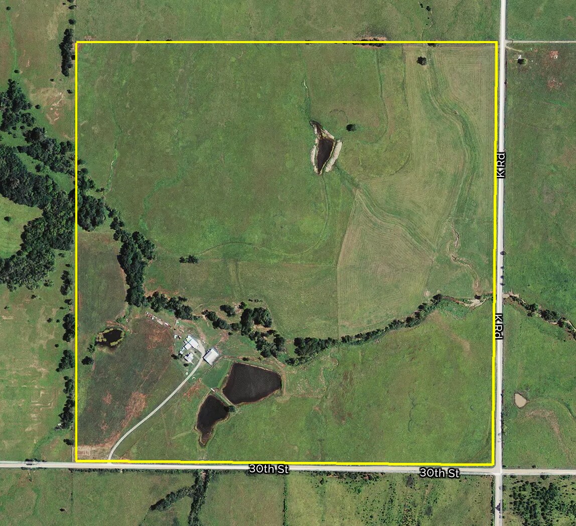 PROPERTY DESCRIPTION: 160+- acres of excellent quality native Flint Hills pasture with 4 ponds, gently rolling terrain, timber lined spring fed draw, and improvements. This tract of land has most recently been utilized as hay meadow but is set up nicely for rotational cattle grazing. The pasture is cross fenced into different grazing units and has a nice set of working livestock pens. The spring fed timber lined draw offer good winter cover and acts as an excellent traffic way for wildlife including Kansas Whitetail Deer, Turkey, and Quail.
