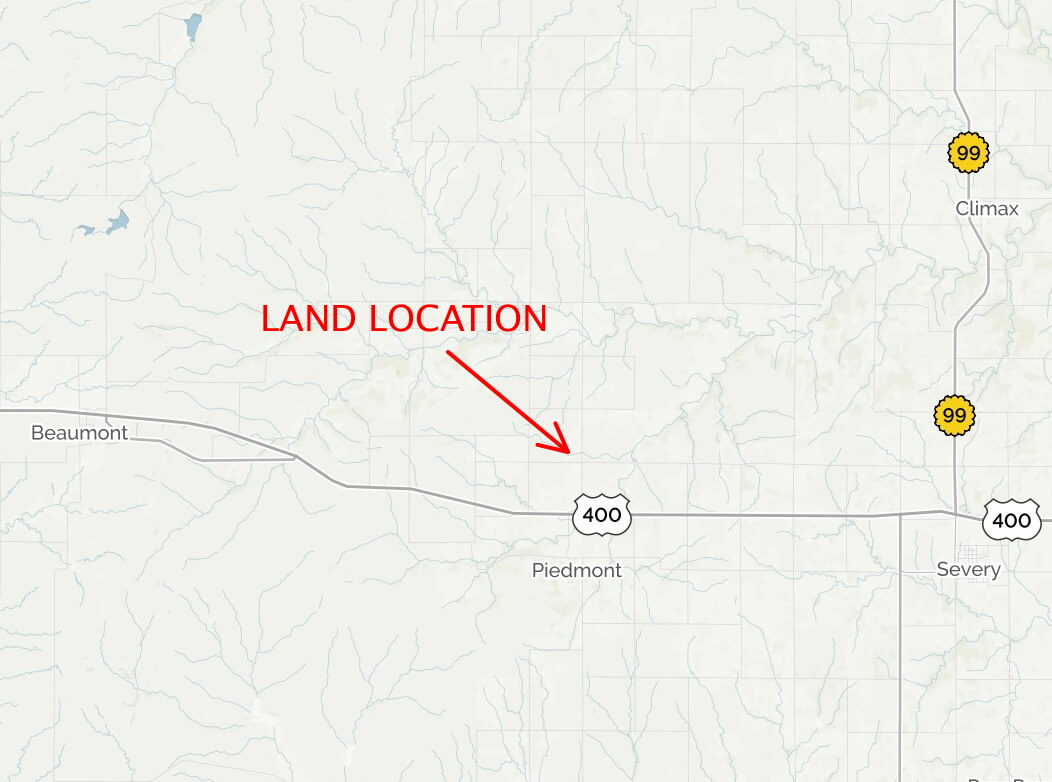 LAND LOCATION: From HWY 400 at Piedmont Kansas, North on K Rd. 1 Mile.