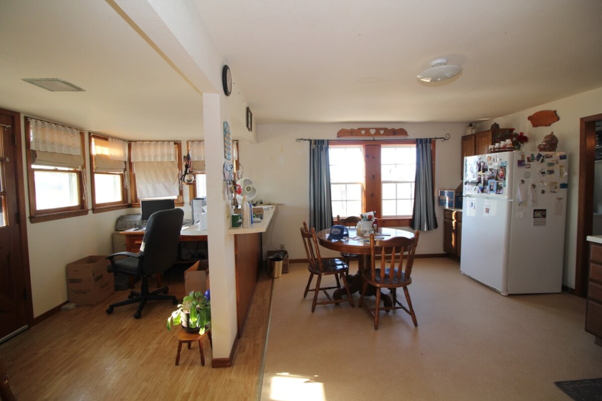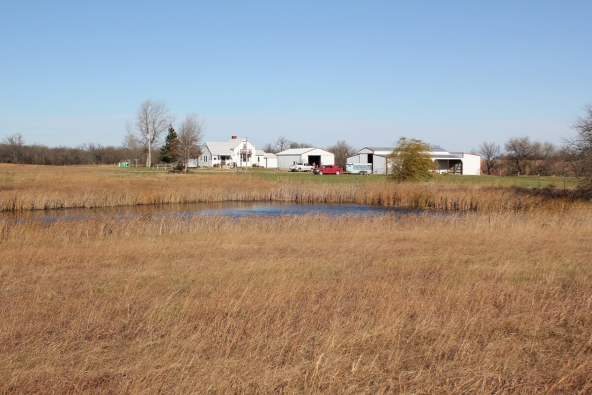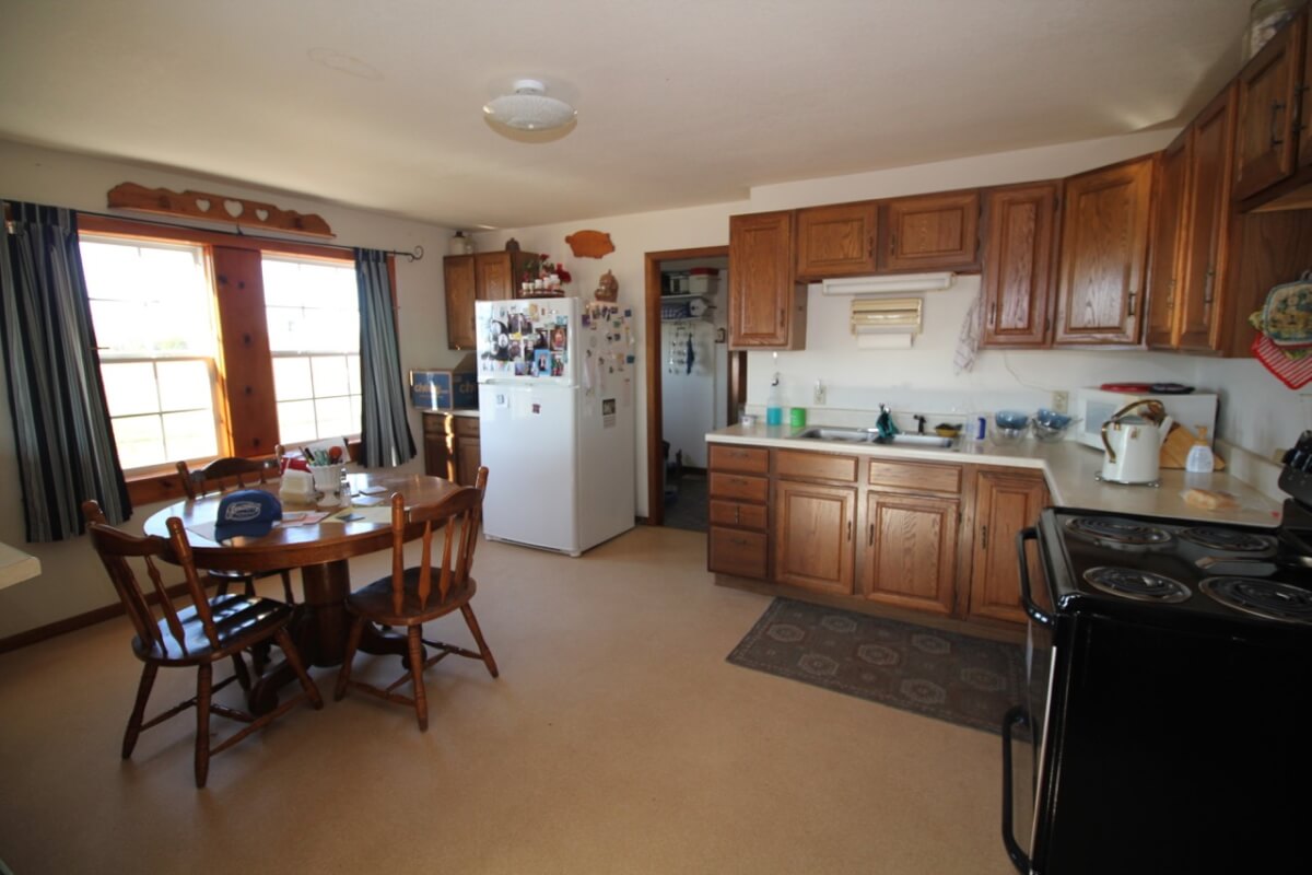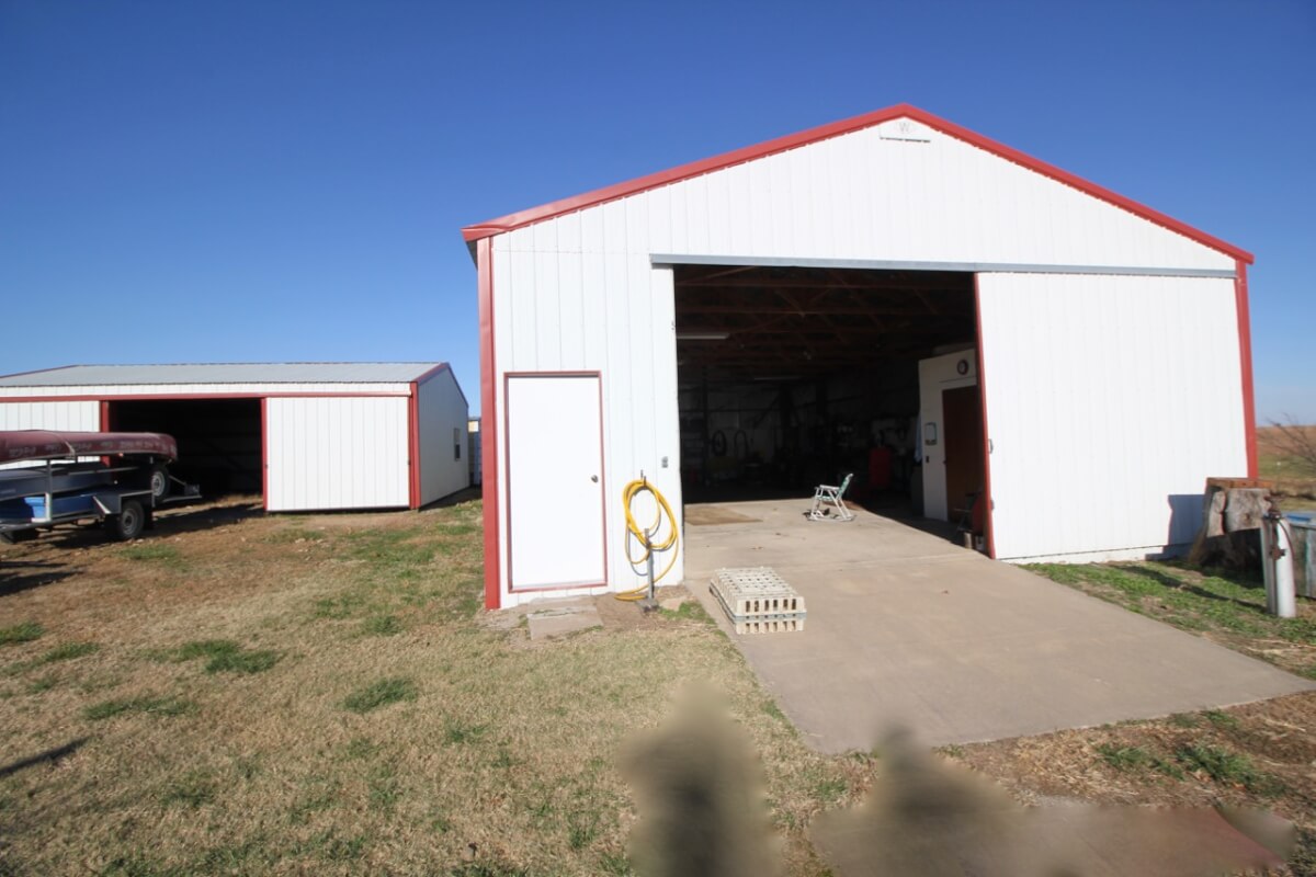 IMPROVEMENTS: A very nicely set up homestead features a 3+ bedroom 1 bath home on rural water and a 50′ x 30′ insulated metal building with concrete floor, electric, and a small office. The house is heated by central HVAC, a wood burning stove, and propane. Other buildings include a 36′ x 60′ hay barn/equipment storage building, 48′ x 16′ lean-to, and several other misc. utility buildings. The long gated driveway allows for a beautiful, secluded, and secure setting. The view of the two stocked clear water fishing ponds from the front porch looking east is fabulous!