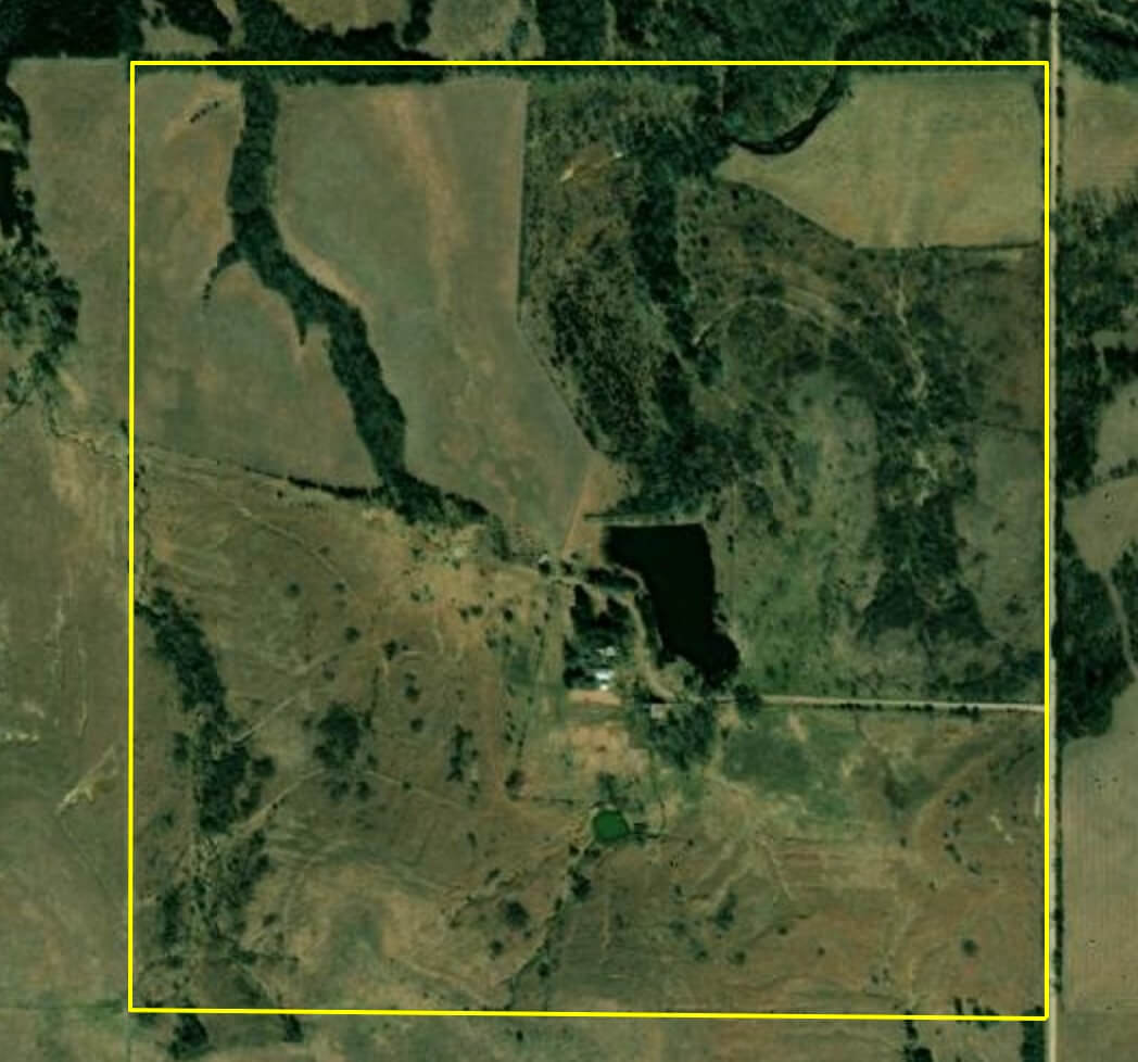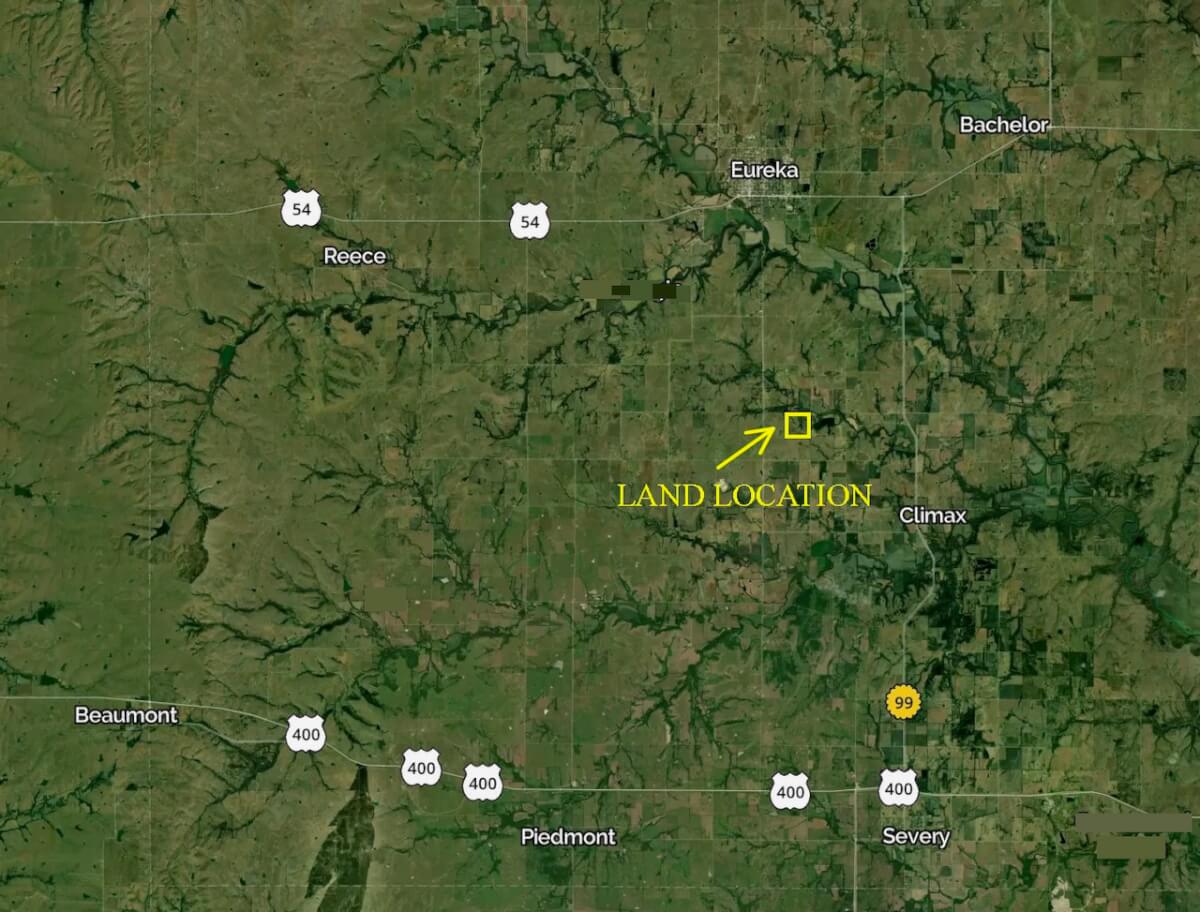 LAND LOCATION: From Eureka, KS south on State St (P Rd) 3 1/2 miles to 110th St, 1 mile east to Q Rd, 1 mile south to the property.
