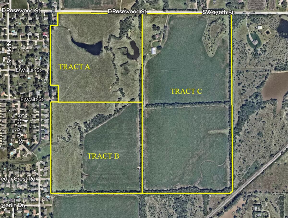 160 Acres Rose Hill Kansas, 3 Tracts – Homestead, Ponds, Tillable Farm Ground, Pasture