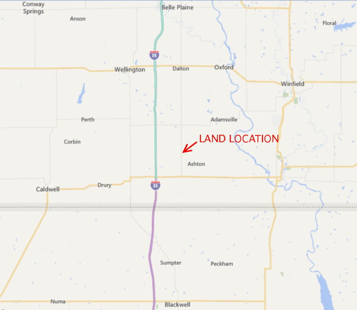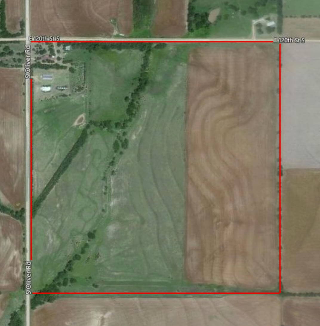 LAND LOCATION: From the Wellington I-35 Turnpike Exit, 3 1/2 miles East on HWY 160 (10th Ave) to Oliver Rd, South on Oliver Rd 11 miles.