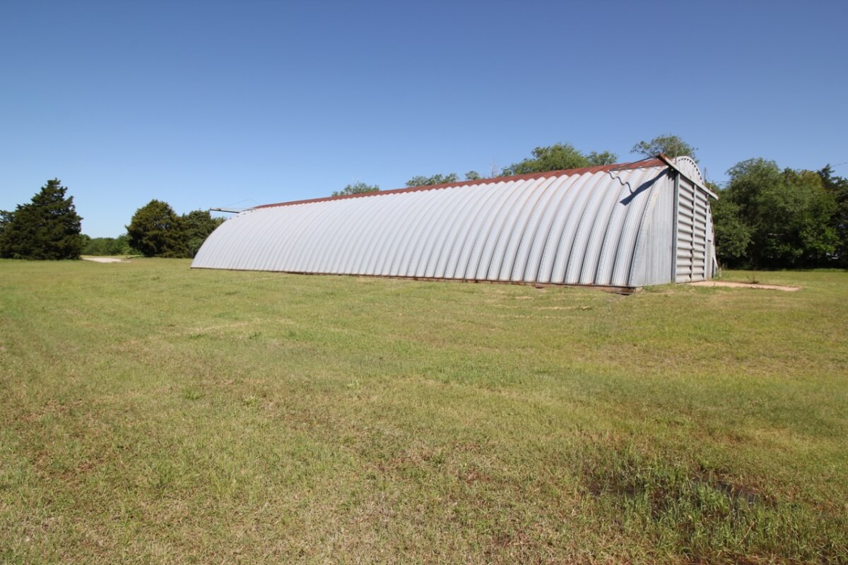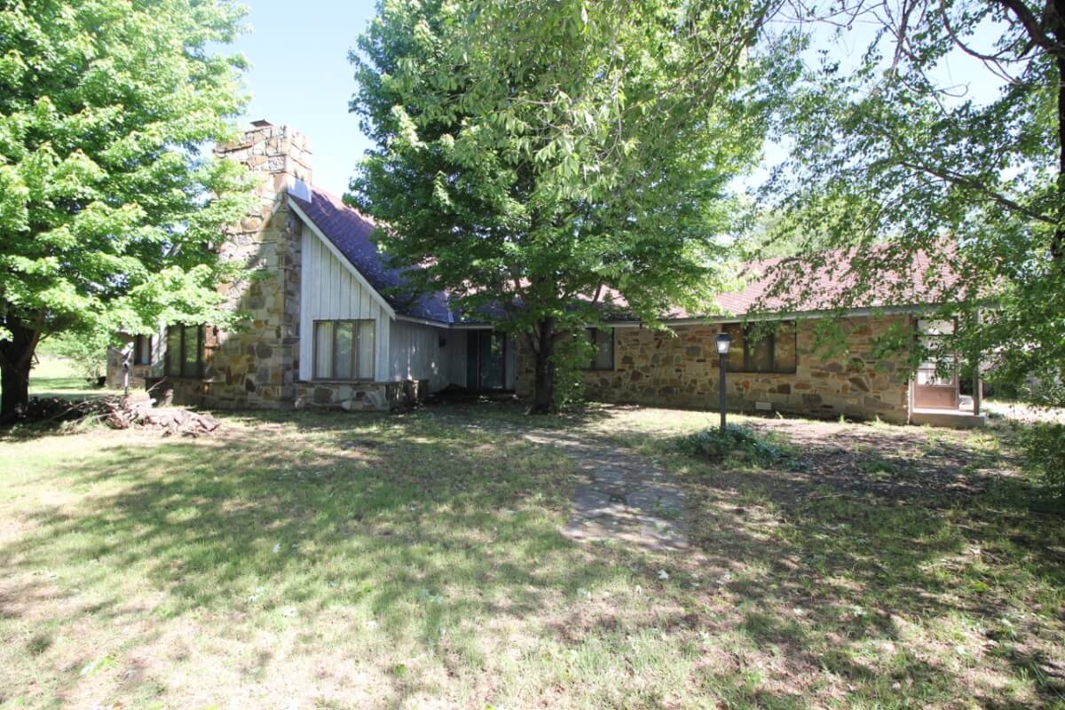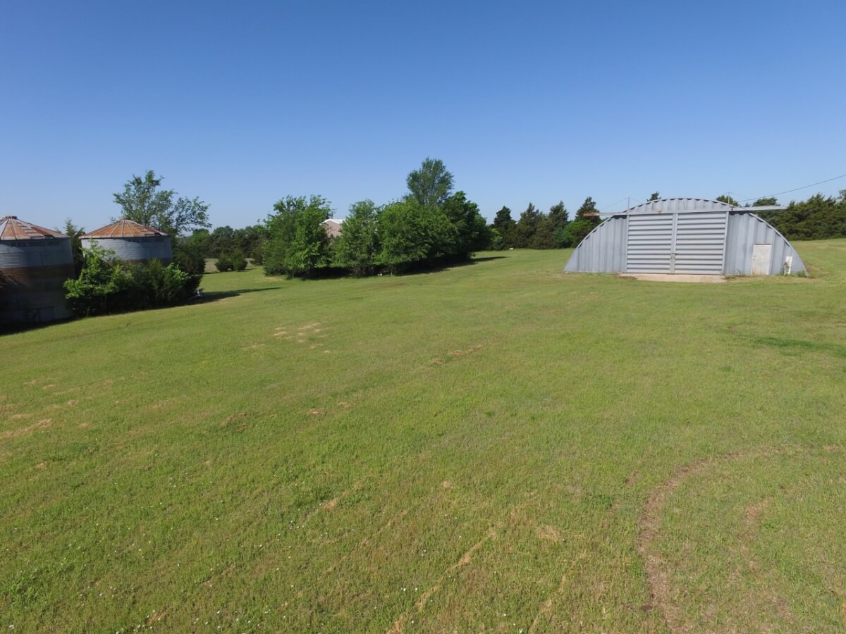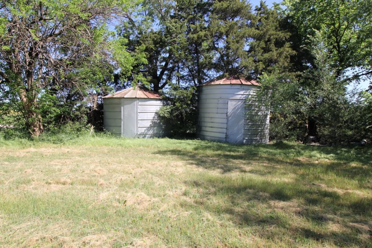 IMPROVEMENTS: This mostly native stone 4 bedroom 2 bath 1 1/2 story home was built in 1977 and has 3348 square feet of above ground finished living area. The 25′ vaulted living room ceiling has beautiful wood beams and a native stone fireplace that is sure to impress! The kitchen includes a butcher block island and plenty of cabinet space. Water is supplied to the house by rural water district #4. A new 50 year shingle roof is only a few years old. Buildings on the property include a 100′ x 50′ quonset building with concrete floor, 80′ x 40′ metal building with concrete floor, and several miscellaneous utility buildings, tool sheds, and steel grain bins.