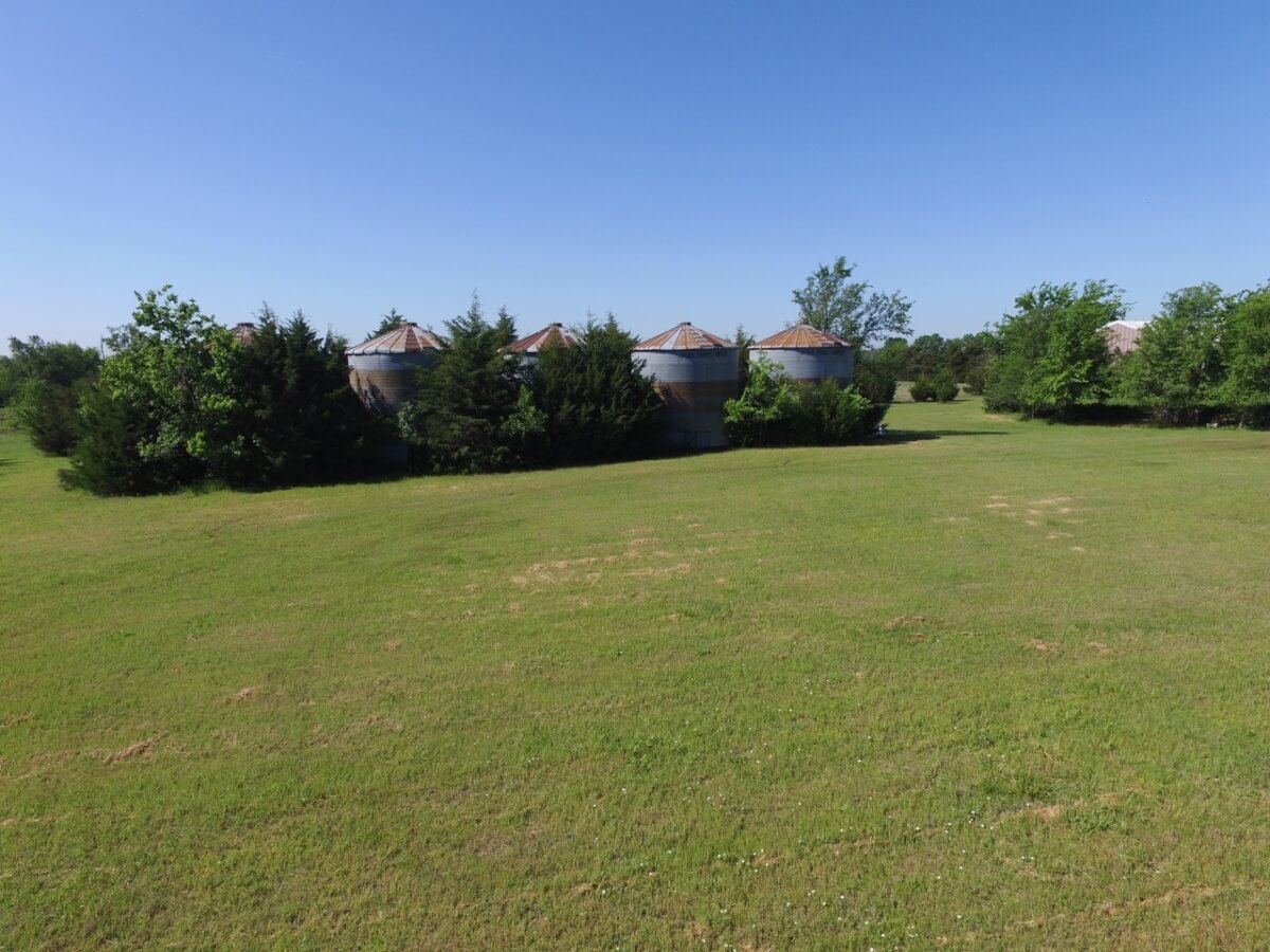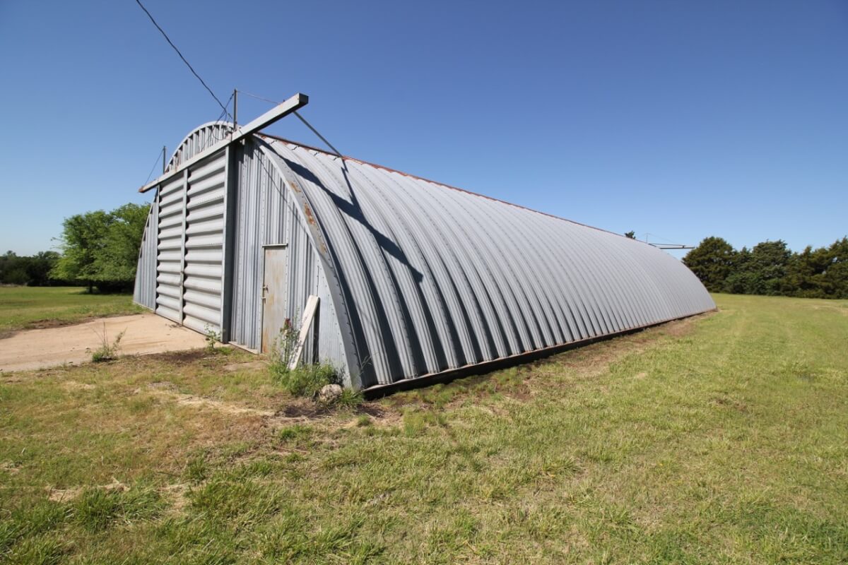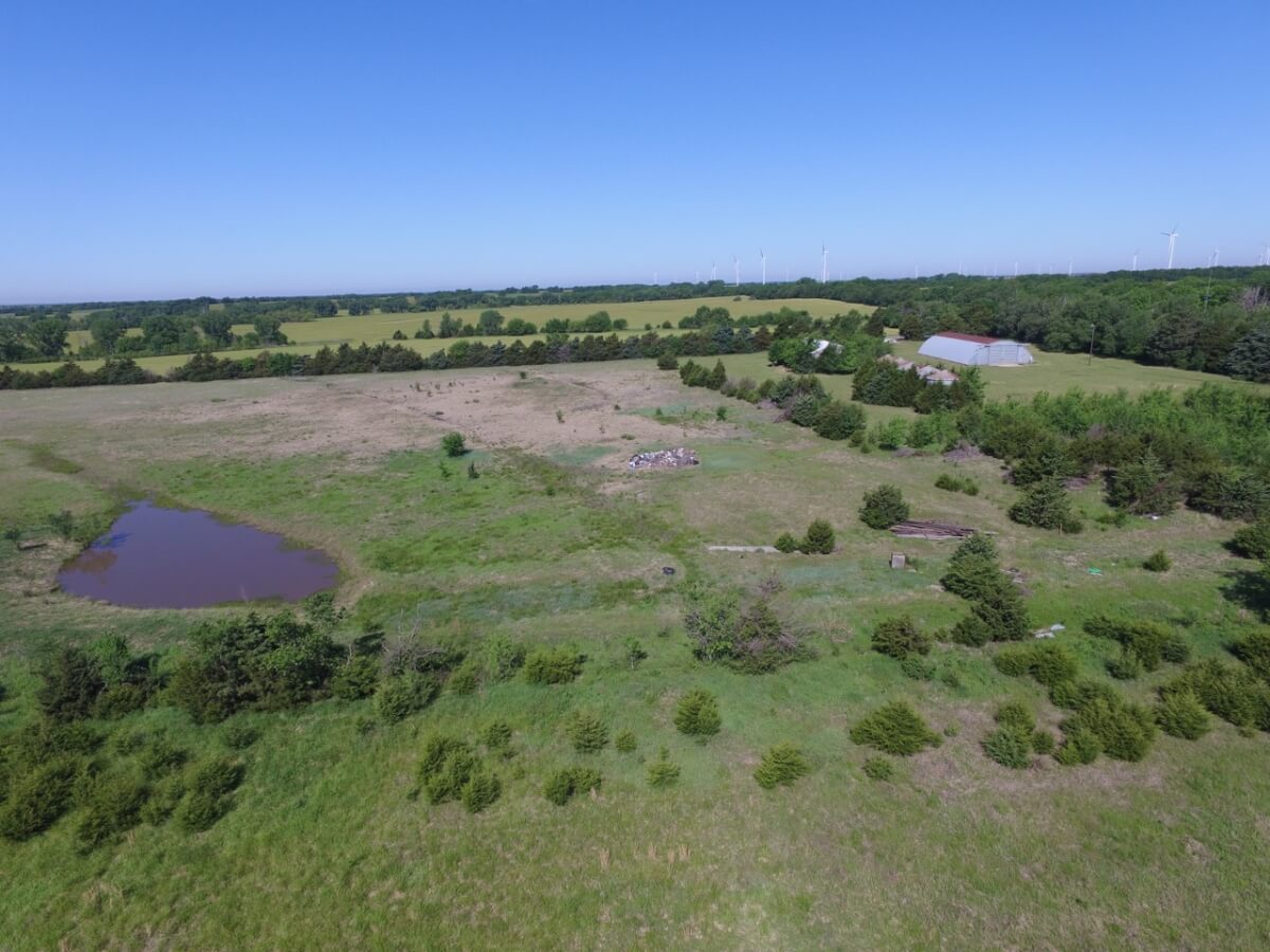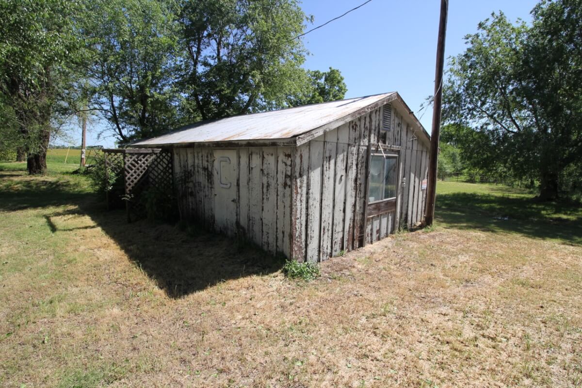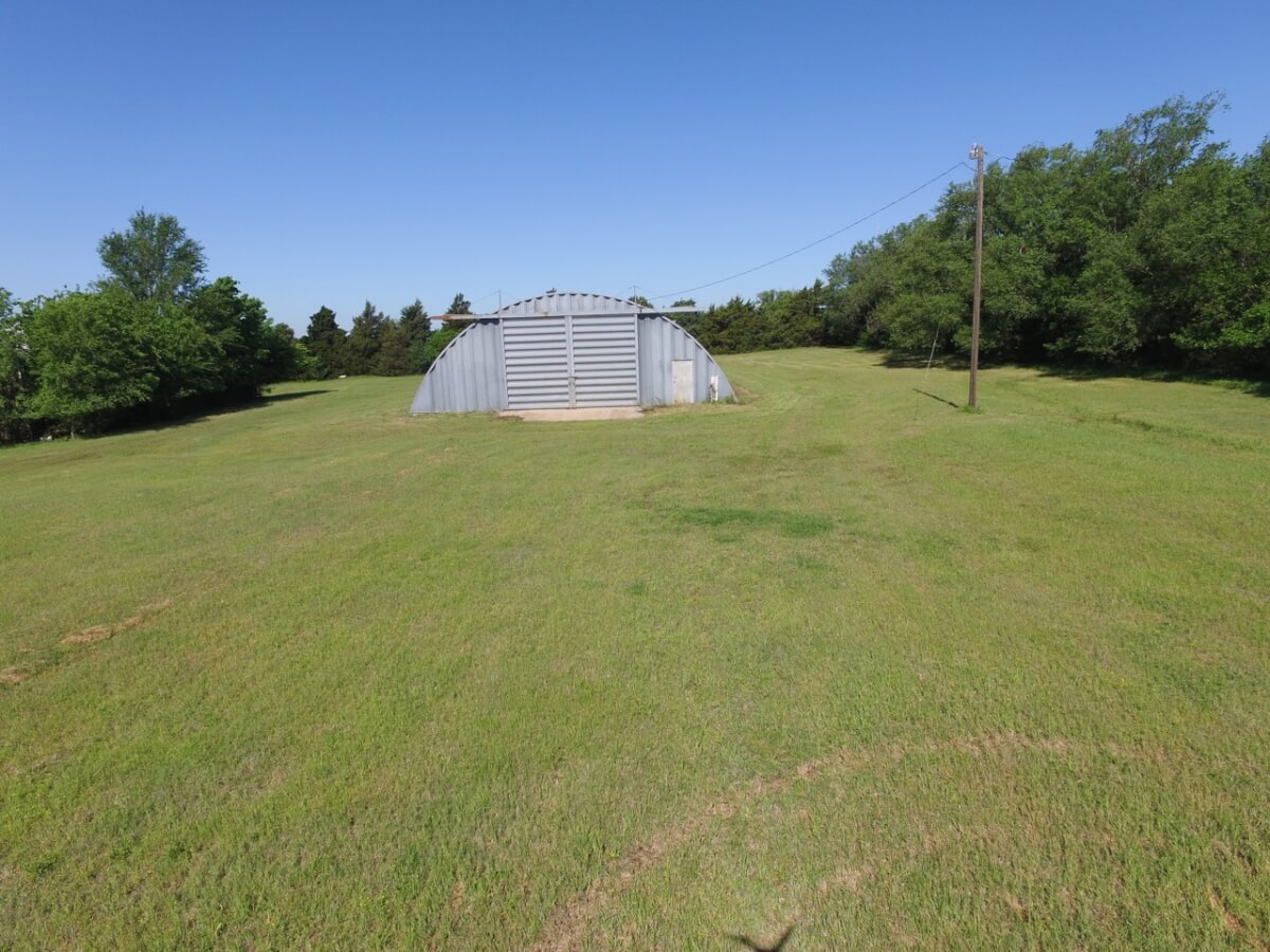 IMPROVEMENTS: This mostly native stone 4 bedroom 2 bath 1 1/2 story home was built in 1977 and has 3348 square feet of above ground finished living area. The 25′ vaulted living room ceiling has beautiful wood beams and a native stone fireplace that is sure to impress! The kitchen includes a butcher block island and plenty of cabinet space. Water is supplied to the house by rural water district #4. A new 50 year shingle roof is only a few years old. Buildings on the property include a 100′ x 50′ quonset building with concrete floor, 80′ x 40′ metal building with concrete floor, and several miscellaneous utility buildings, tool sheds, and steel grain bins.