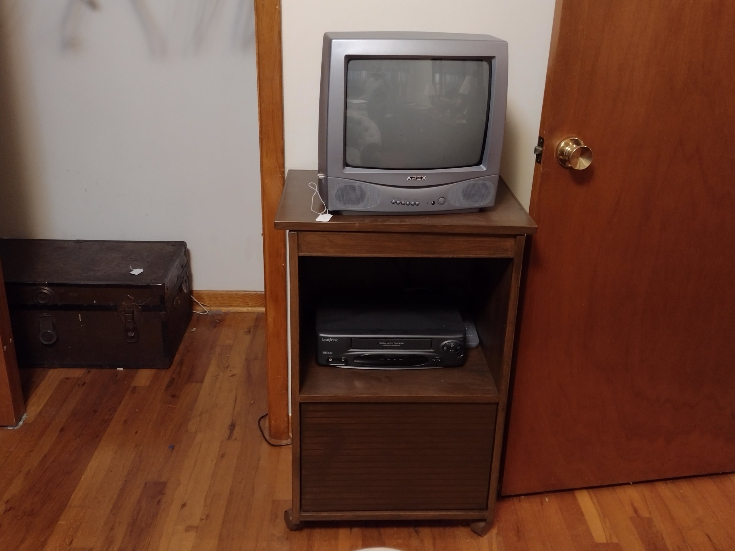 74 Rolling Cart, TV, VCR, contents in the bottom of cart