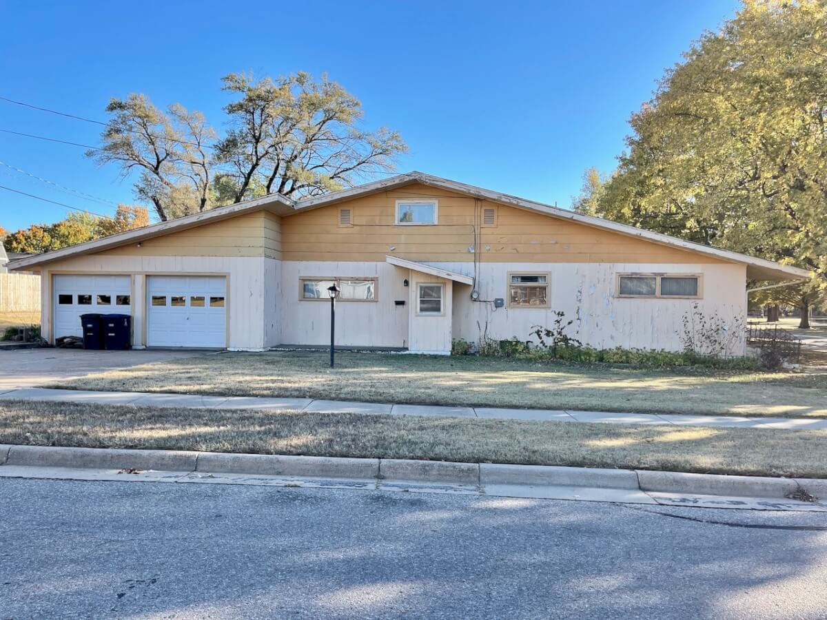 PROPERTY DESCRIPTION: 4 bedroom 1 1/2 bath home located in El Dorado, Kansas. Cool unique home! Built in 1961, this house has 1627 square feet of finished living area. The main level has 2 living rooms, kitchen, 1 1/2 bathrooms, and 3 bedrooms. There is a 2nd story bedroom as well. Storm Shelter is accessible through living room. The 2 car attached garage has extra work space. On the back side of the house is a screened in covered patio. Very solid home with the opportunity to add instant equity with some updates and attention to deferred maintenance. This house is a great candidate for an owner occupant, investor, or high end rental buyer! Invest In Real Estate!