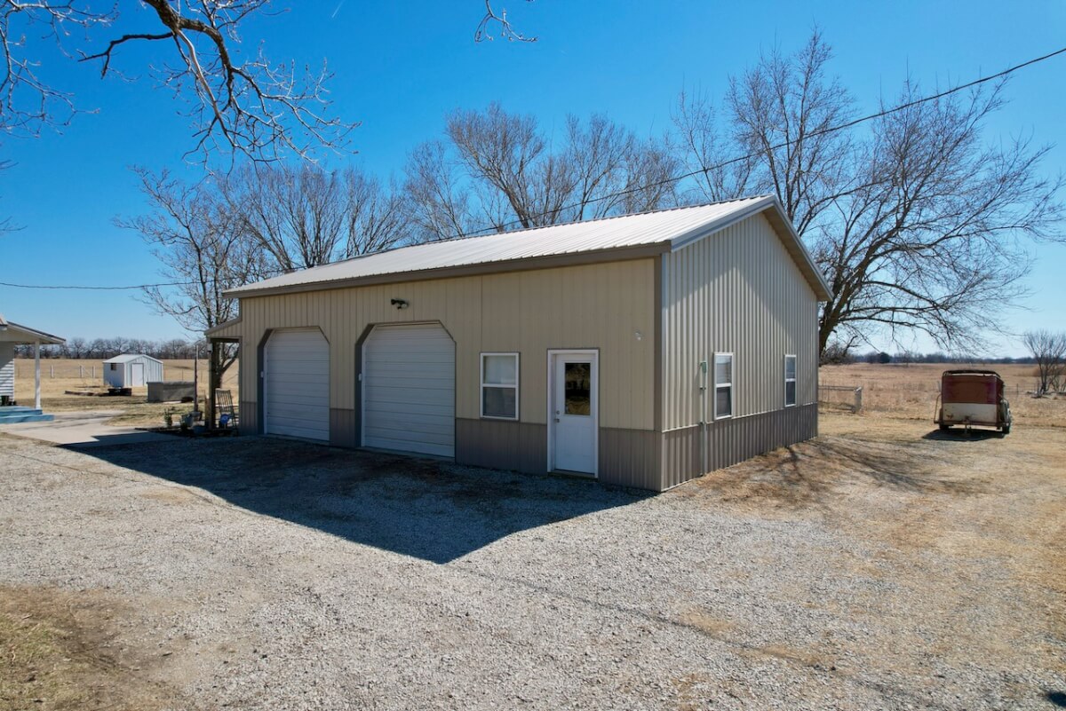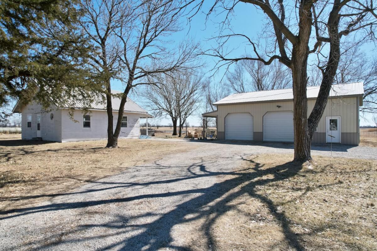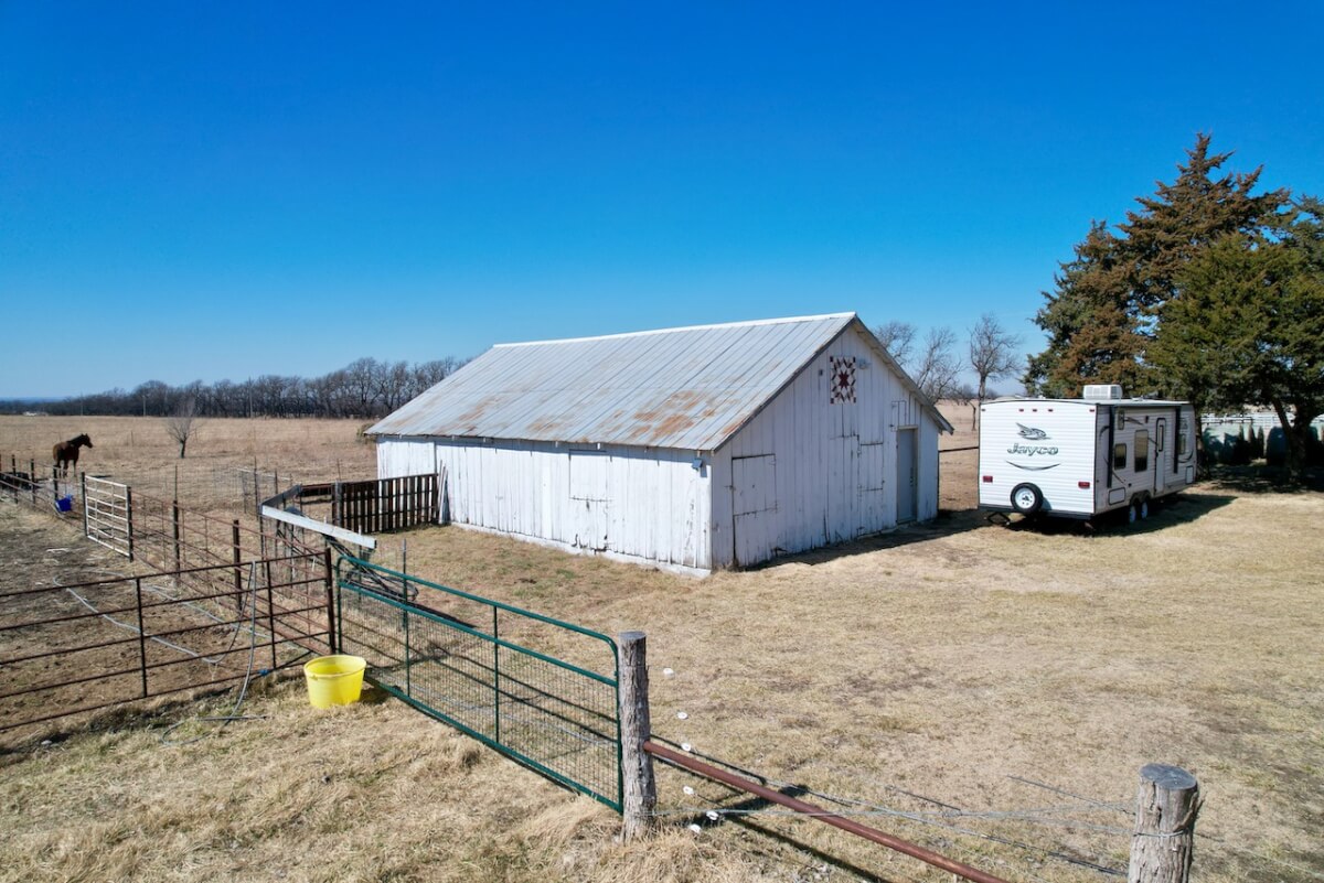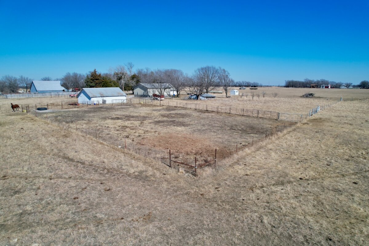 PROPERTY DESCRIPTION: Welcome home to this incredible property. 2 bed 1 bath home, 40’x30′ shop with covered patio, barn with tack room, 2 additional buildings all on 21 acres which feature 2 corrals, pond, and native pasture. The pond consistently provides refuge to migratory birds. The interior of the home features numerous upgrades including hardwood floors, granite countertops, floor-to-ceiling cabinetry, all appliances stay! The insulated shop offers 2 8′ overhead doors, 2 walkthrough doors, and wood stove heater. The barn is in active use, has electricity, and nice tack room. 2 additional outbuildings offer additional storage and function. This property offers tranquil living just northeast of Howard KS.