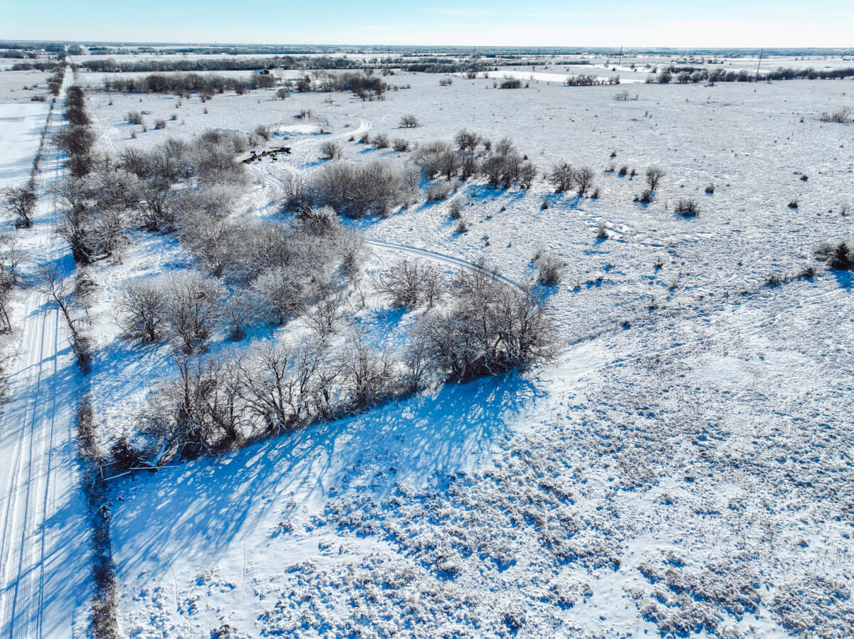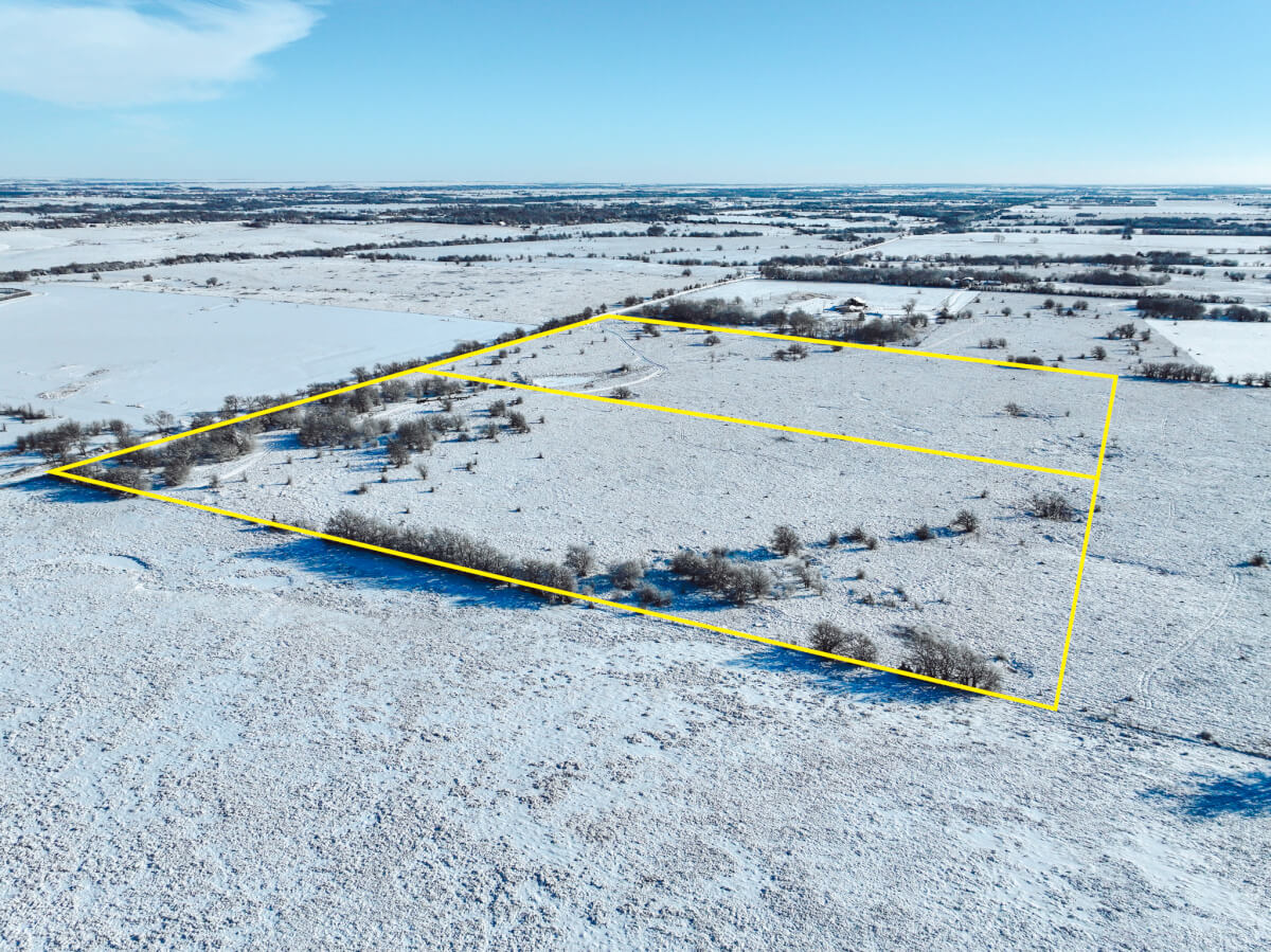 TRACT 2 PROPERTY DESCRIPTION: The east 20 offers additional variety: pond, pasture, and scattered trees. A unique characteristic is UNDERGROUND: Arrowhead Cave is a recognized cave by the Kansas Speleological Society. Check out of pictures and video HERE. Rural water and utilities available. Access is off SE 20th, and 1.5 miles from 2 paved roads. Great opportunity for a building site OR keep a few livestock!
