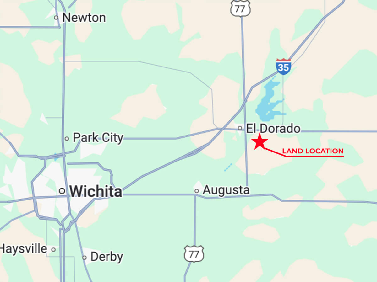 LAND LOCATION: 1.5 miles east of HWY 77 on SE 20th and 2 miles from El Dorado Kansas.