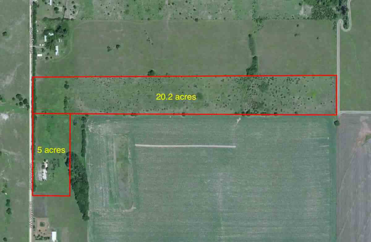 PROPERTY DESCRIPTION: 20.2+- Acres in Butler County, KS near Douglass. Property is comprised of hay meadow, rolling pasture, and timber. Land would be perfect for future home site, or continue use as an agricultural investment property. There is a rural water line on the west side of Boyer Rd and meters are available in the area.