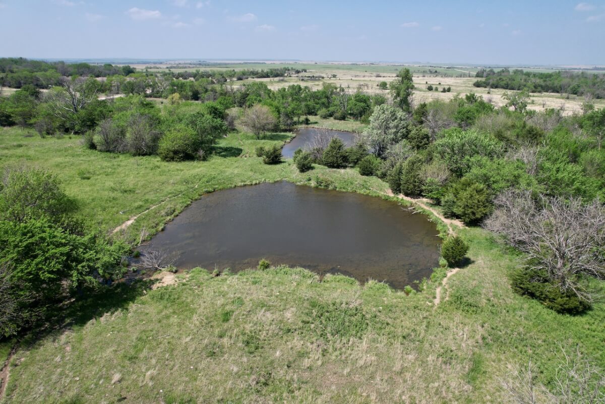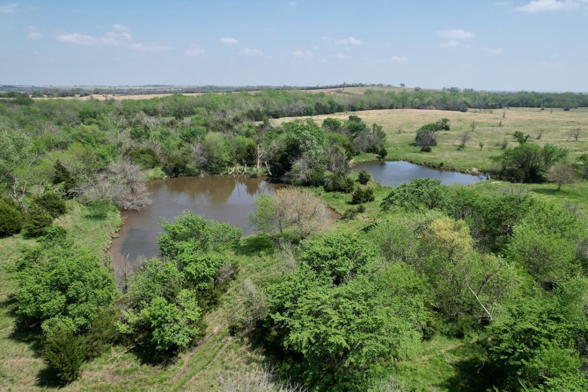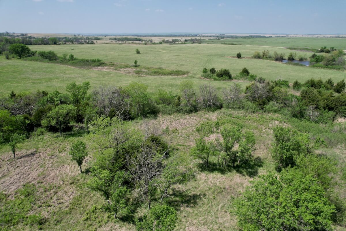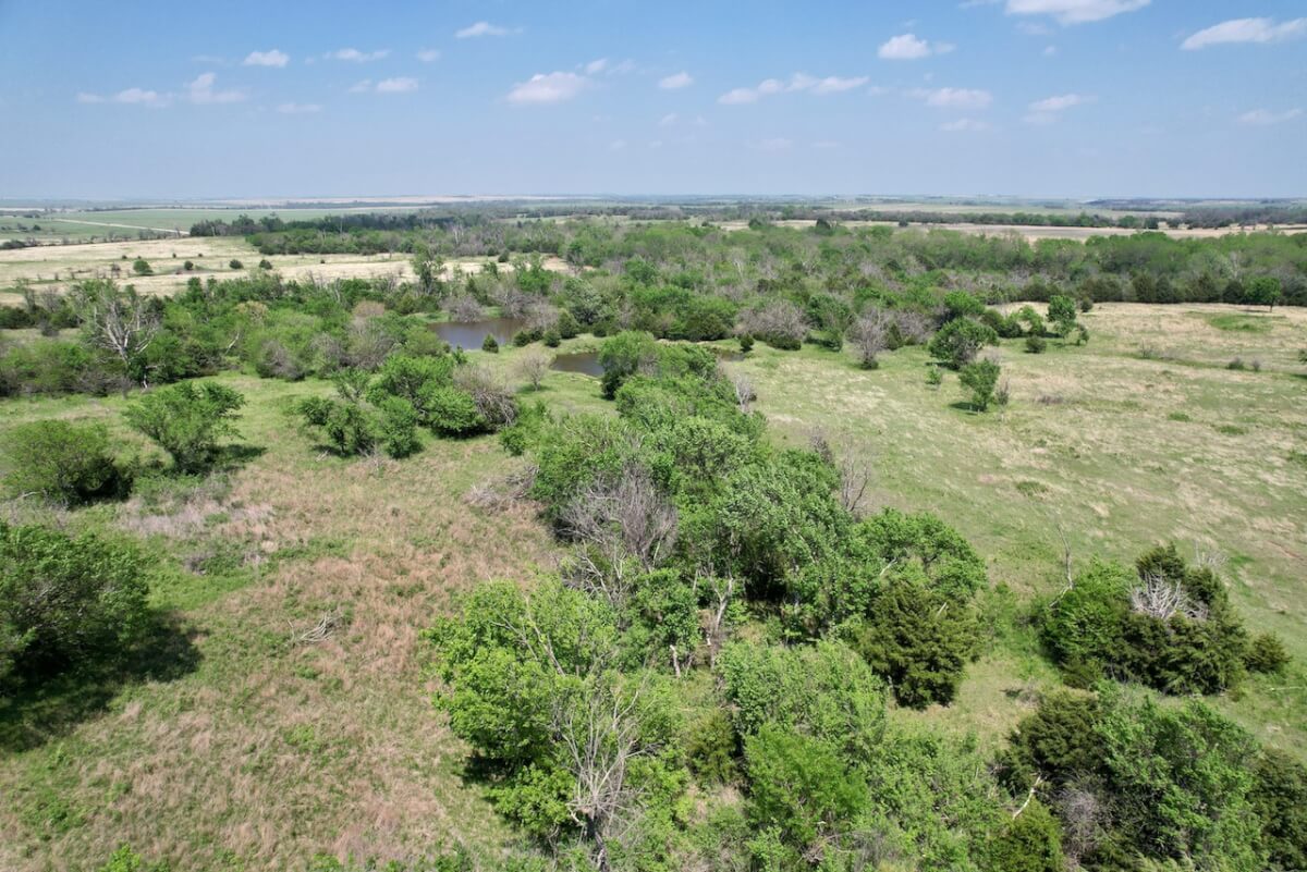 TRACT 2 PROPERTY DESCRIPTION: 40+- acres with a nice clear water pond, trees and brush, pasture, and good access located in the heart of the Kansas Flint Hills in Greenwood County. Great opportunity to own a high quality hunting, fishing, and recreation tract of land!