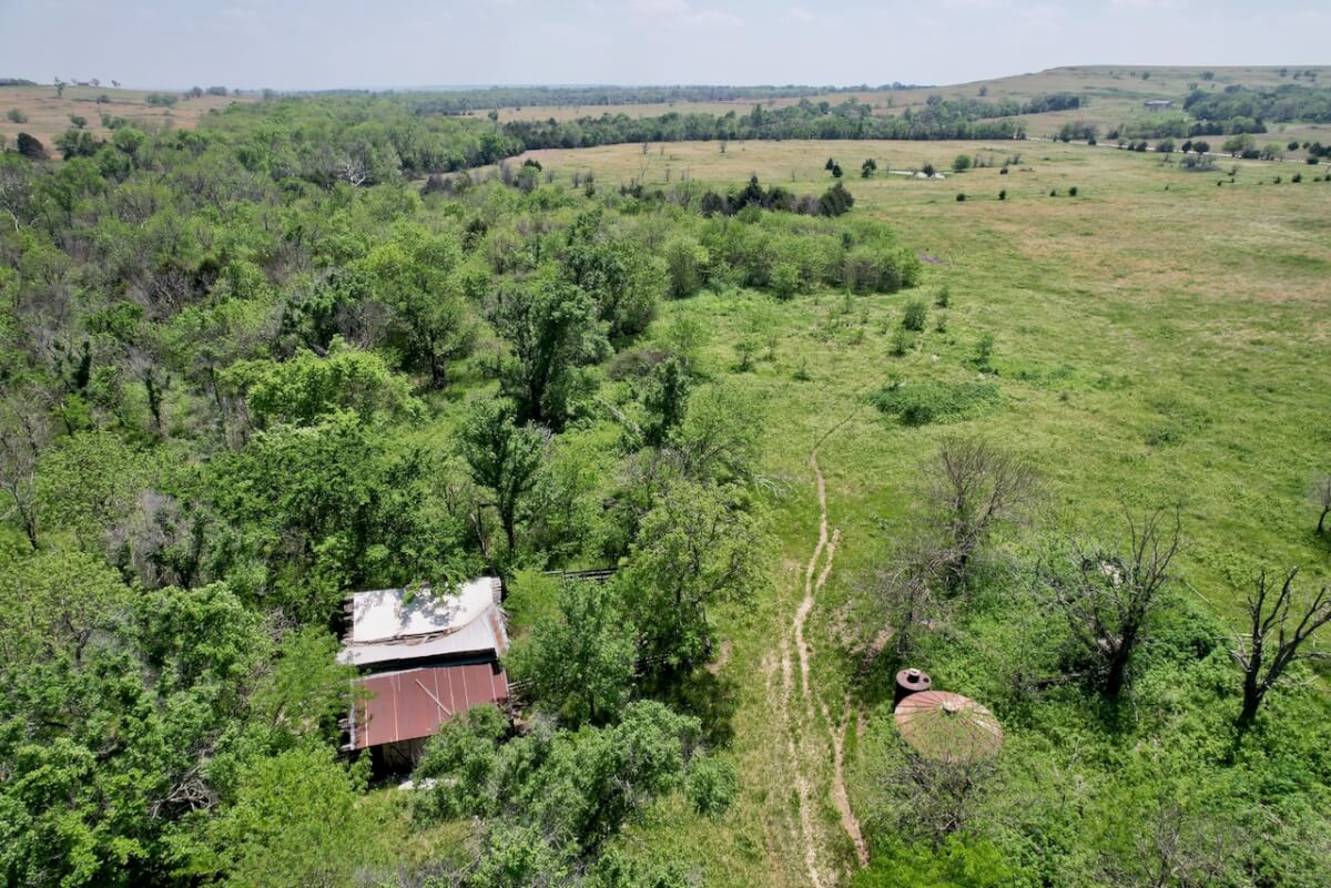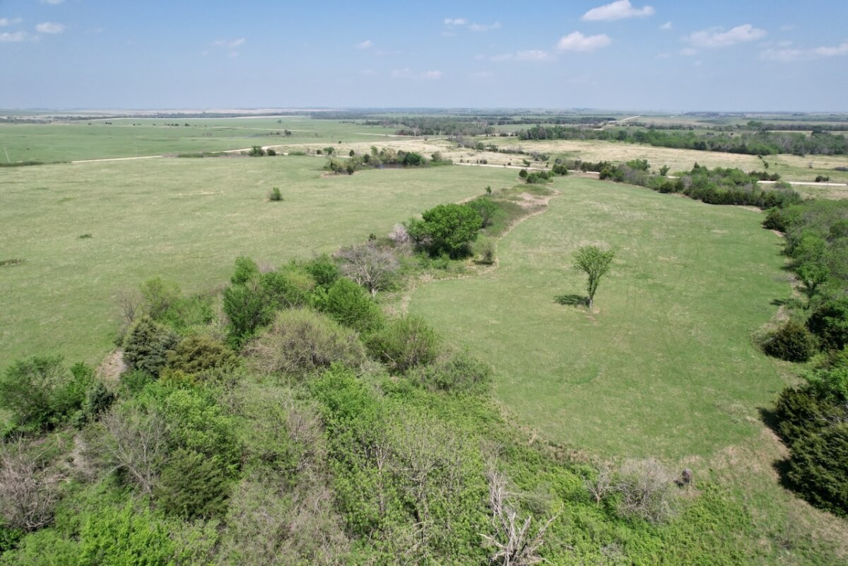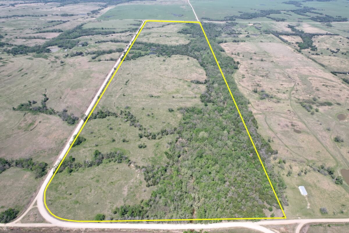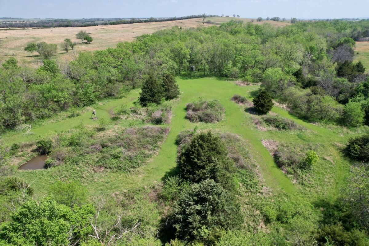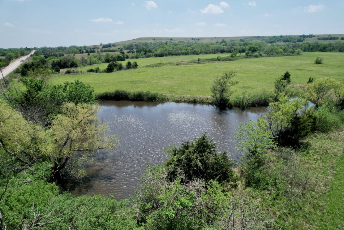 TRACT 2 PROPERTY DESCRIPTION: 40+- acres with a nice clear water pond, trees and brush, pasture, and good access located in the heart of the Kansas Flint Hills in Greenwood County. Great opportunity to own a high quality hunting, fishing, and recreation tract of land!