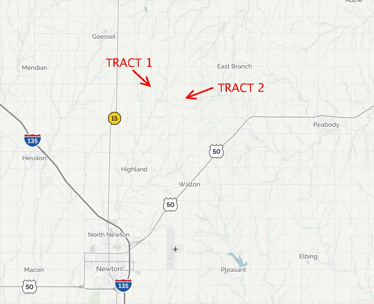 LAND LOCATION: From Newton, North on K-15 HWY 8 miles to 90th, East 1 3/4 miles to the property.