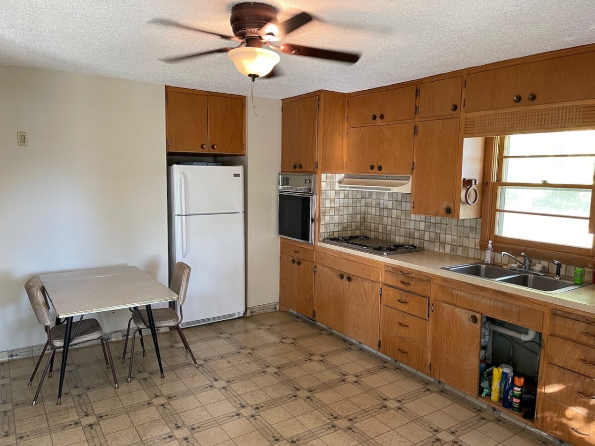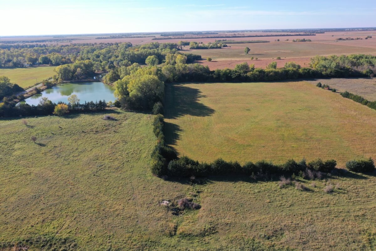 PROPERTY DESCRIPTION: 200+- acres of extremely diverse land located southwest of Hutchinson in Reno County, Kansas. Features include a 4 acre lake fed by a 1 acre spring, over 1/3 mile of the Ninnescah River, trees, heavy timber, and pasture. A full brick 3 bedroom 2 bath home with 2163 square feet of finished living area built in 1966 offers an excellent weekend retreat, hunting lodge, or primary residence. This ranch style home offers an abundance of space for family and friends. The main living room has a wood burning insert and the second living room was set up as a game room, but could also be a great 4th bedroom or bunk room. There is a 24′ x 24′ detached garage and a 50′ x 30′ metal building to store all of the toys and tools you will want to enjoy this spectacular property. Wildlife habitat is tremendous with a big thick timbered area running through the south central portion of the property, and a rectangular shaped field with a perimeter of trees, quality native pasture, and gently rolling terrain. Rarely do you see the opportunity to purchase a property with multiple high quality water sources, hunting, fishing, house, and buildings. All those features PLUS blacktop frontage access!