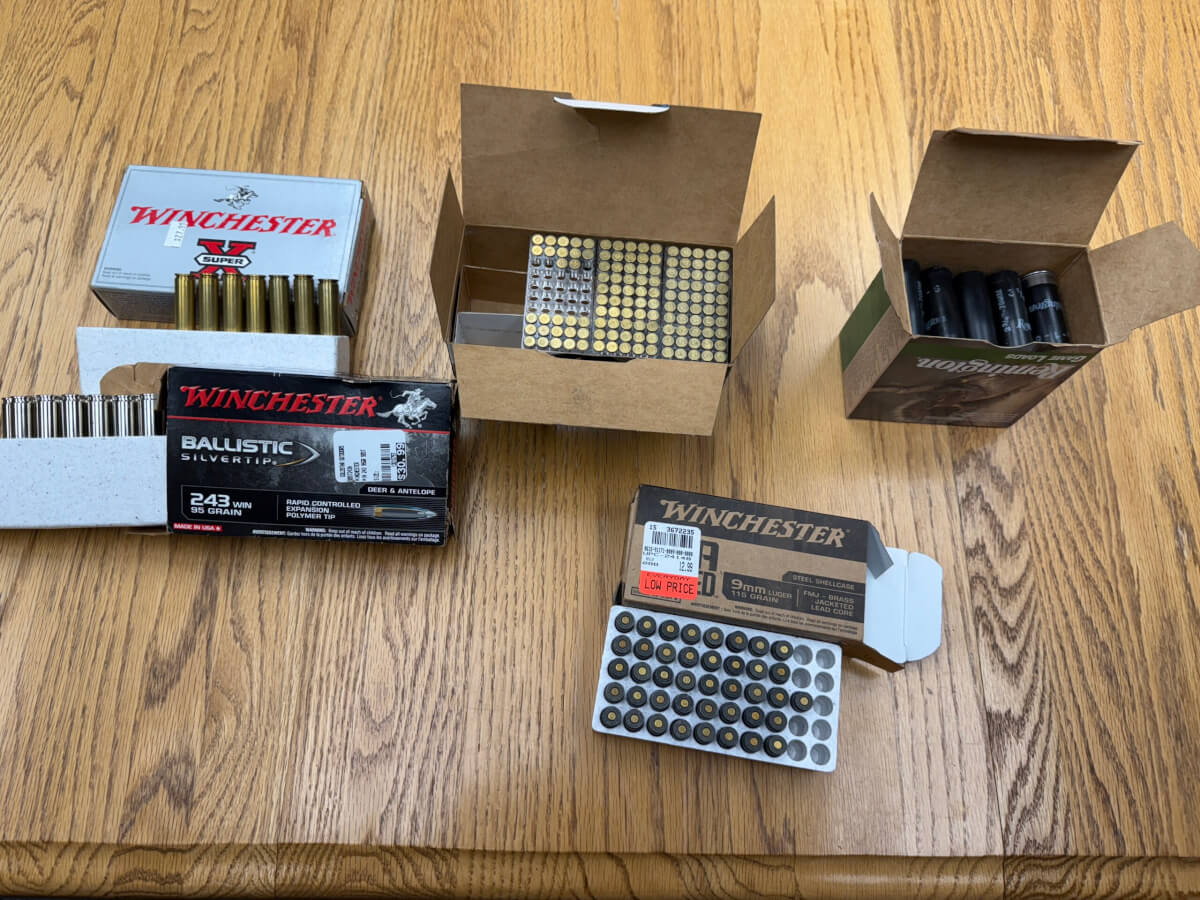 165 Partial Boxes: 30-06, .22 Mag, 9mm Luger, 12 ga. 6 Shot & 243 Win