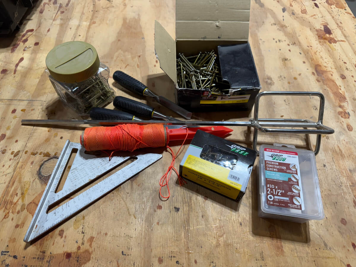 45 Stanley Chisels, Paint Stir, Square & Screws