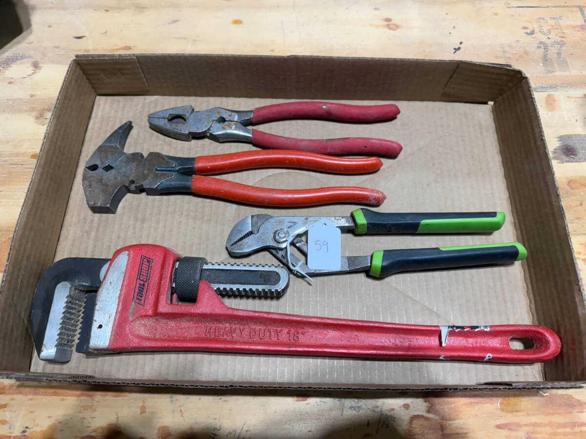 59 Pipe Wrench, Fence Pliers & Hand Tools