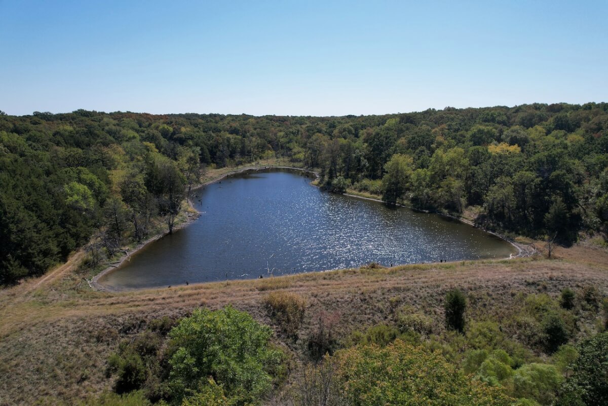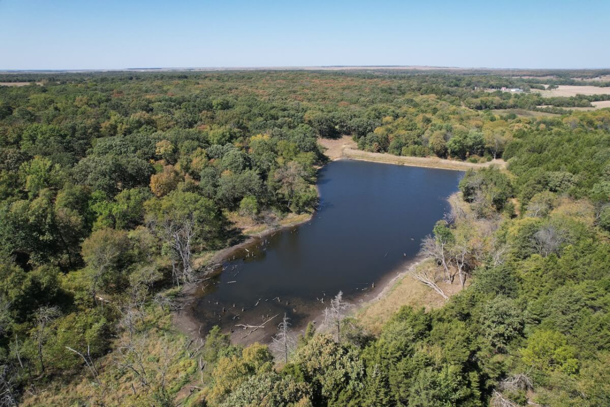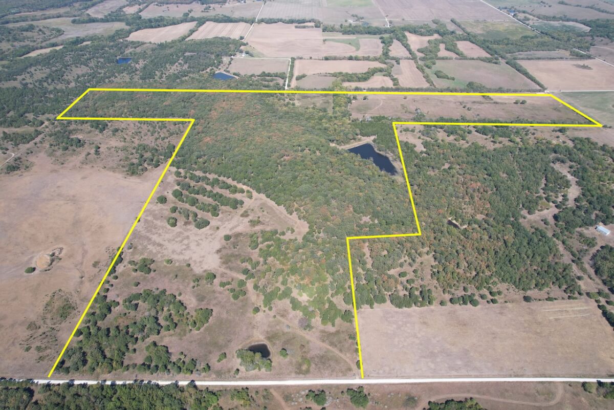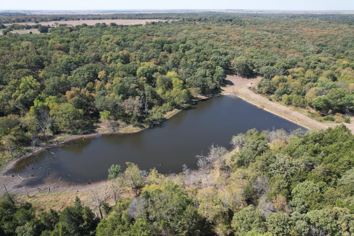 PROPERTY DESCRIPTION: 224 acres located south of New Albany and southwest of Fredonia in Wilson County, Kansas. This diverse tract of Kansas land has everything you could ask for in a recreation property. The 2 1/2 acre lake is nestled in the hills with trees all the way around it. The clear water lake has flooded timber and excellent habitat for game fish that includes a good population of Largemouth Bass and Bluegill. In addition to the lake, there are 3 other ponds on the property. Improvements include an old barn and silo. Stacked native limestone fences can be found at different places on the property, a time capsule captured from generations in the past. Access is provided by township gravel road along a portion of the north boundary, and township gravel road along the south boundary. Multiple small creeks and draws run through the property offering live water during wet times. Utilities available include electric along the south portion of the property. Great opportunity to Invest in Southwest Kansas land!