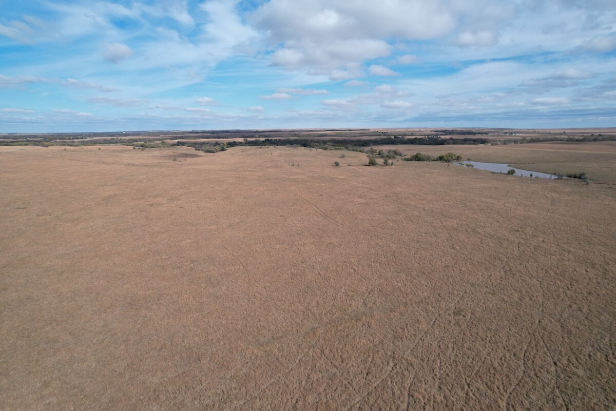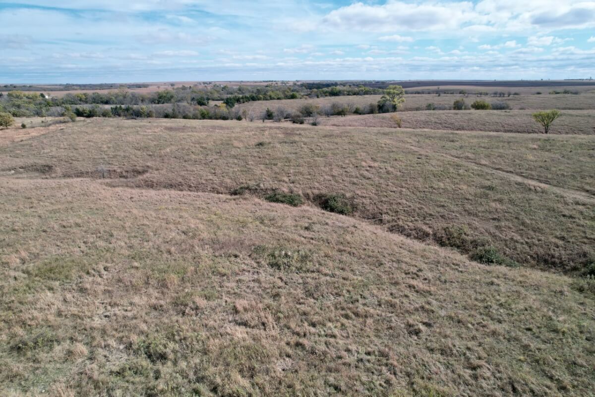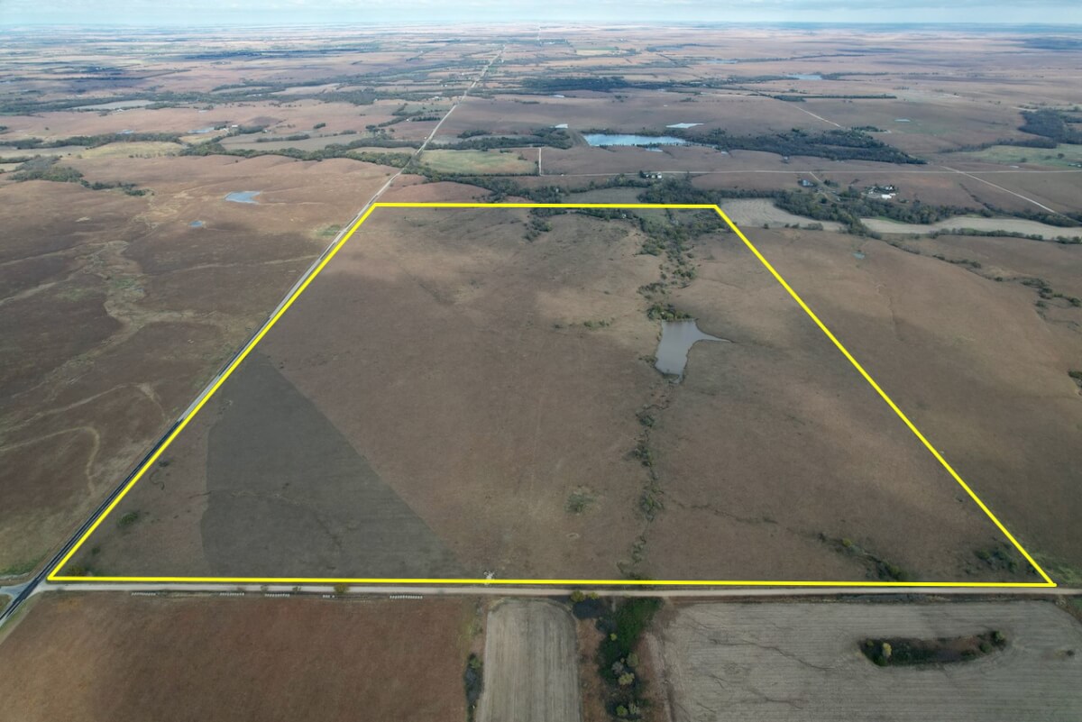 PROPERTY DESCRIPTION: Scenic Kansas Flint Hills land located in Southeast Butler County between Rosalia and Beaumont. This 225 acres has a nice 2 acre pond, high quality rolling Flint Hills bluestem pasture, blacktop frontage all along the west boundary, and some timbered draws with hunting and recreation value added. Fences are good.