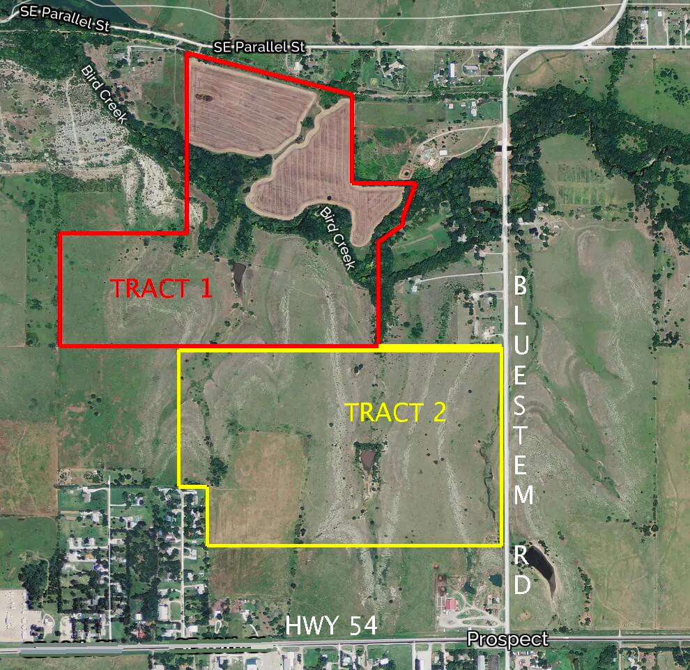 236+- Acres, 2 Tracts, Butler County Kansas Land w/ Pasture, Tillable, Bird Creek, Timber Near El Dorado