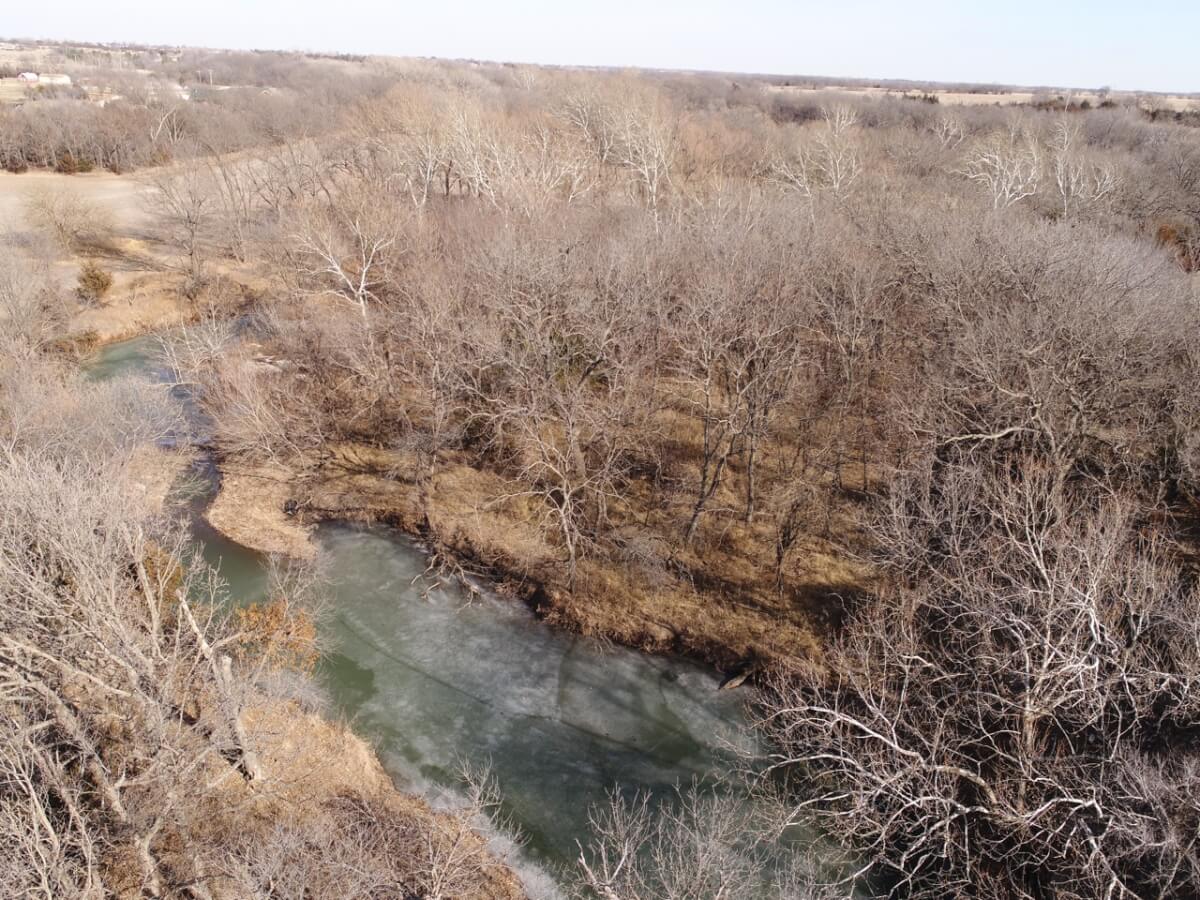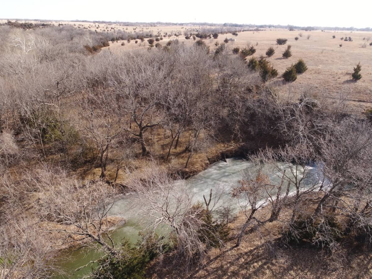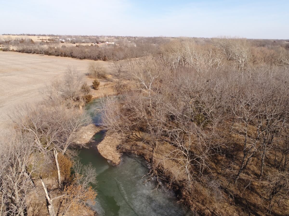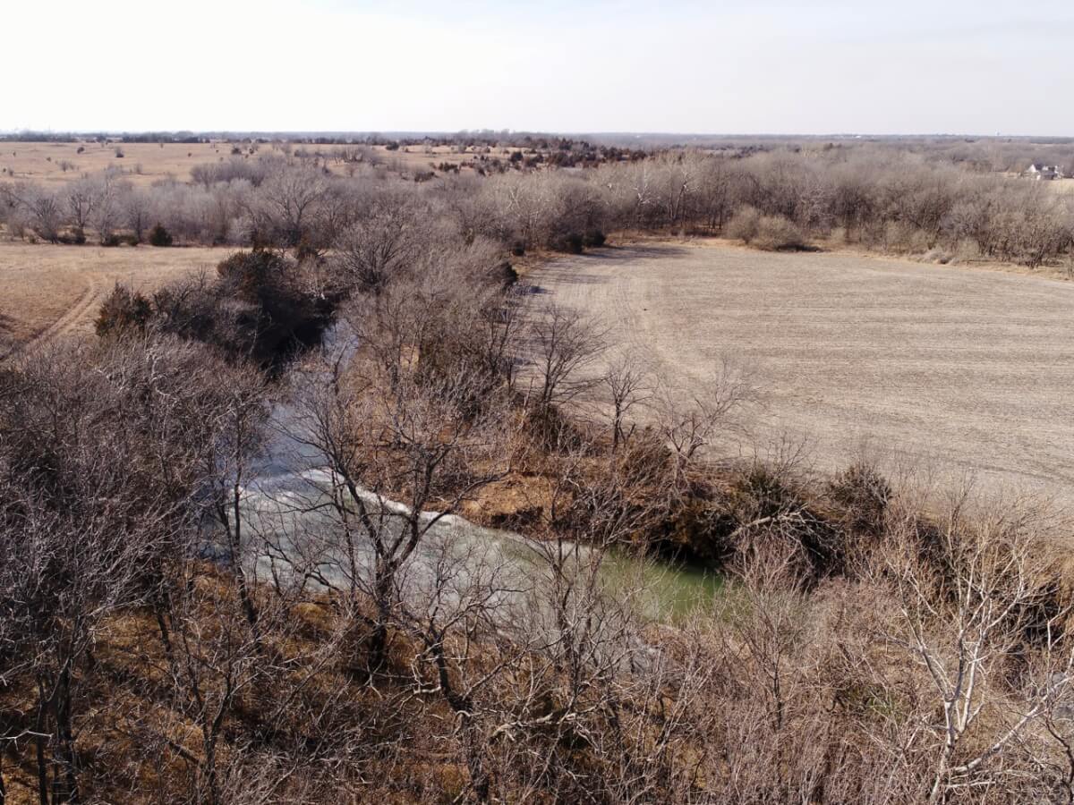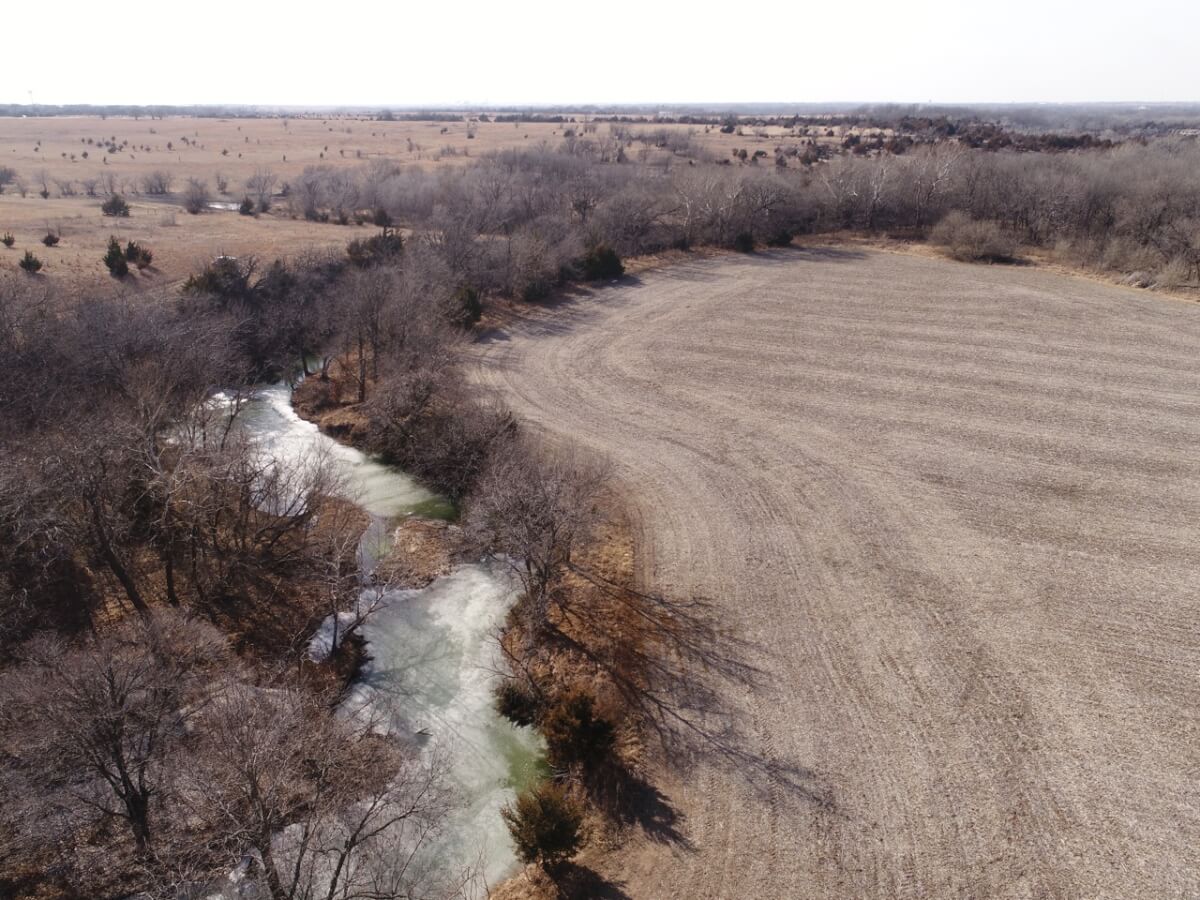 PROPERTY DESCRIPTION: 128+- acres consisting of approximately 40 acres of tillable ground along Bird Creek, timber, and native Flint Hills pasture. The tillable bottom ground soils consist of Verdigris and Vanoss soils. Tremendous recreation appeal exists with 6/10 mile of Bird Creek meandering through the property. Bird Creek has good clear water, excellent fishing, and attracts an abundance of wildlife including Kansas Whitetail Deer, Turkeys, and Quail. Fish species include Largemouth Bass, Kansas Spotted Bass, Crappie, Bluegill, and Channel Catfish. Quality timber such as Oak, Walnut, and Sycamore Trees line each side of the creek. A large and rolling elevation change rises as you move south on the south side of the creek. The rolling native Flint Hills pasture offers excellent bedding areas and grazing for livestock with a pond to provide water. This truly is a unique opportunity to purchase a tract of land with quick easy access to blacktop and close to El Dorado and El Dorado Lake.