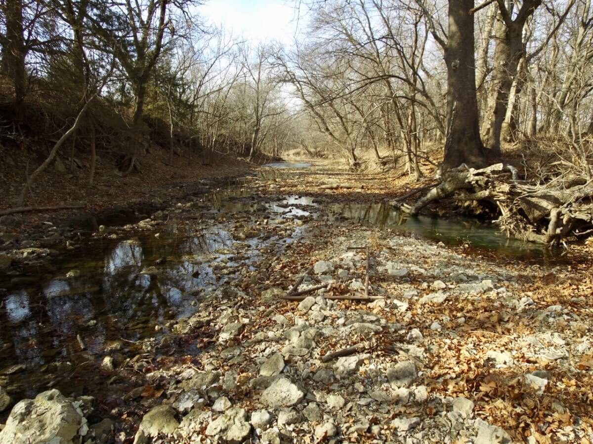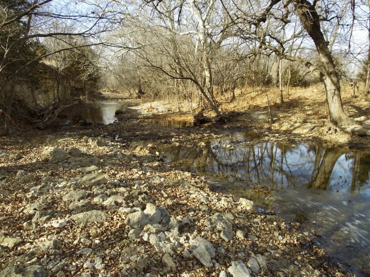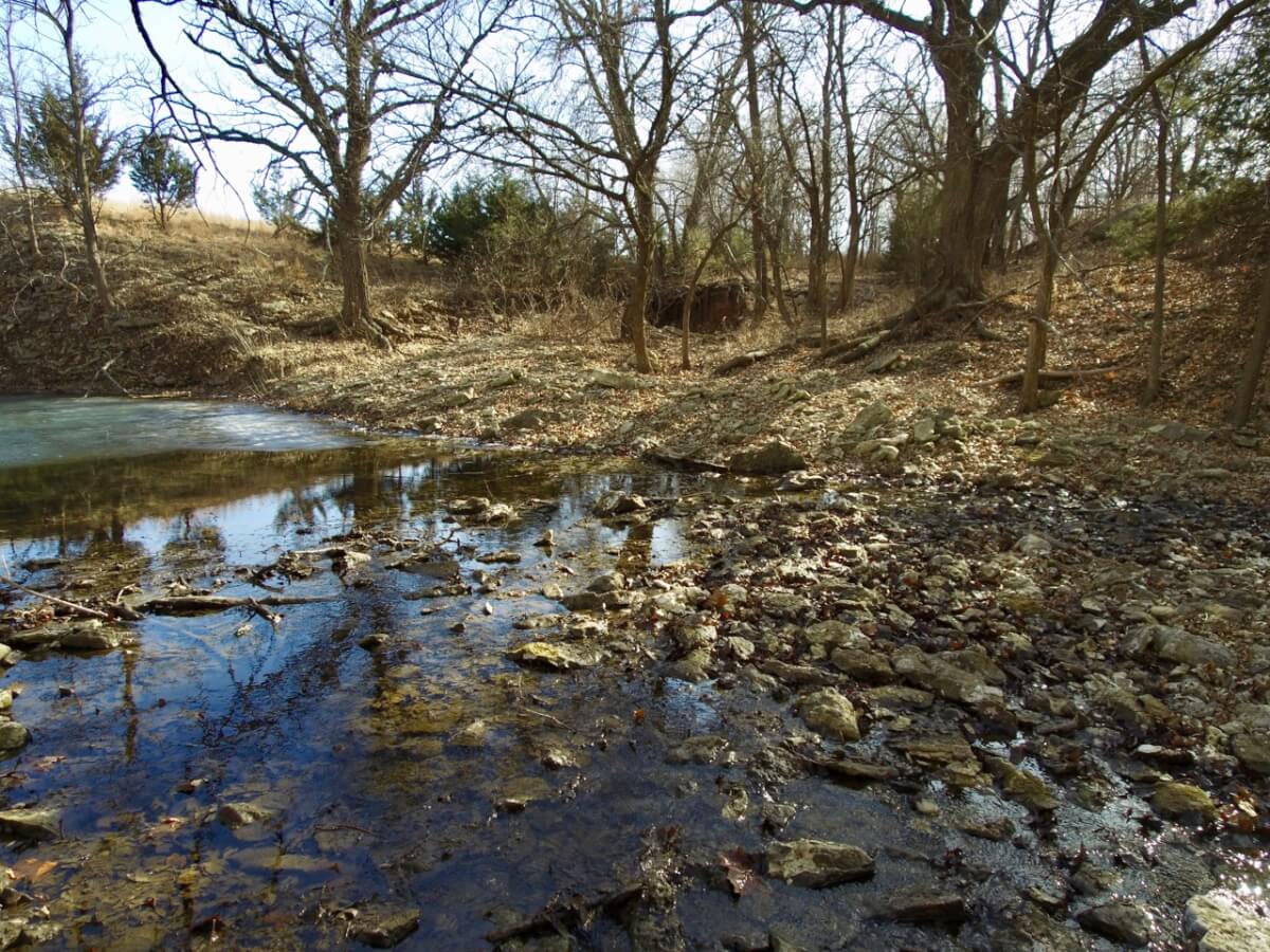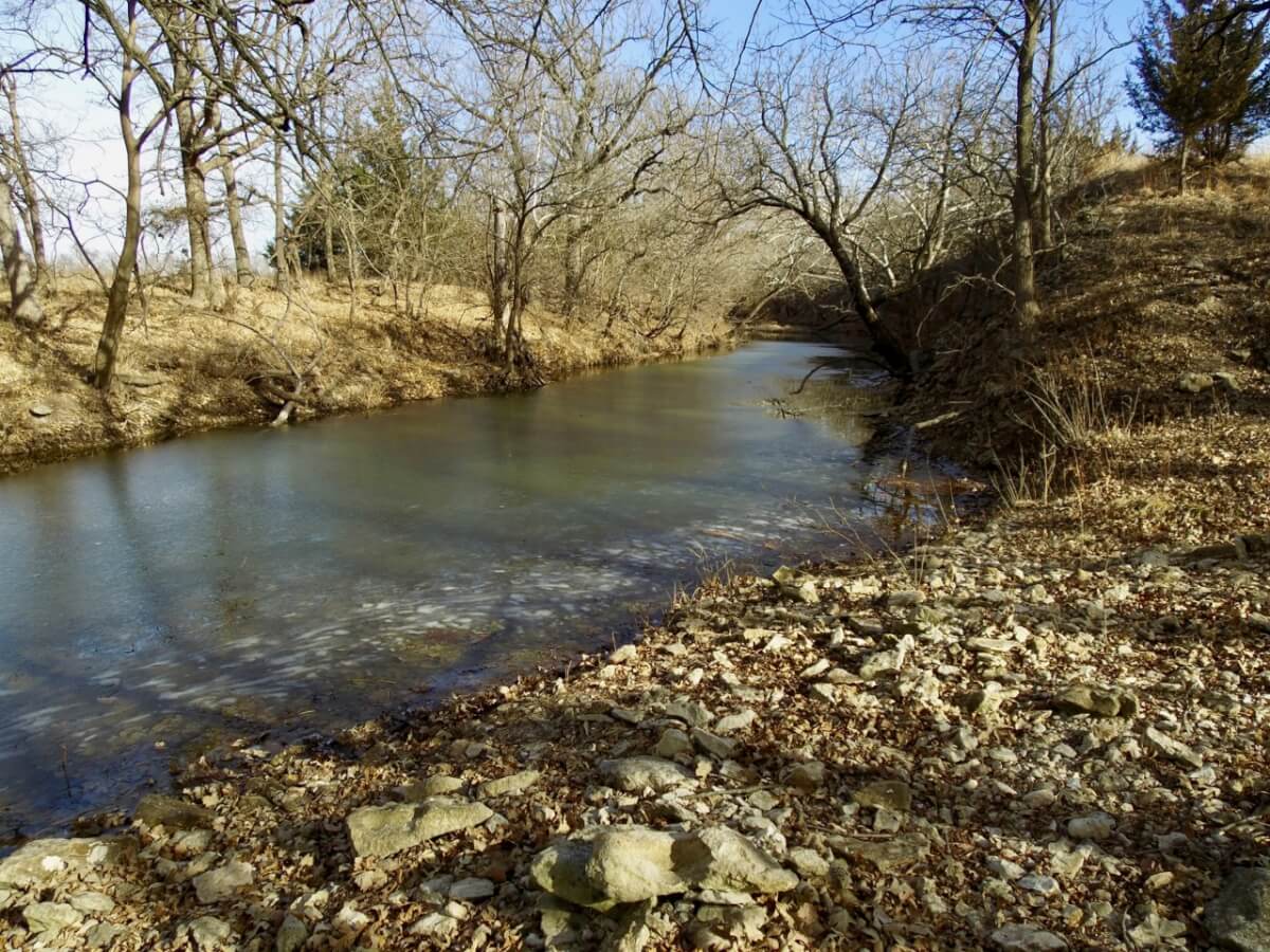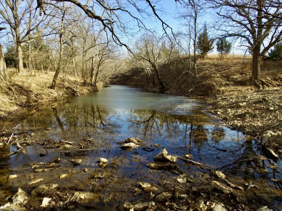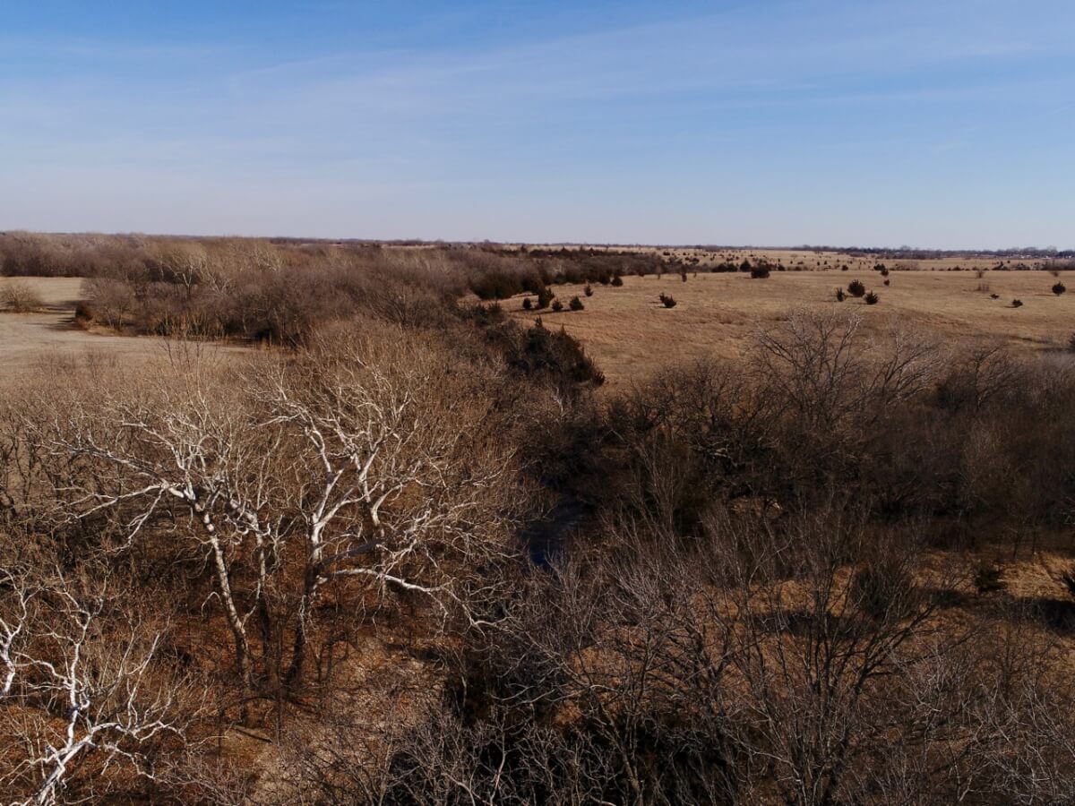 PROPERTY DESCRIPTION: 128+- acres consisting of approximately 40 acres of tillable ground along Bird Creek, timber, and native Flint Hills pasture. The tillable bottom ground soils consist of Verdigris and Vanoss soils. Tremendous recreation appeal exists with 6/10 mile of Bird Creek meandering through the property. Bird Creek has good clear water, excellent fishing, and attracts an abundance of wildlife including Kansas Whitetail Deer, Turkeys, and Quail. Fish species include Largemouth Bass, Kansas Spotted Bass, Crappie, Bluegill, and Channel Catfish. Quality timber such as Oak, Walnut, and Sycamore Trees line each side of the creek. A large and rolling elevation change rises as you move south on the south side of the creek. The rolling native Flint Hills pasture offers excellent bedding areas and grazing for livestock with a pond to provide water. This truly is a unique opportunity to purchase a tract of land with quick easy access to blacktop and close to El Dorado and El Dorado Lake.