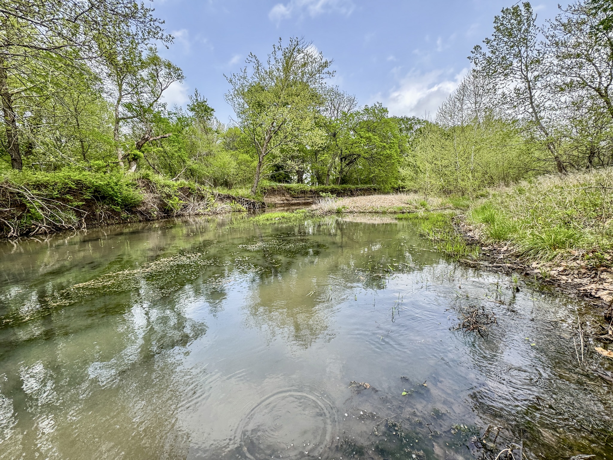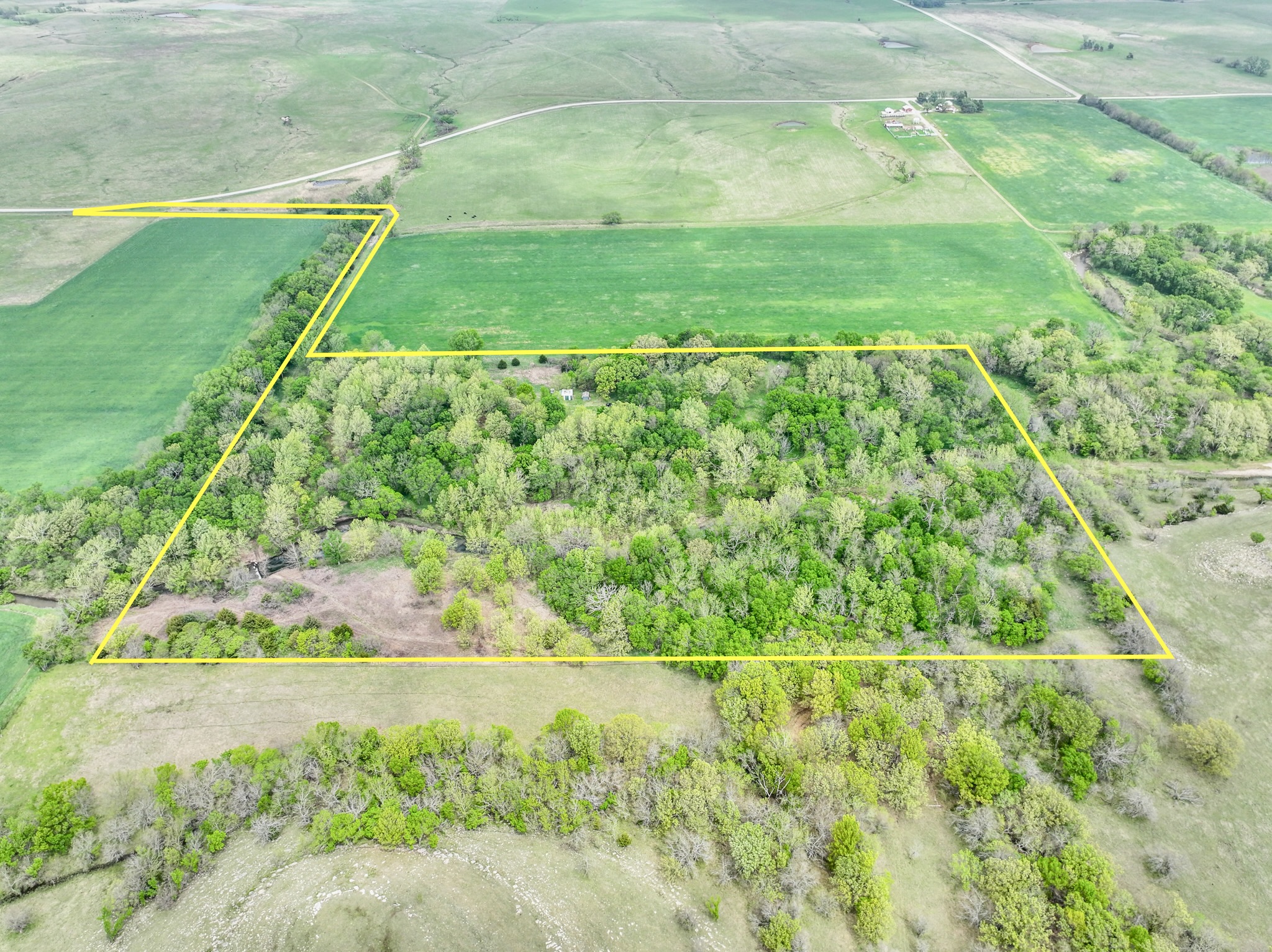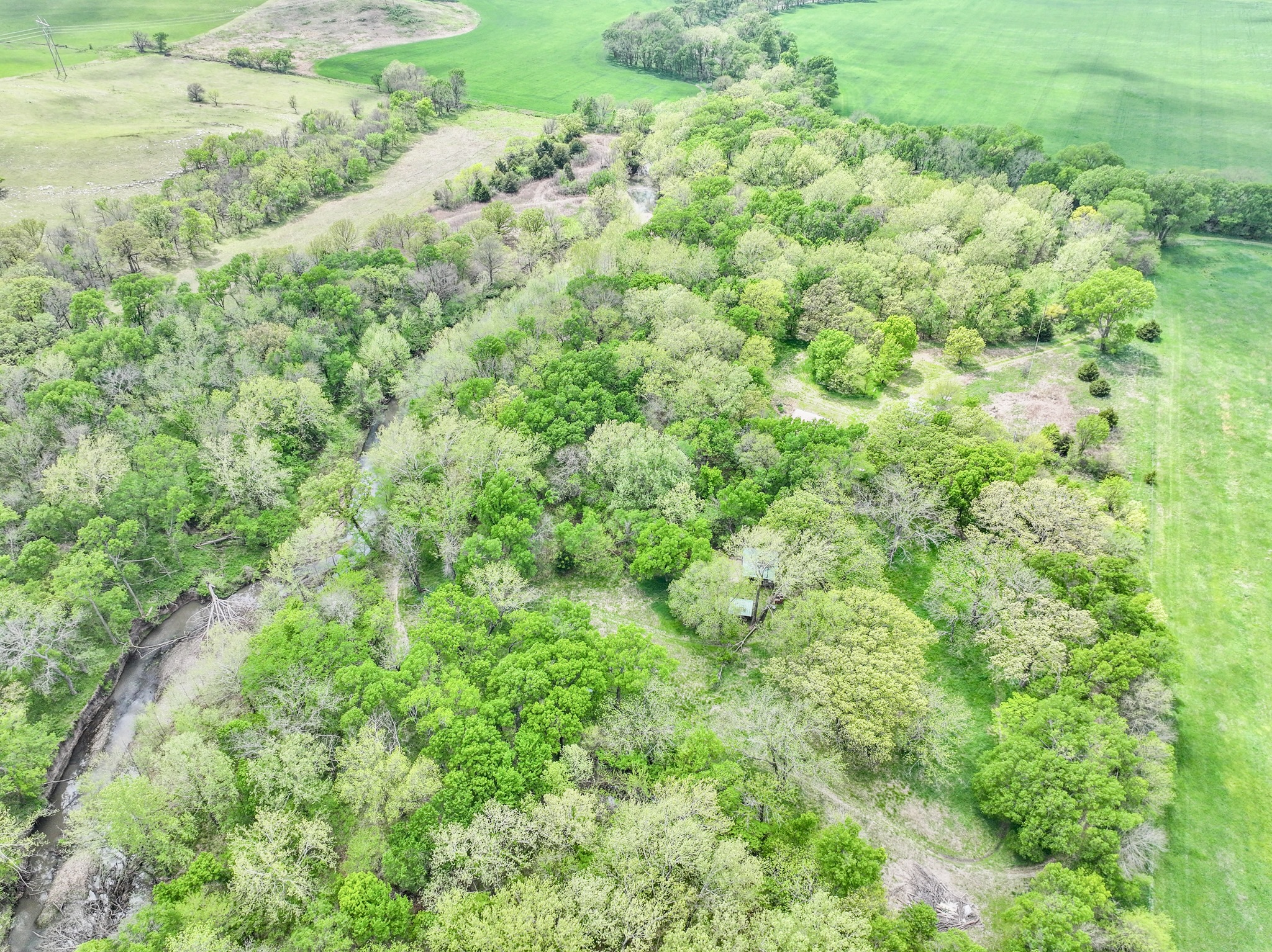 PROPERTY DESCRIPTION: Premium 27.6-Acre recreational retreat in the heart of the Flint Hills in Butler County, Kansas. An exceptionally good stretch of Rock Creek runs through the center of the property, with nearly 1/4 mile of native pasture and limestone filtered water full of life! From fish such as largemouth bass, bluegill, and channel catfish to fun water animals such as frogs, crawdads and tadpoles…this pristine water source is a feature difficult to find without buying a large ranch. Perfectly situated off blacktop just west of the Latham in Butler County, KS. A long private entrance leads to this secluded setting enveloped by mature hardwood trees that includes Black Walnuts, Burr Oaks, Sycamore, Ash, Elm, Hickory among others. This property is fully equipped for adventure and relaxation. Two sheds provide ample storage for your toys and equipment, while electricity, RV hook-ups, and two water wells (one functional) ensure modern convenience. Gather with family and friends around the custom BBQ structure, ideal for memorable campouts and picnics. The land’s unique topography acts as a natural funnel for whitetail deer, making it a hunter’s paradise with abundant deer, turkey, quail, and other wildlife. With unmatched privacy and character, this parcel offers endless opportunities for hunting, fishing, camping, or simply enjoying the peace and comfort of the Kansas Flint Hills. Butler County State Fishing Lake is nearby, offering quick and easy access to additional fishing opportunities. Latham Saloon is just 5 minutes away, making it quick and easy to grab a quick burger and beer, Italian on Friday nights, or steak dinner on Saturday! You hear it a lot, but this truly is a unique and possibly once in a lifetime opportunity to Invest In Land!