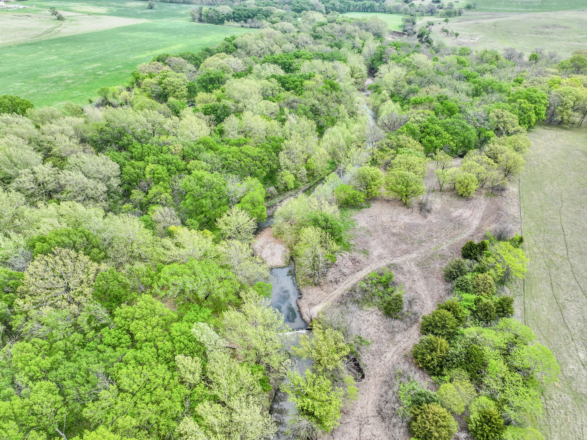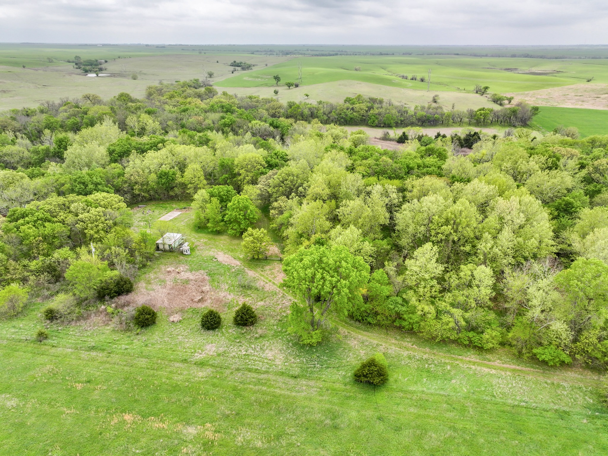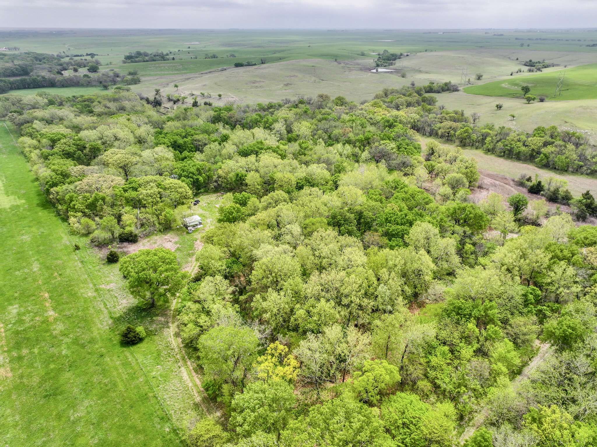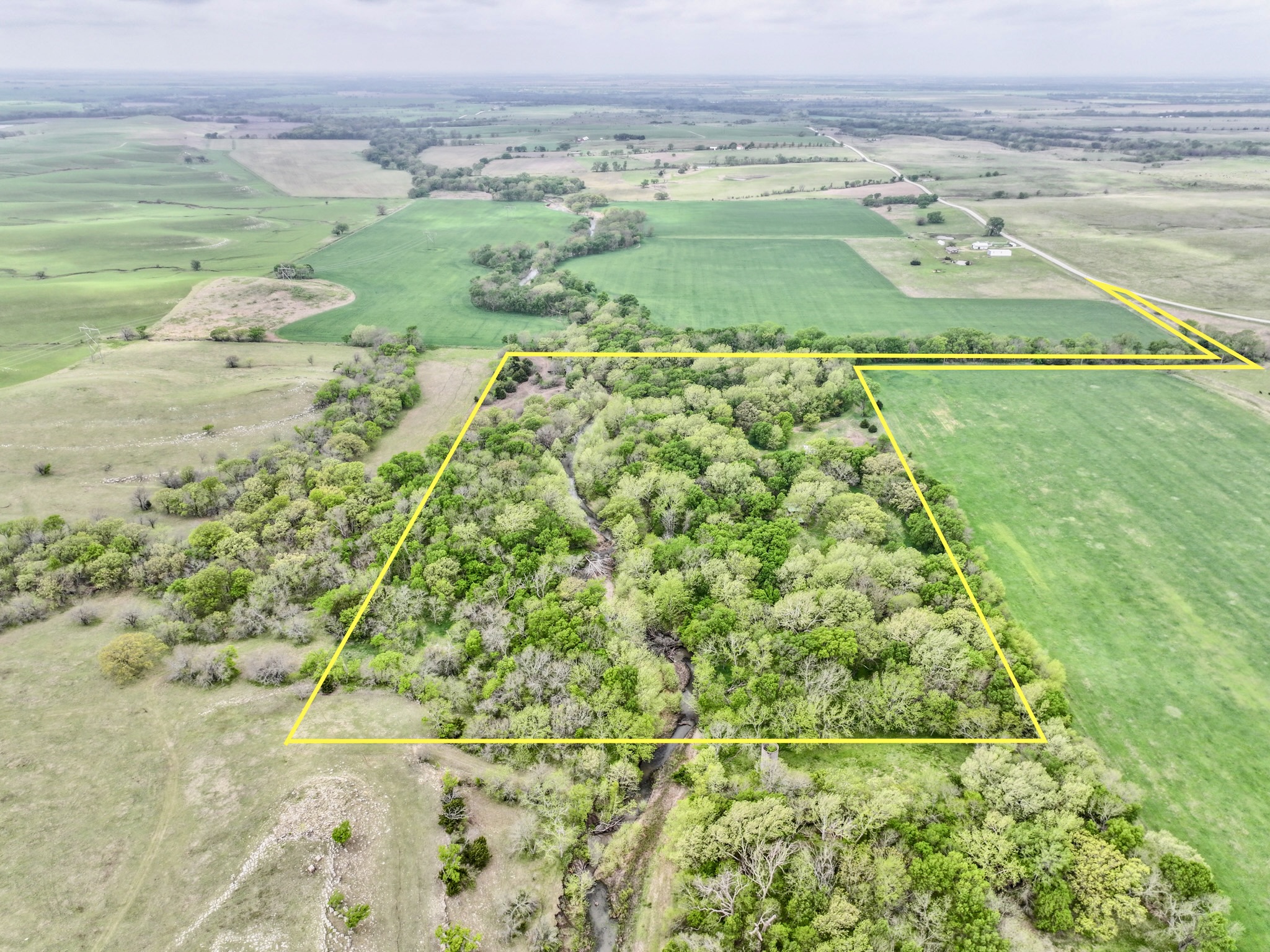 PROPERTY DESCRIPTION: Premium 27.6-Acre recreational retreat in the heart of the Flint Hills in Butler County, Kansas. An exceptionally good stretch of Rock Creek runs through the center of the property, with nearly 1/4 mile of native pasture and limestone filtered water full of life! From fish such as largemouth bass, bluegill, and channel catfish to fun water animals such as frogs, crawdads and tadpoles…this pristine water source is a feature difficult to find without buying a large ranch. Perfectly situated off blacktop just west of the Latham in Butler County, KS. A long private entrance leads to this secluded setting enveloped by mature hardwood trees that includes Black Walnuts, Burr Oaks, Sycamore, Ash, Elm, Hickory among others. This property is fully equipped for adventure and relaxation. Two sheds provide ample storage for your toys and equipment, while electricity, RV hook-ups, and two water wells (one functional) ensure modern convenience. Gather with family and friends around the custom BBQ structure, ideal for memorable campouts and picnics. The land’s unique topography acts as a natural funnel for whitetail deer, making it a hunter’s paradise with abundant deer, turkey, quail, and other wildlife. With unmatched privacy and character, this parcel offers endless opportunities for hunting, fishing, camping, or simply enjoying the peace and comfort of the Kansas Flint Hills. Butler County State Fishing Lake is nearby, offering quick and easy access to additional fishing opportunities. Latham Saloon is just 5 minutes away, making it quick and easy to grab a quick burger and beer, Italian on Friday nights, or steak dinner on Saturday! You hear it a lot, but this truly is a unique and possibly once in a lifetime opportunity to Invest In Land!