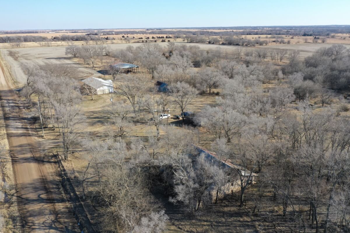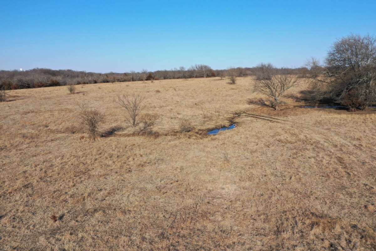 TRACT 2 PROPERTY DESCRIPTION: 114.6 acres with a house, barns, pasture, timber, and tillable! The house is a 4 bedroom 2 1/2 bath with 2013 square feet on the main floor, a full unfinished basement, built in 1971. There are several misc. buildings including an open sided pole barn and an old livestock/hay barn. Land features include 28 acres of upland tillable, a pond, and the balance in native Flint Hills pasture and timber. Great opportunity to fix up and utilize the current improvements or build new! The house and hydrants are on rural water. Great property for livestock and hunting/recreation!