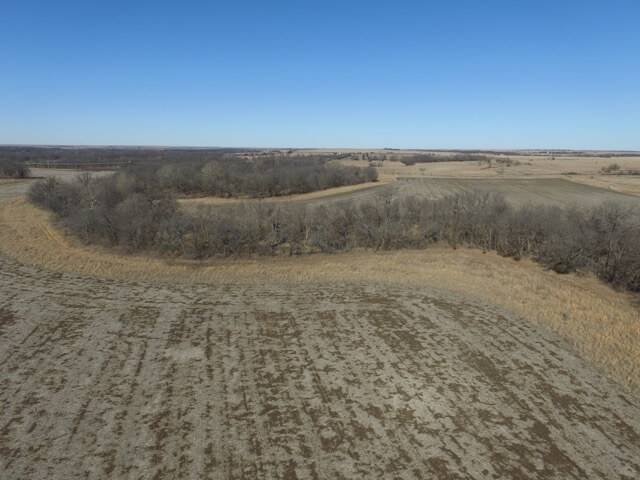 PROPERTY DESCRIPTION: 185+- acres of beautiful Kansas Flint Hills farm ground and pasture in Greenwood County. Rare opportunity to purchase a tract of land with 77 acres of highly productive tillable bottom ground. Over 1/2 mile of Homer Creek meanders through this scenic tract of land, offering excellent fishing below several limestone rock gravel bars. Heavy mature timber lines Homer Creek, providing cover for Kansas Whitetail Deer, Turkeys, and Quail. The high quality tillable bottom ground is often covered with feeding ducks and geese in the winter. Large hills jetting up from the edge of the tillable bottom ground fields into native Flint Hills pasture offer scenic views and abundant character. Quality hardwood timber present on the property includes Oak, Walnut, and Sycamore. There is a small amount of CRP that expires in September of 2016.