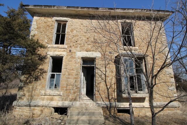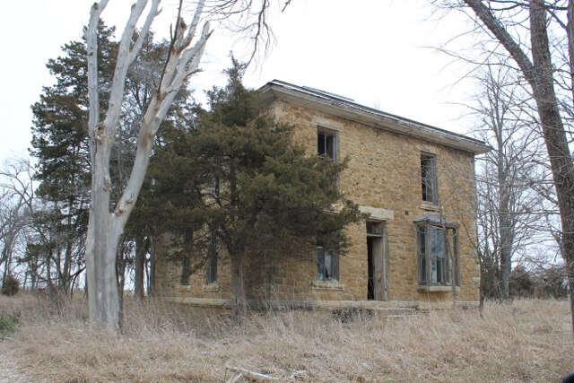 PROPERTY DESCRIPTION: 99.8+- acres of pasture, tillable, and a unique 2 story native stone house. Approximately 60 acres of this tract are currently tillable, with the balance being pasture, timber, and a pond. The native stone home has wonderful stone work, and abundant character, but is in need of complete restoration. Included with this tract is a rural water meter, and there is electricity available.